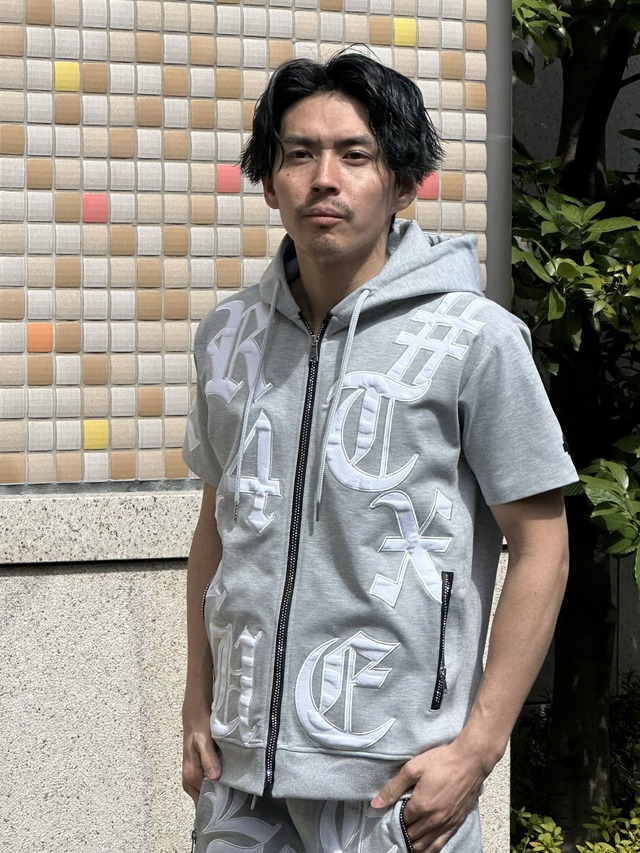 【LUXE/R】46306(ユニセックス商品)フクレジャガード生地サイドラインストーンZIPパーカ