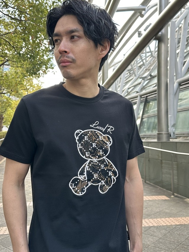 • [LUXE/R】46267 ベアー柄コード刺繡 Tシャツ