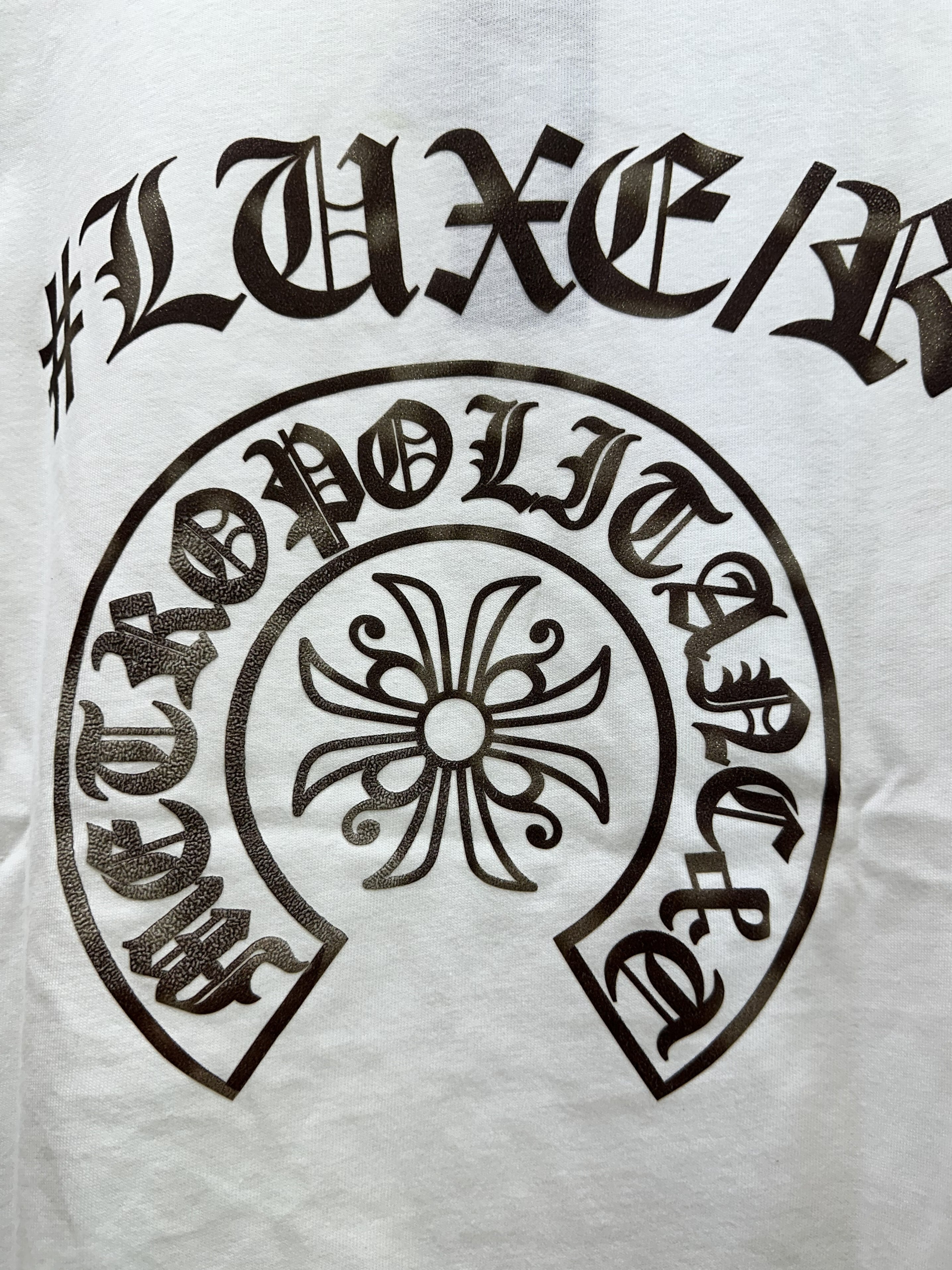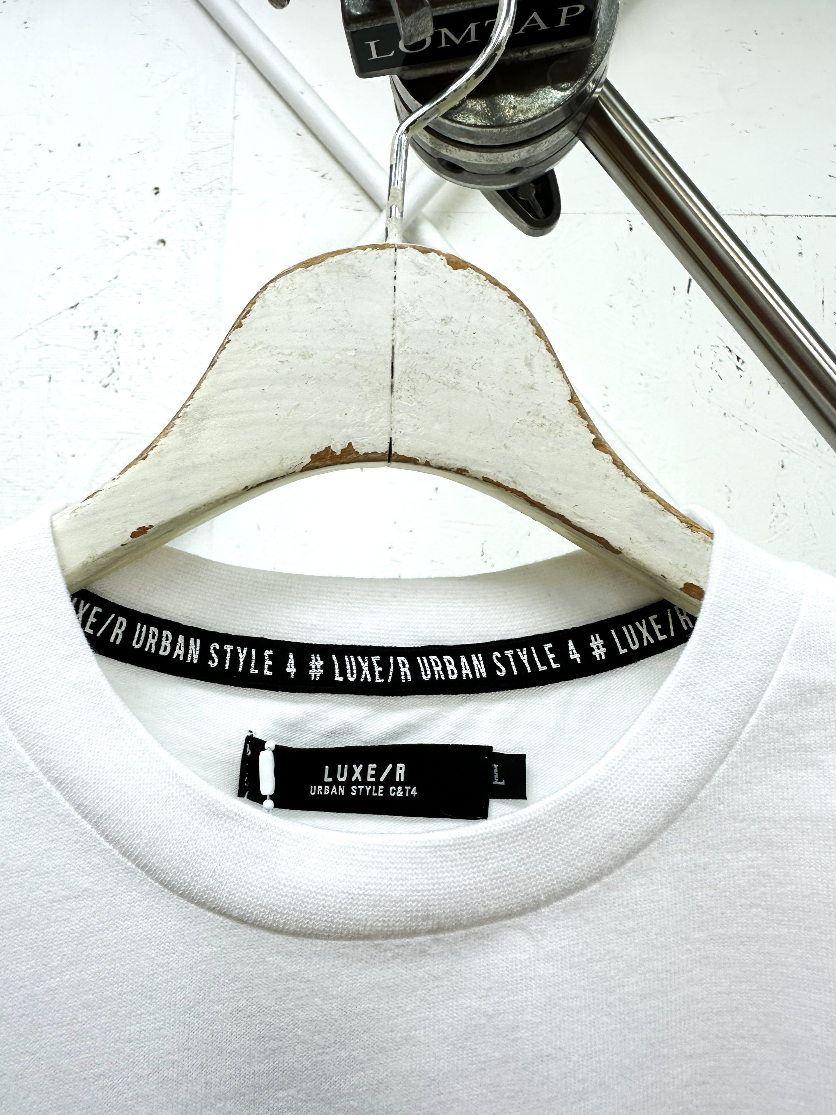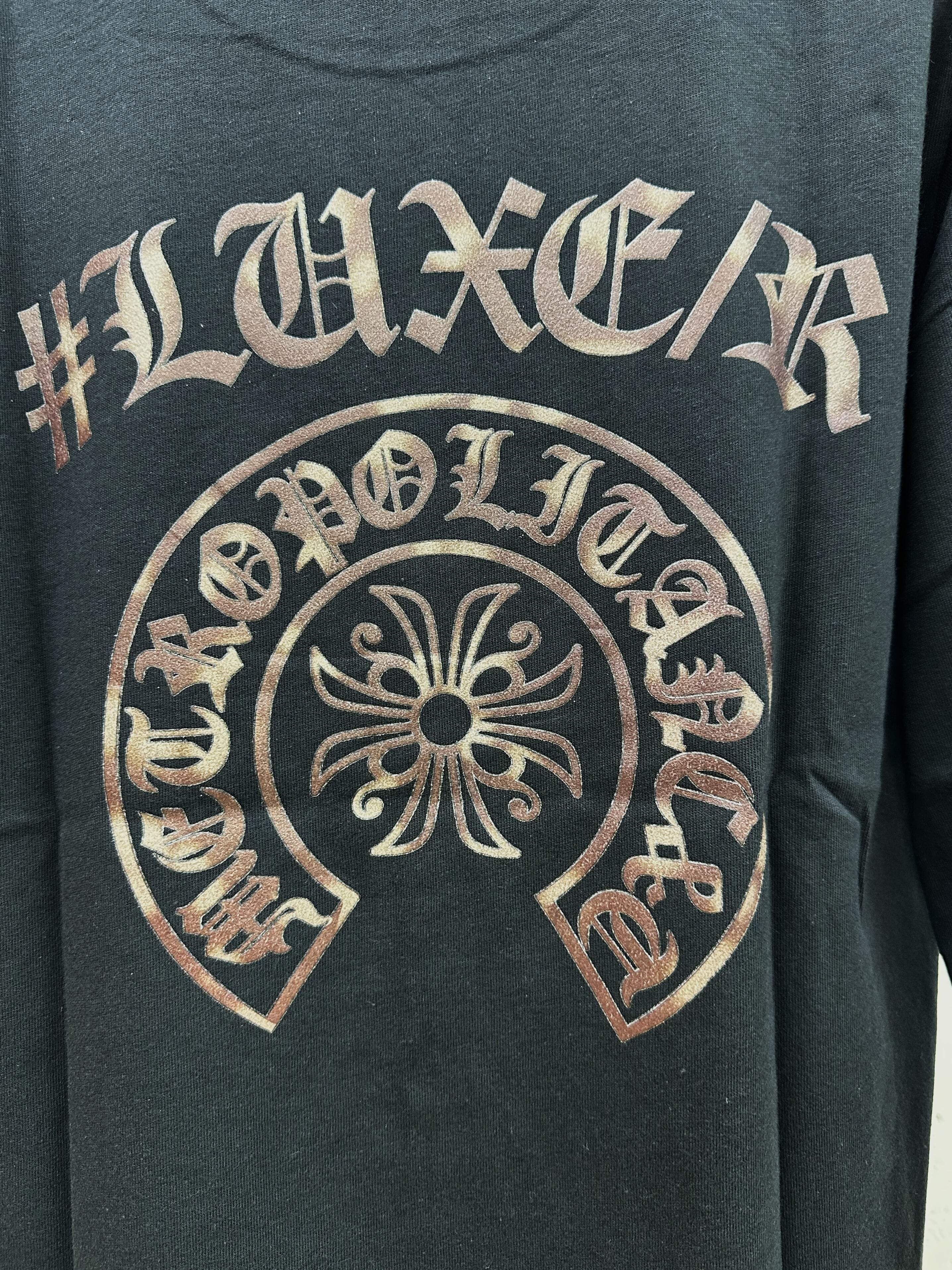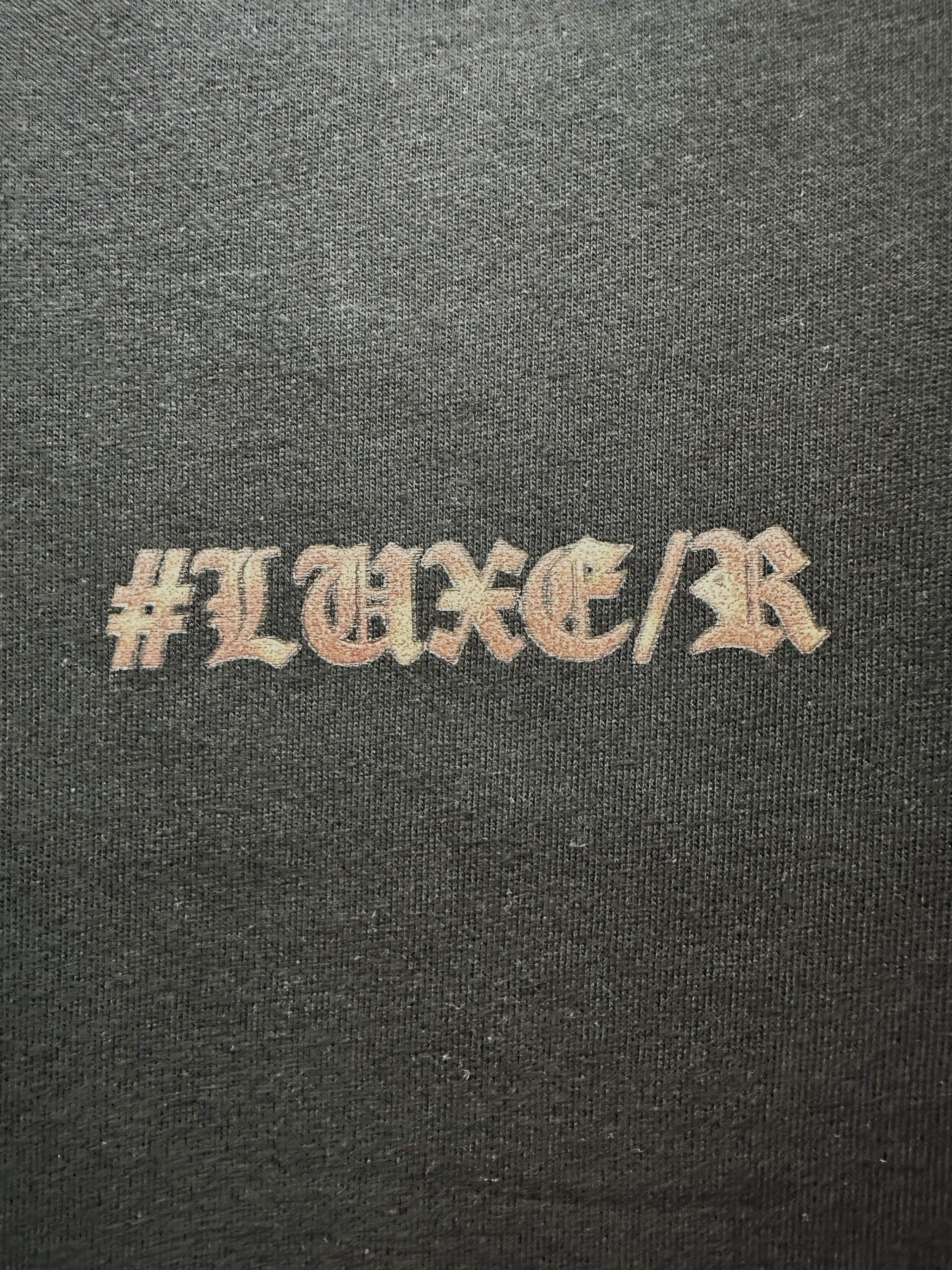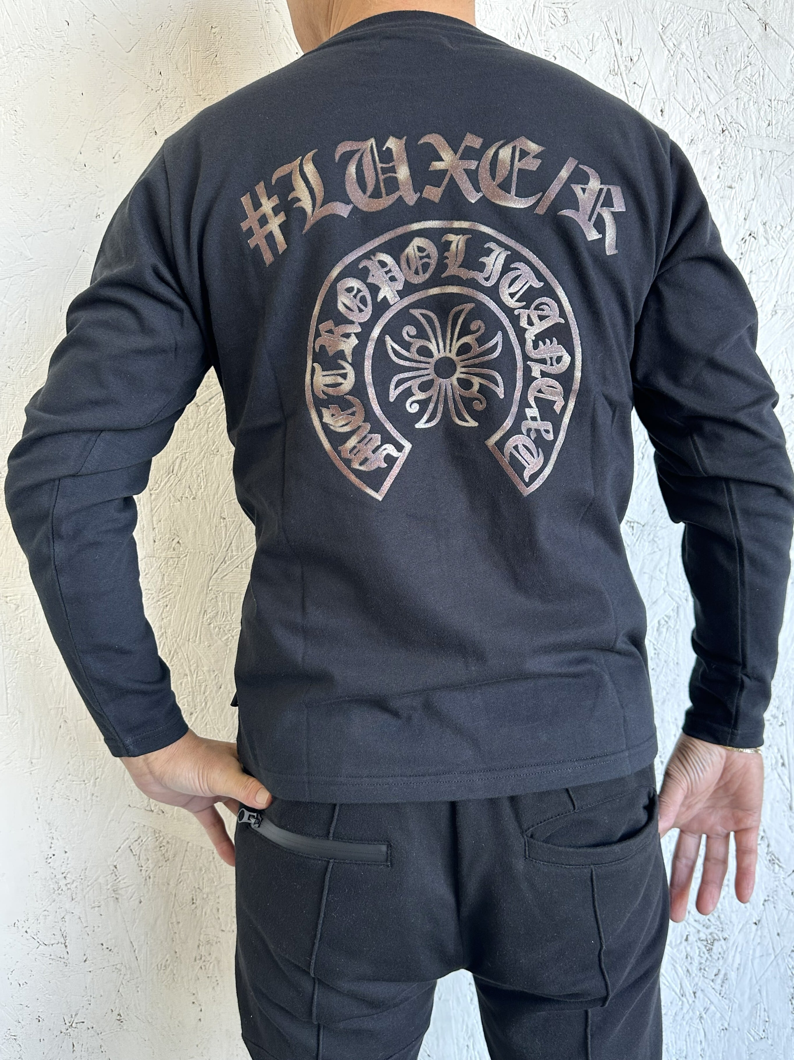 【洗練されたデザイン】【快適な着心地】が特徴の【LUXE/R】(46159) フォースシュー ブロンズ発泡プリント 天竺Tシャツ。ブロンズ発泡プリントのオールドイングリッシュロゴが際立ち、鉄カラーがスタイリッシュな印象を与えます。日常使い(デイリーユース)に最適な一枚でありながら、コーディネートのアクセントにぴったりのアイテムです。