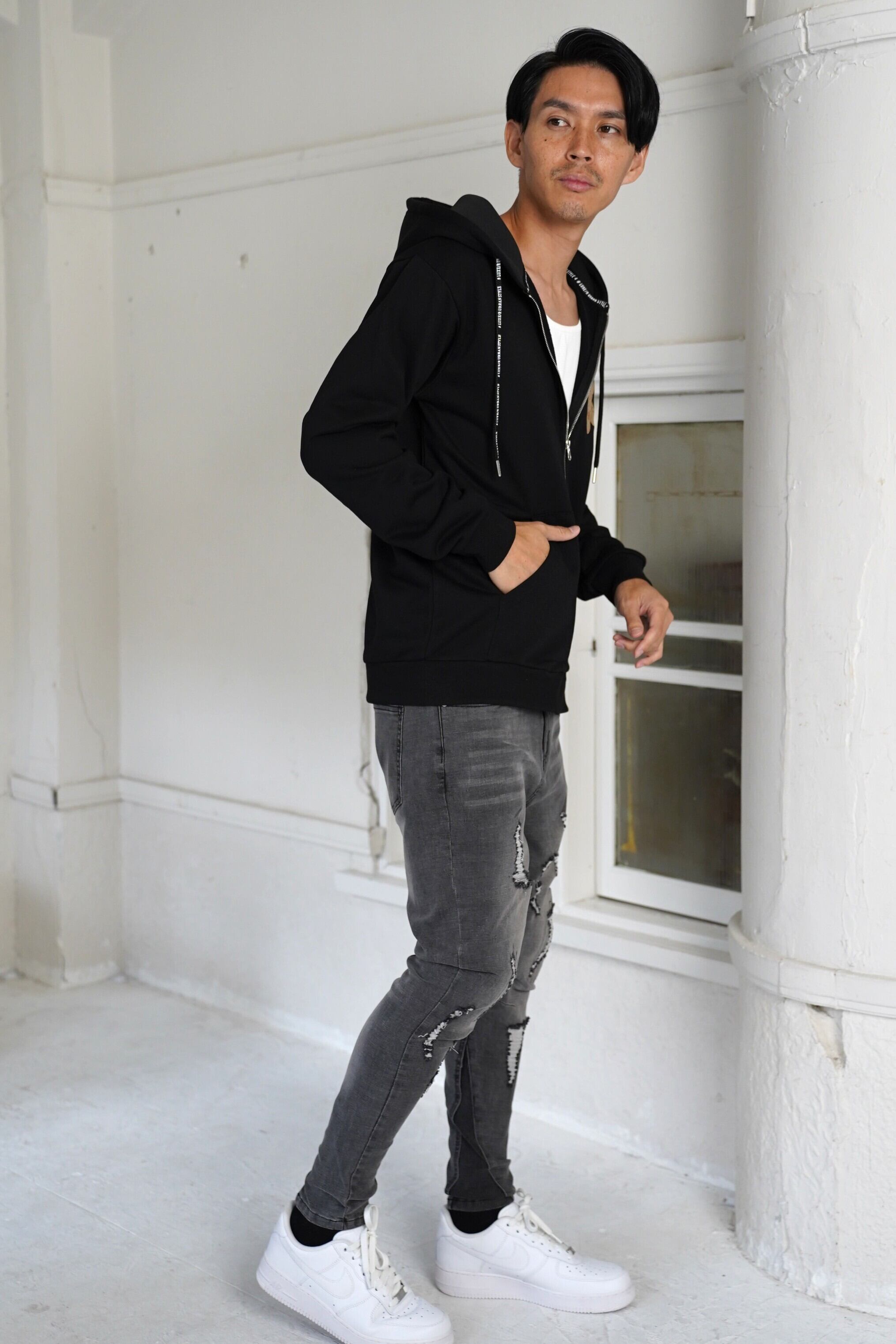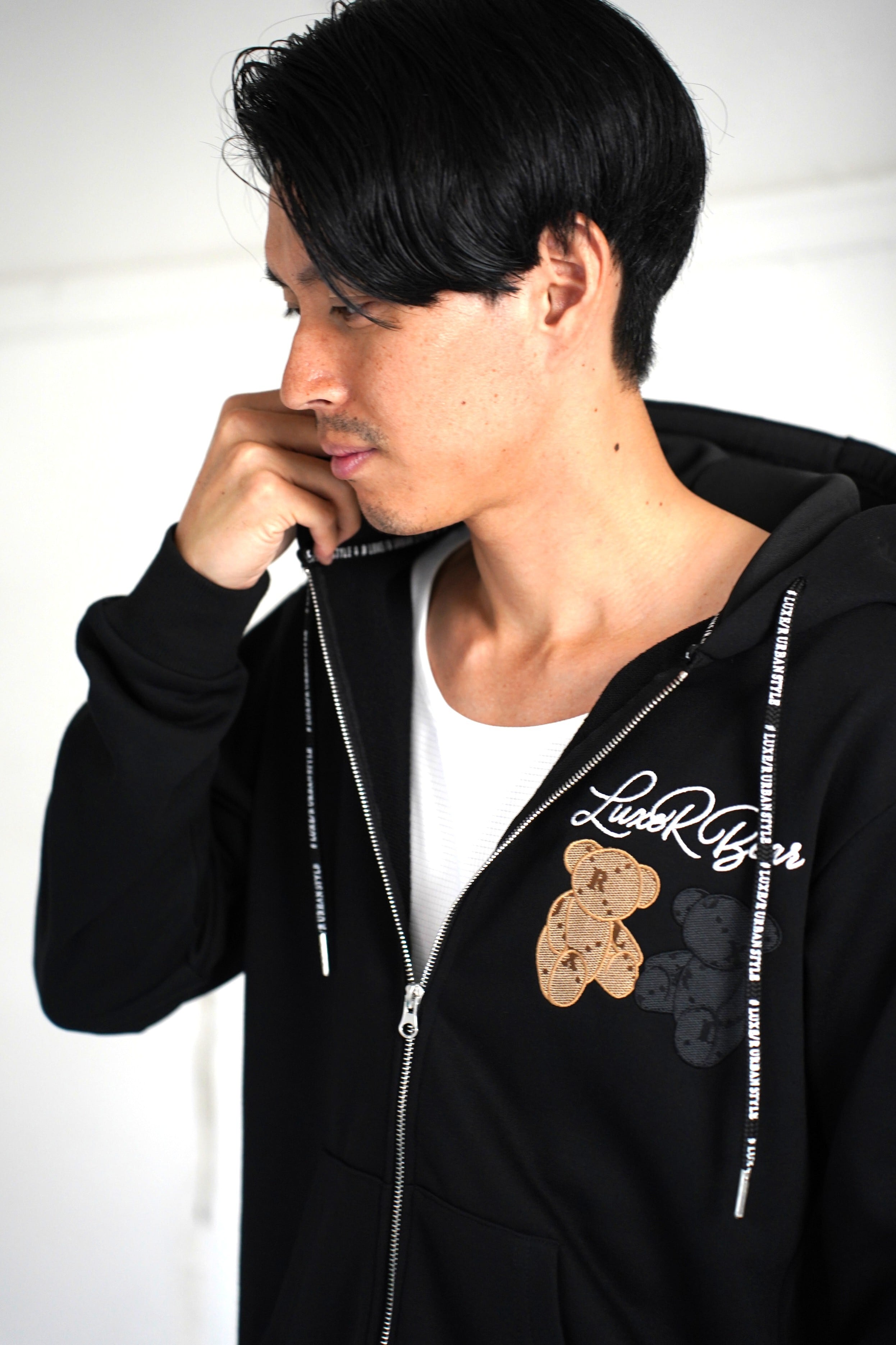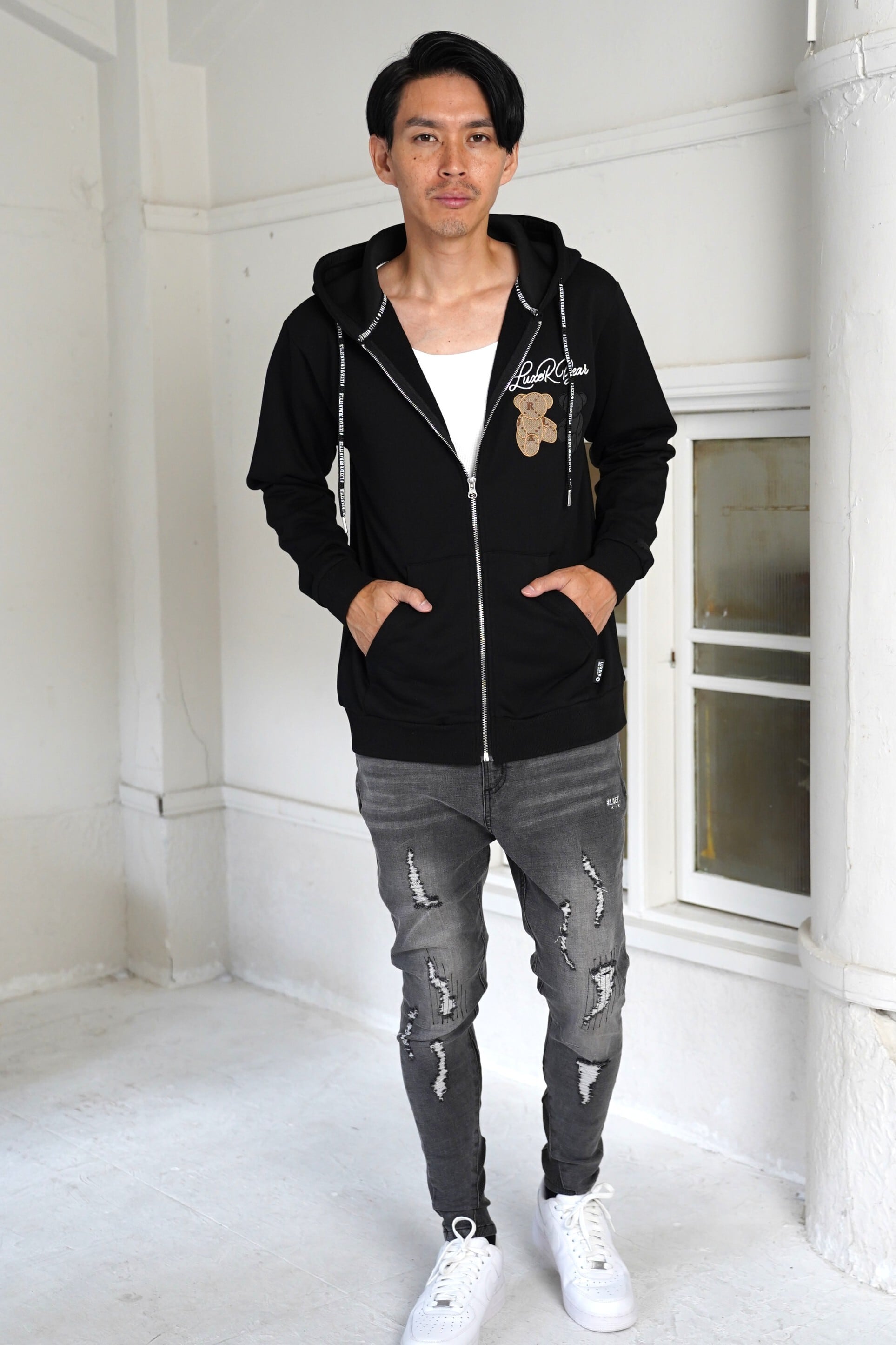 スウェット生地&モノグラム貼り付けZIPパーカー