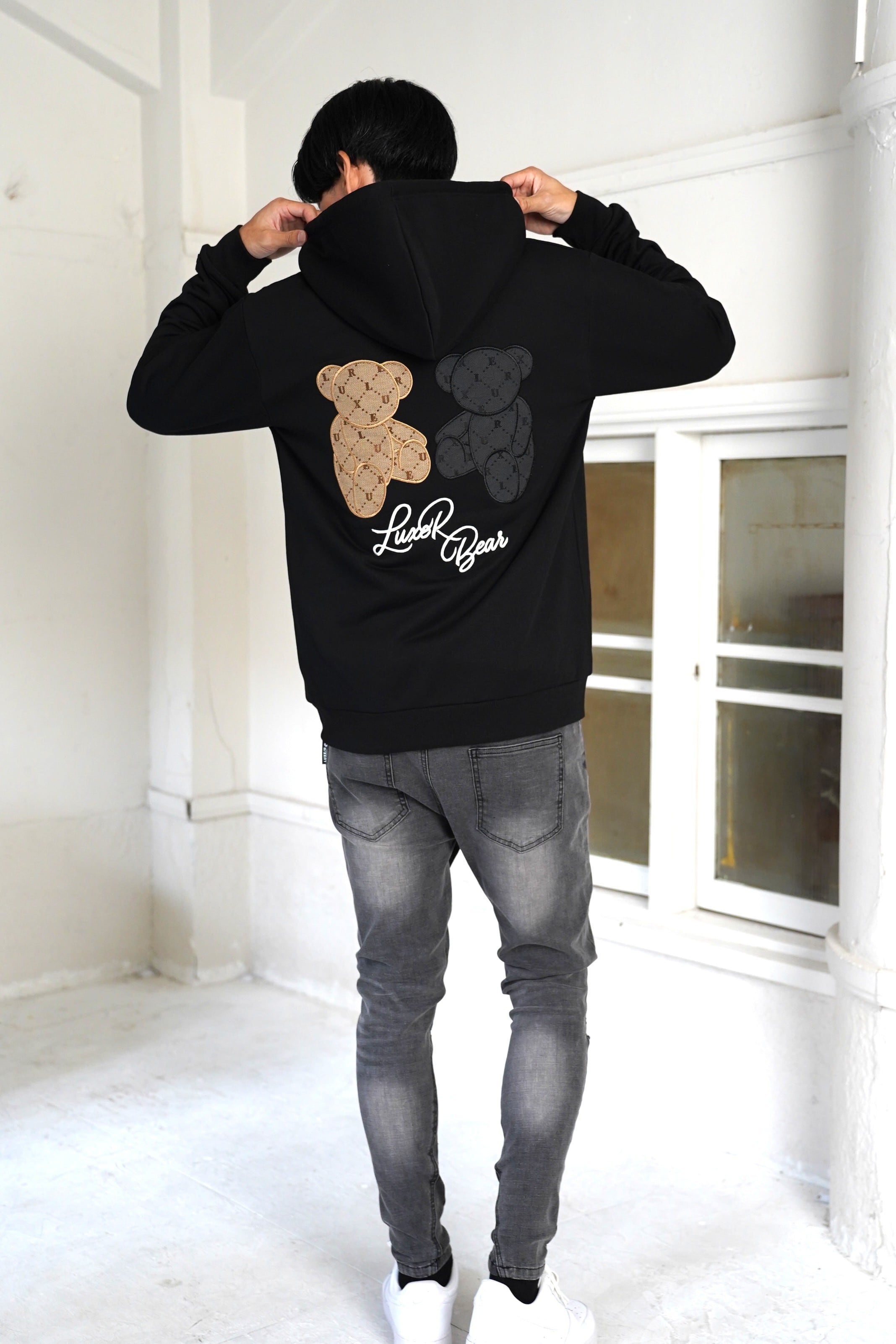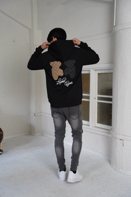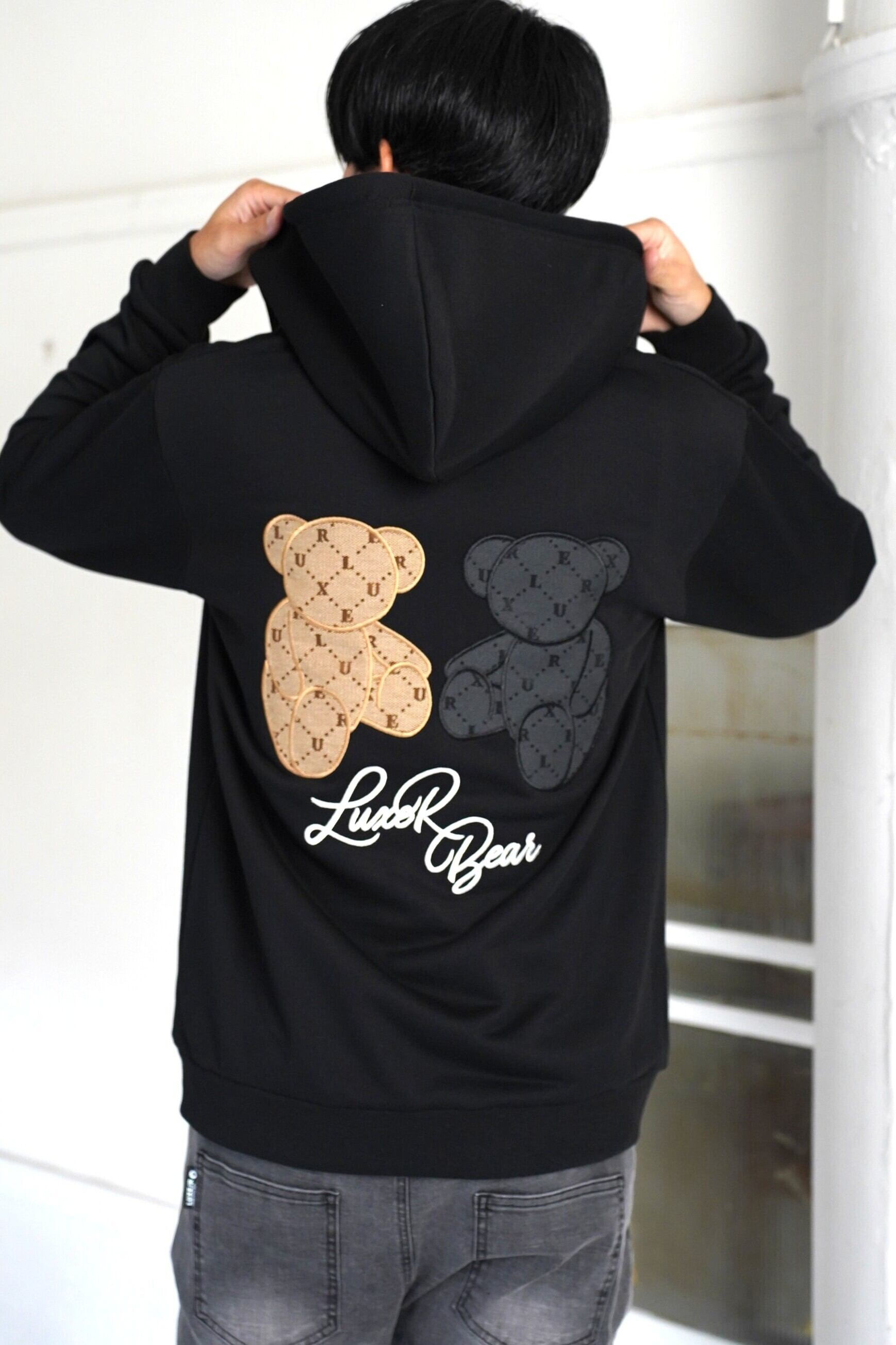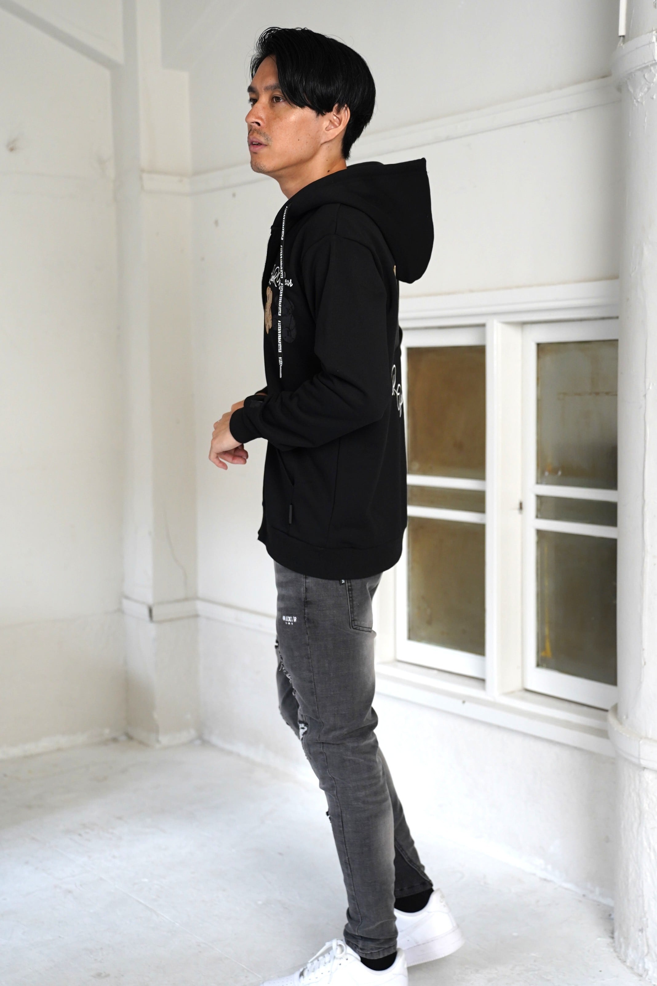 スウェット生地&モノグラム貼り付けZIPパーカー