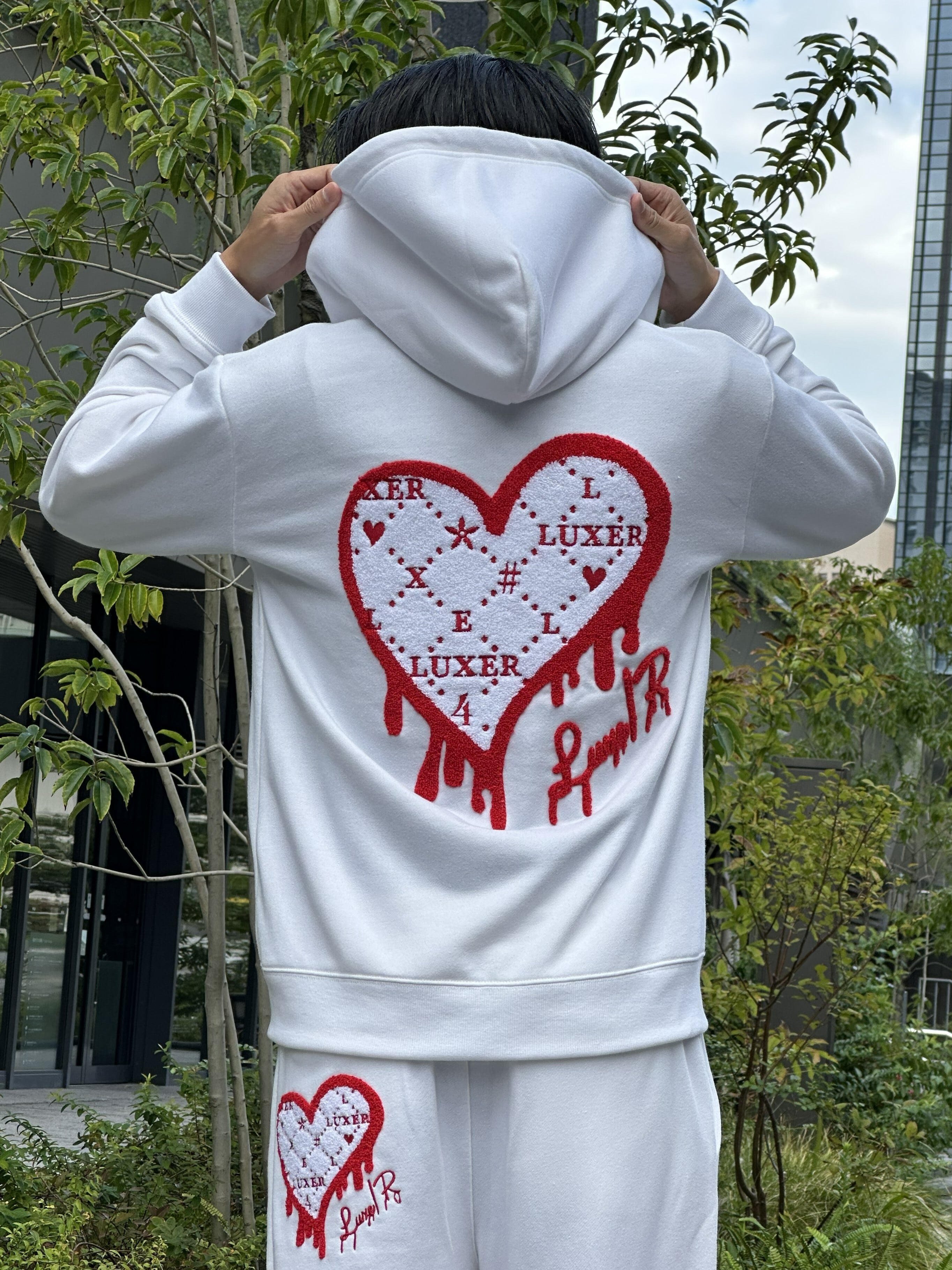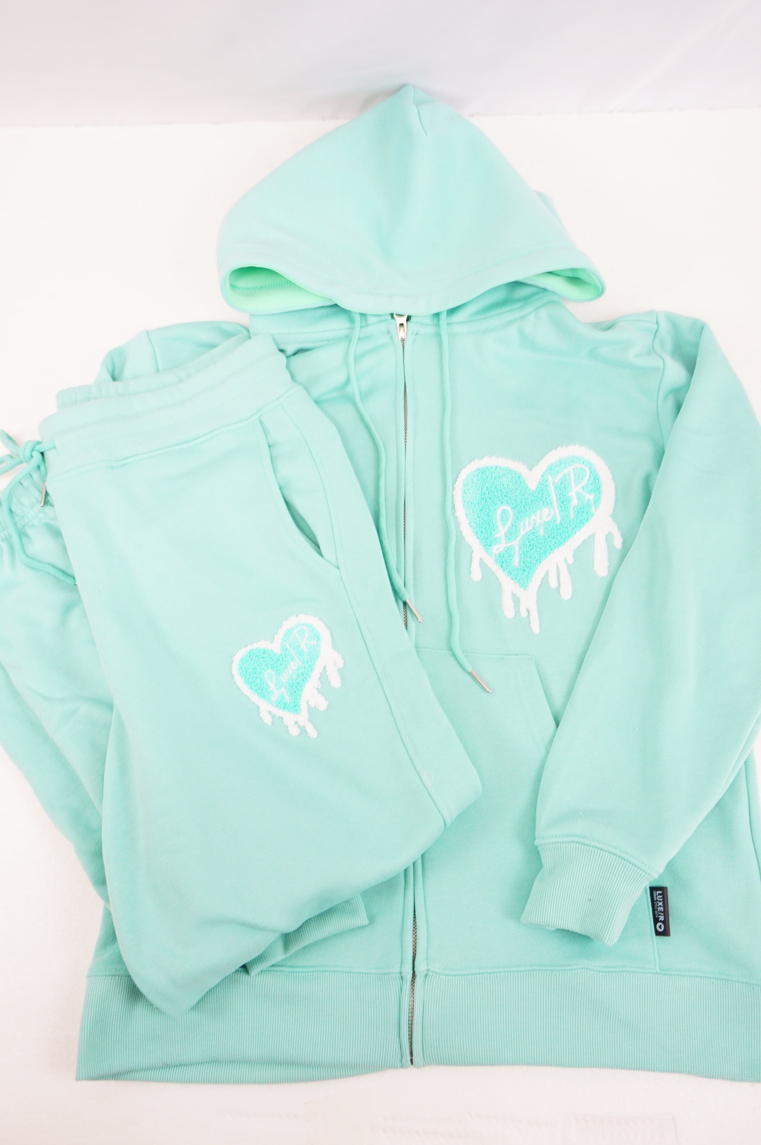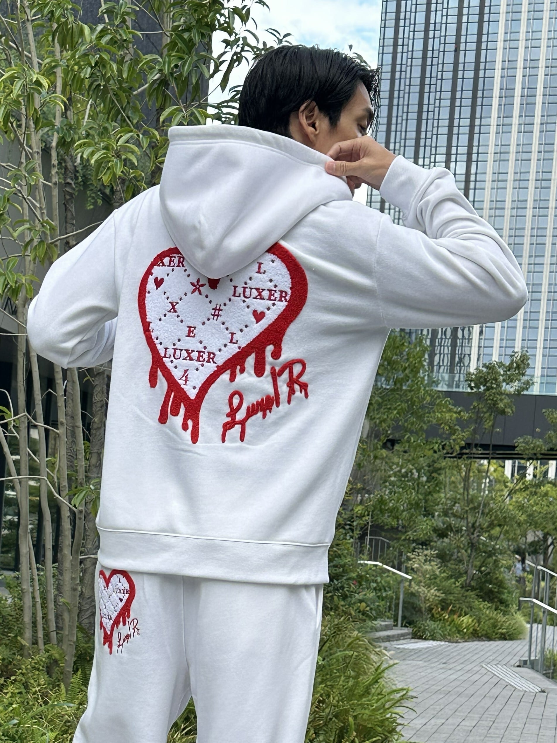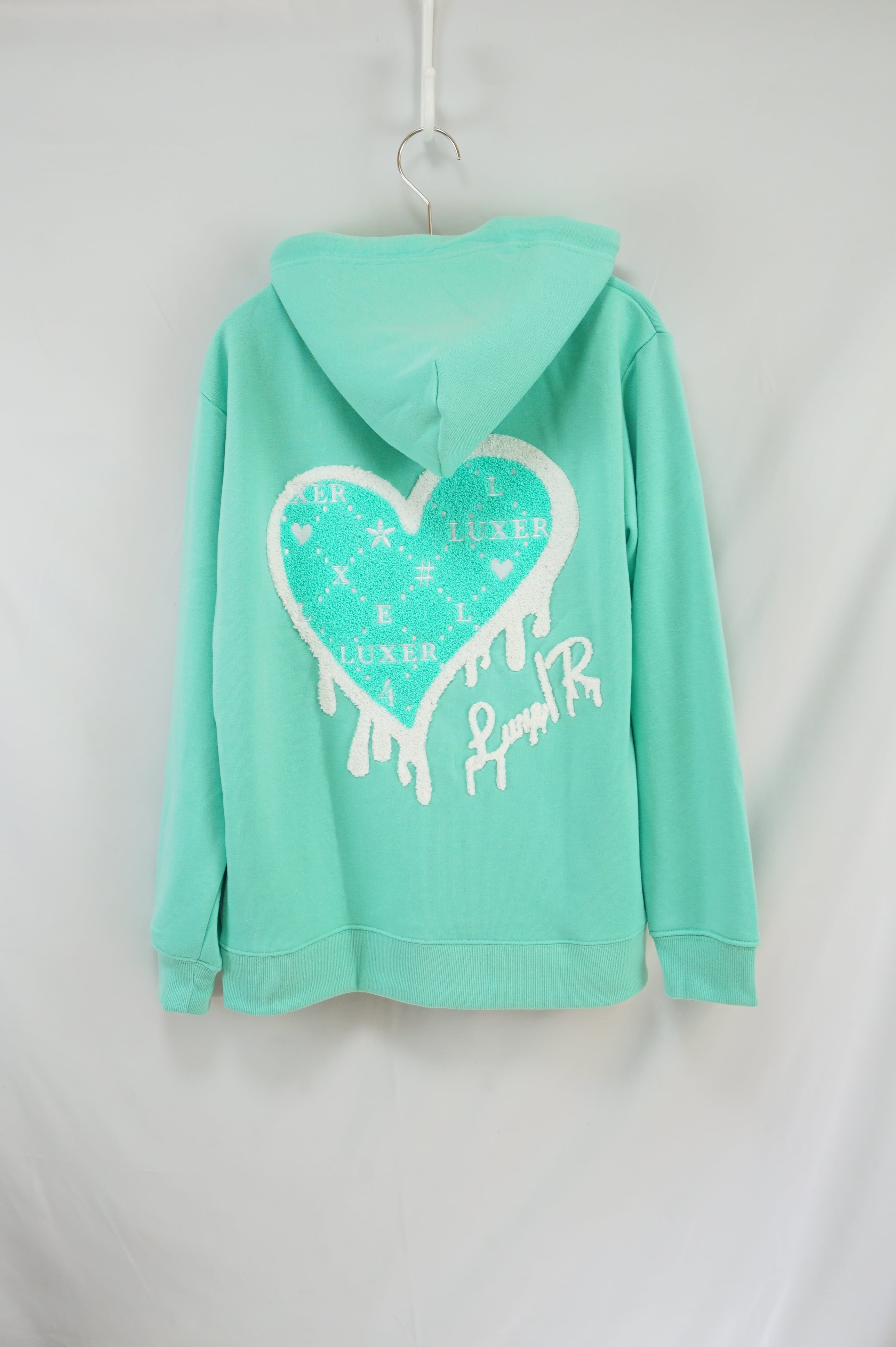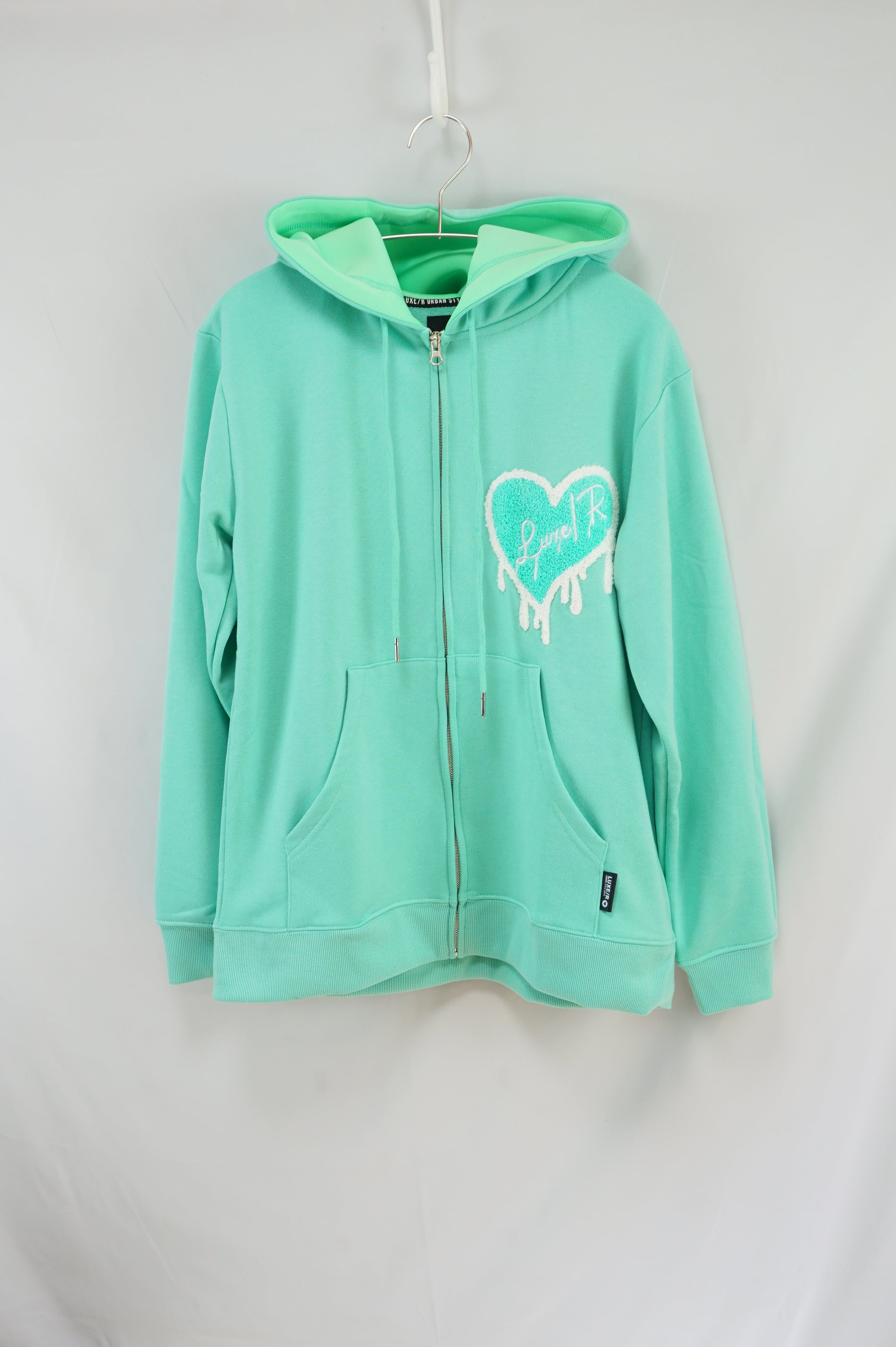 ハイブランドでよく扱われる、ハート柄、前後にサガラ刺繡ワッペン貼り付けされておりロゴが際立つカッコイイ柄です、エメラルドカラーは女性にも人気があります!