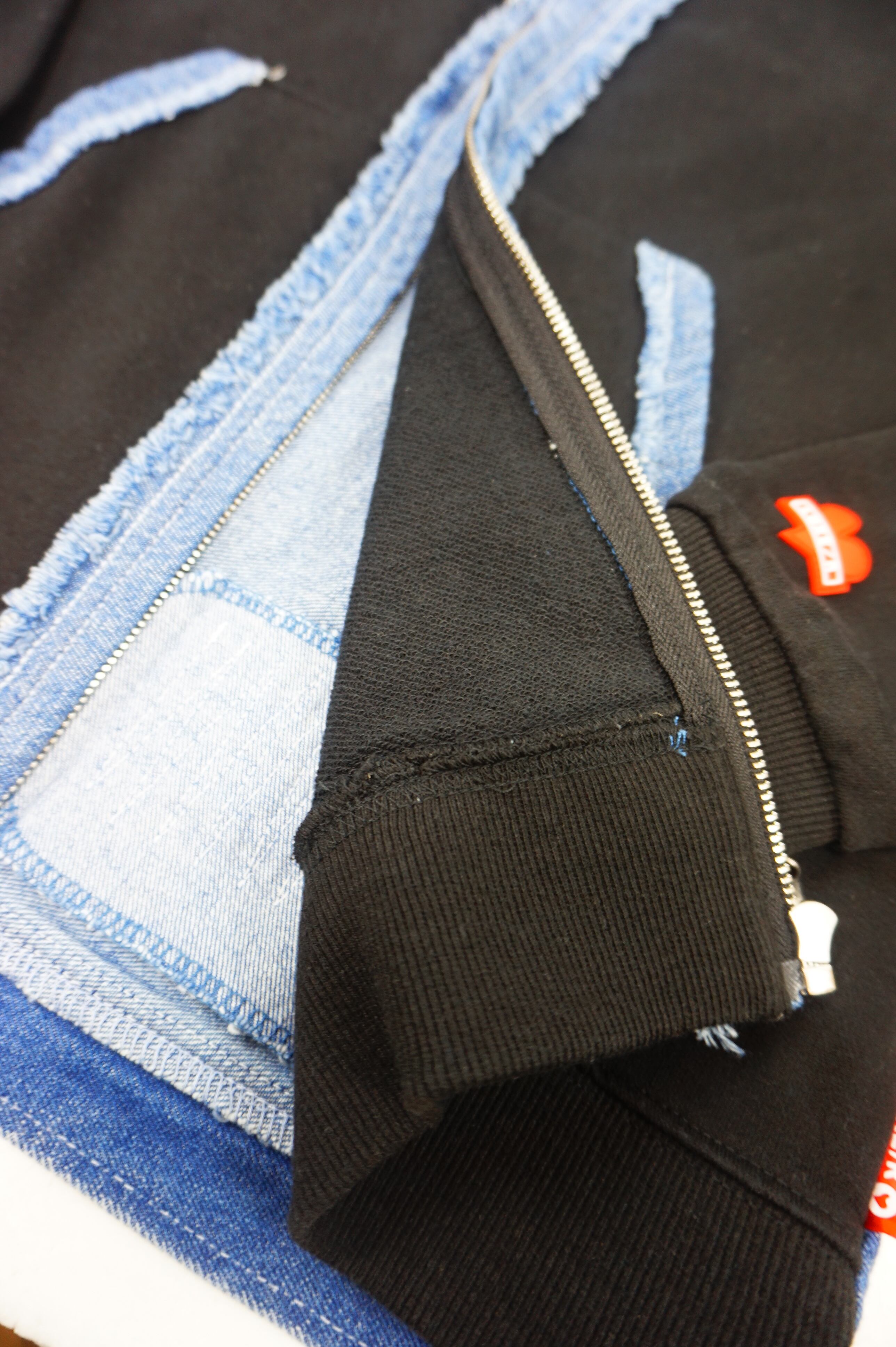 スウェット生地&デニム貼り付け
