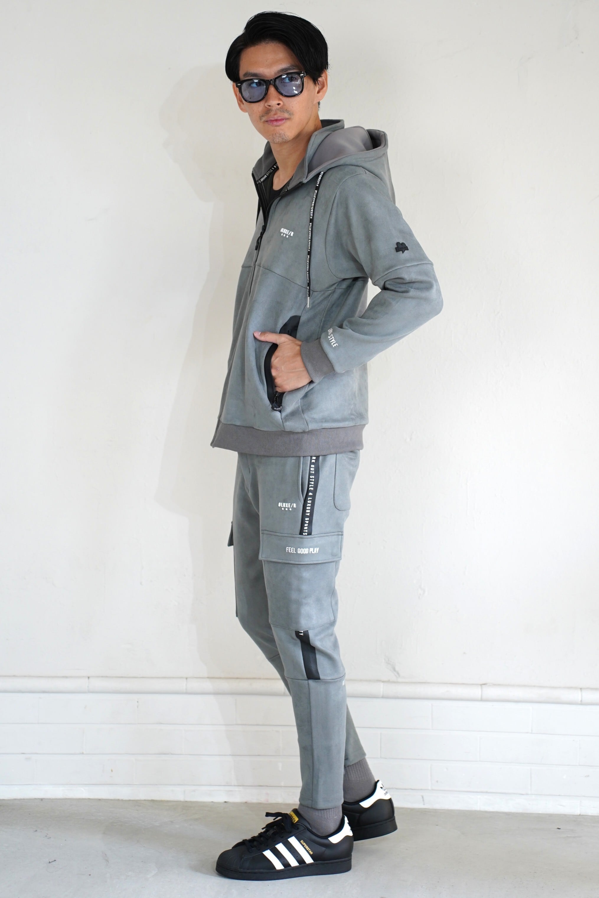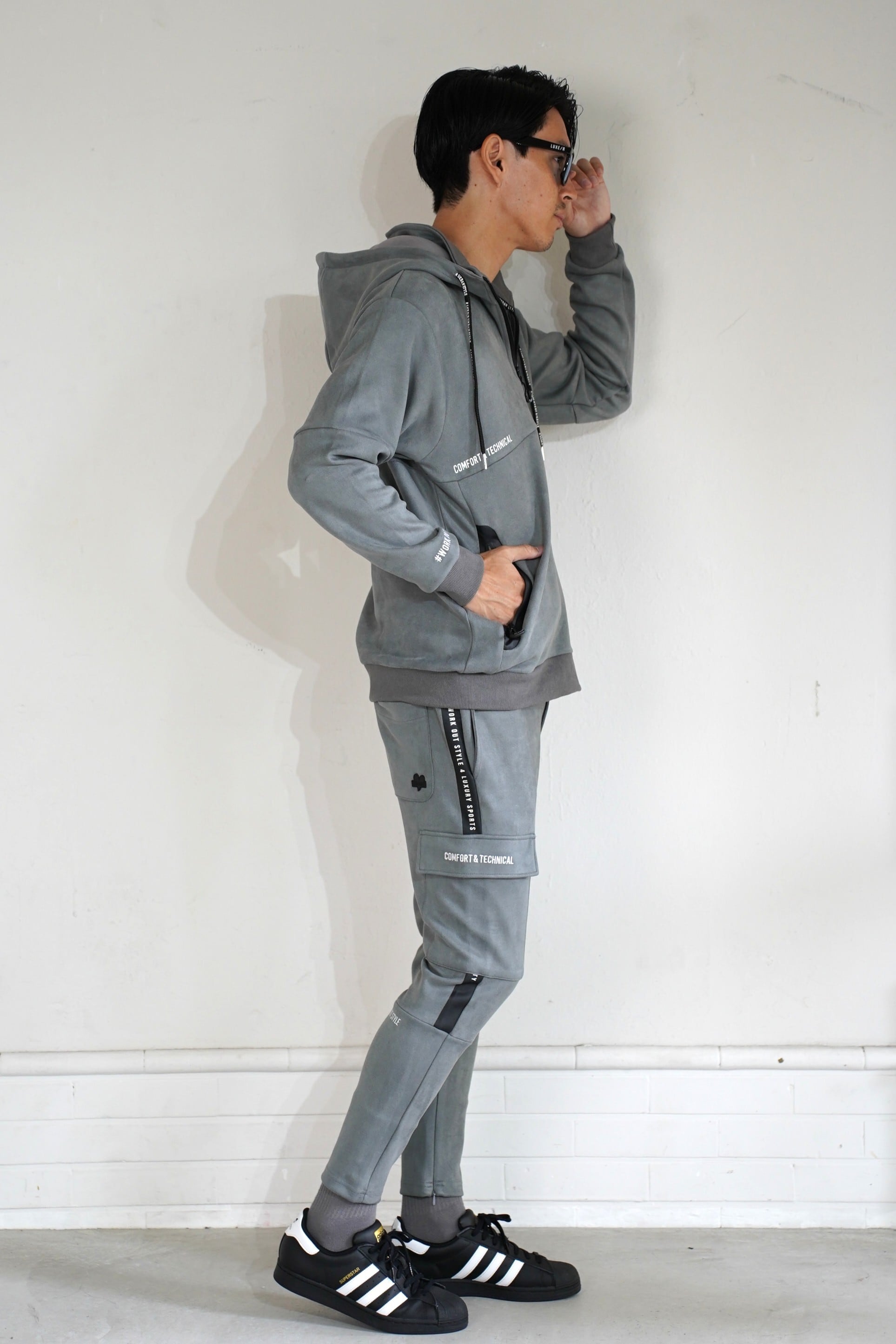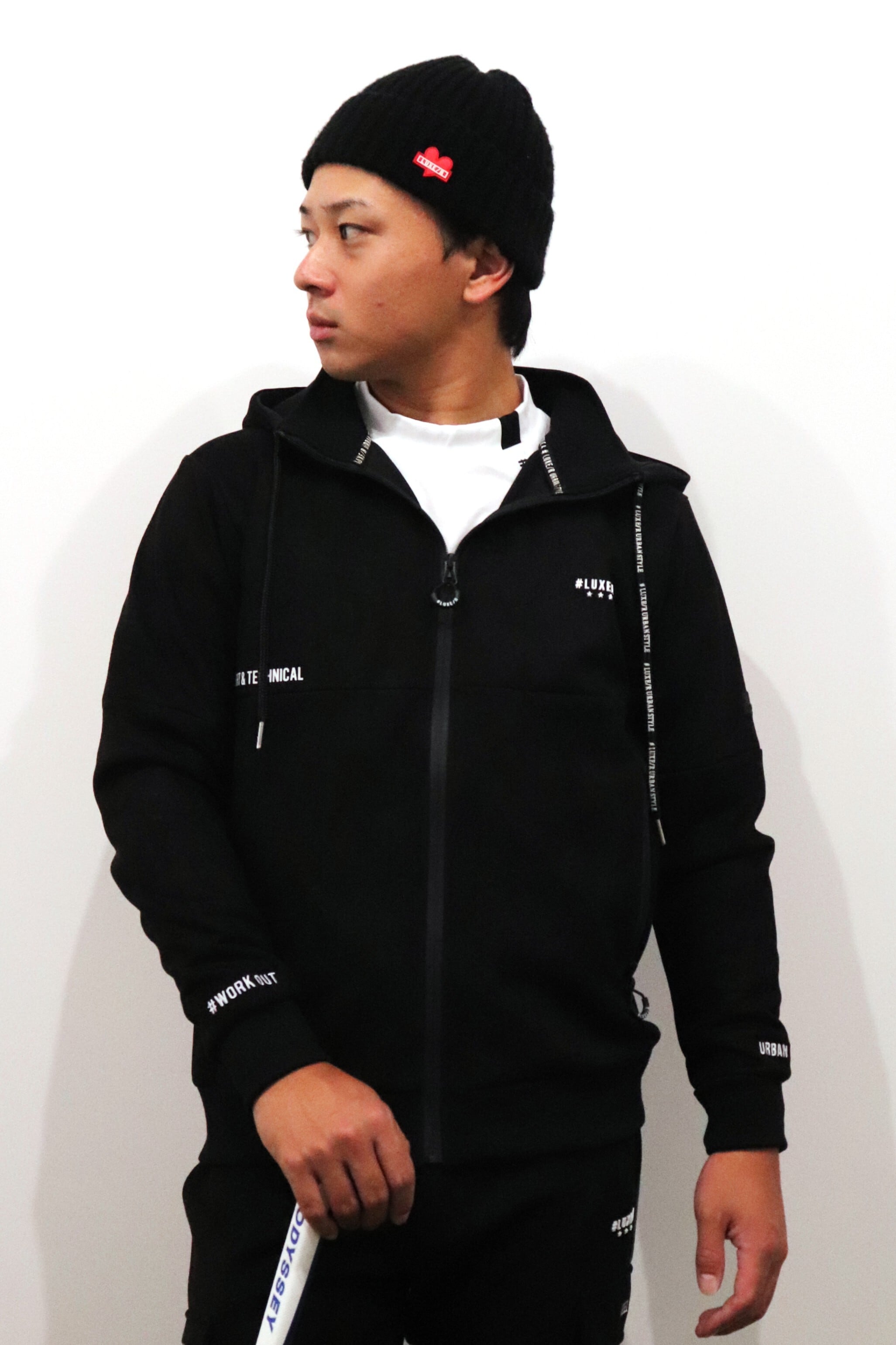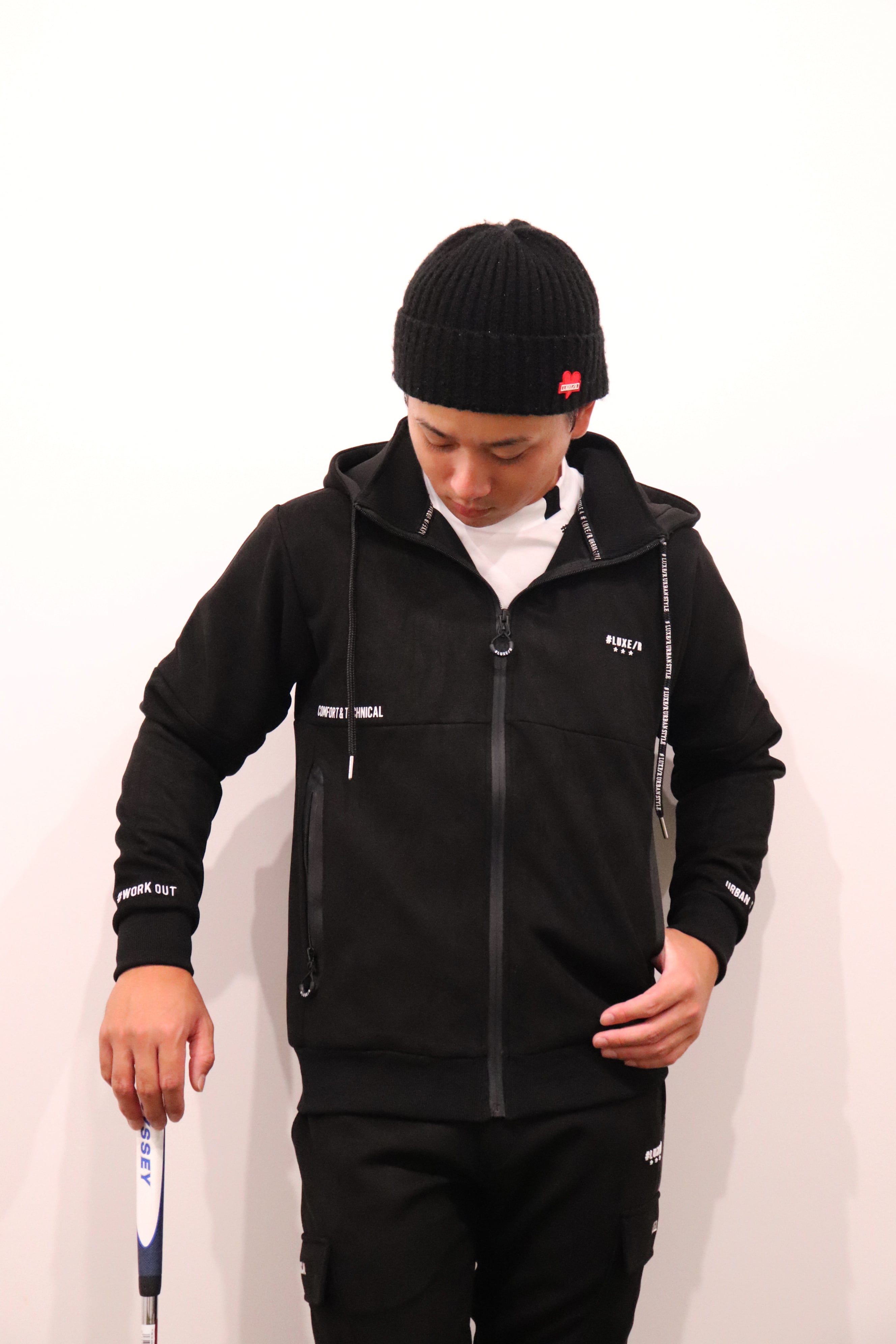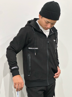 今流行りのポンチ素材ジャージに似ている柔らかい柔軟な素材です!フード、袖、裾にはロゴジャガード織してあります、シックでスポーティな商品です。ジョギング、サッカー、ジムなどあらゆるスポーツに最適です。SET/UPでもご利用頂けます。