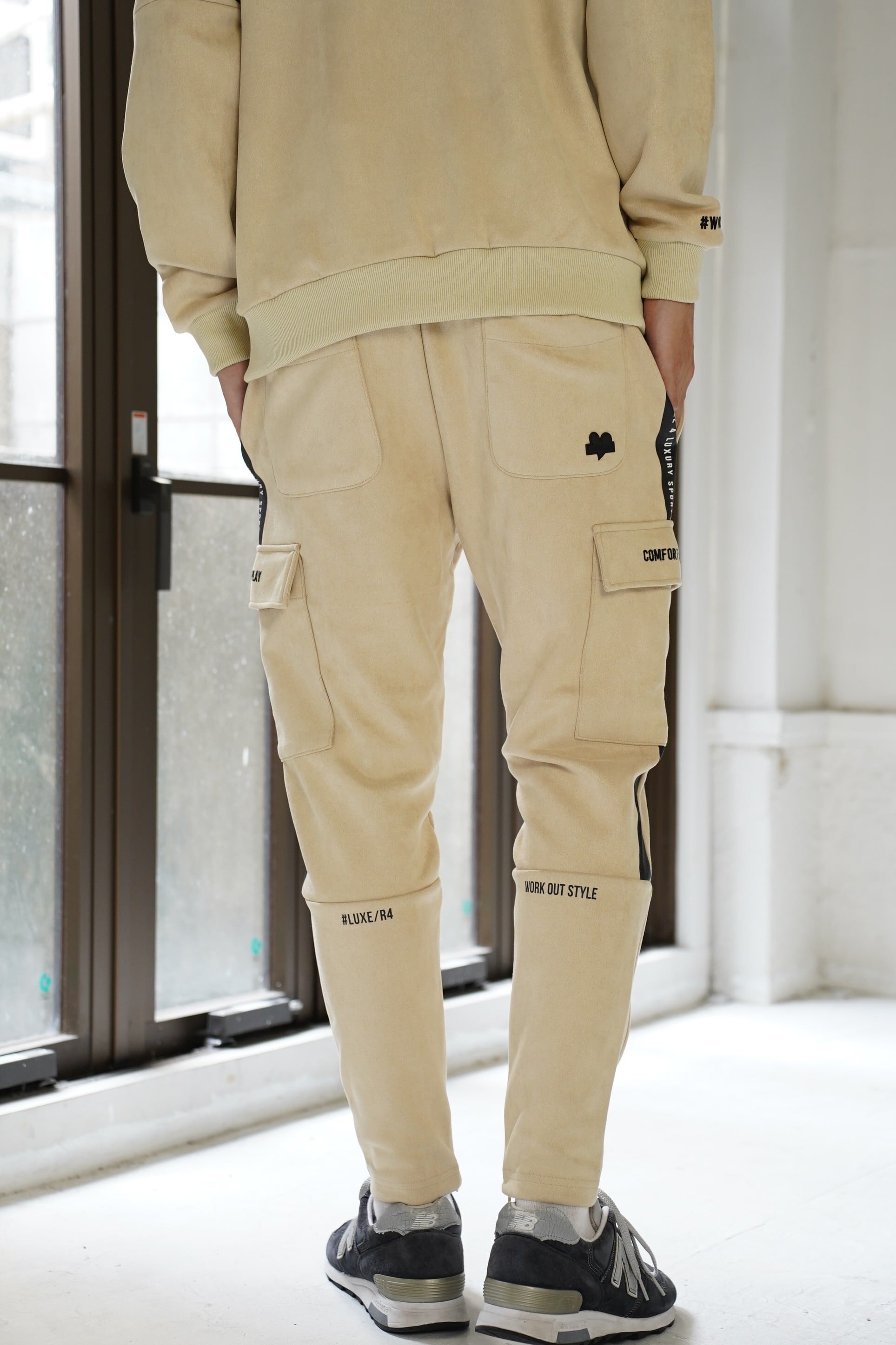 ポリスエードストレッチが効いた柔軟な素材です。カジュアルパンツはユニセックスで着れます!シックでかわいい商品です!やや細めです!