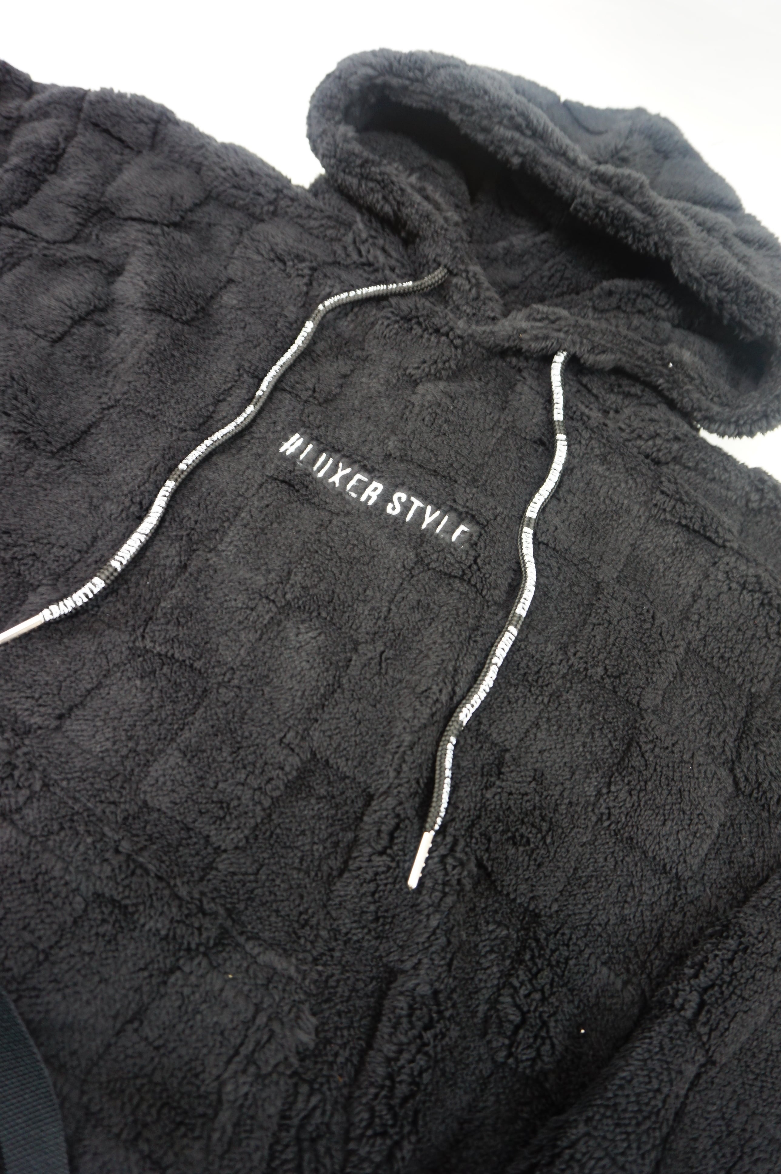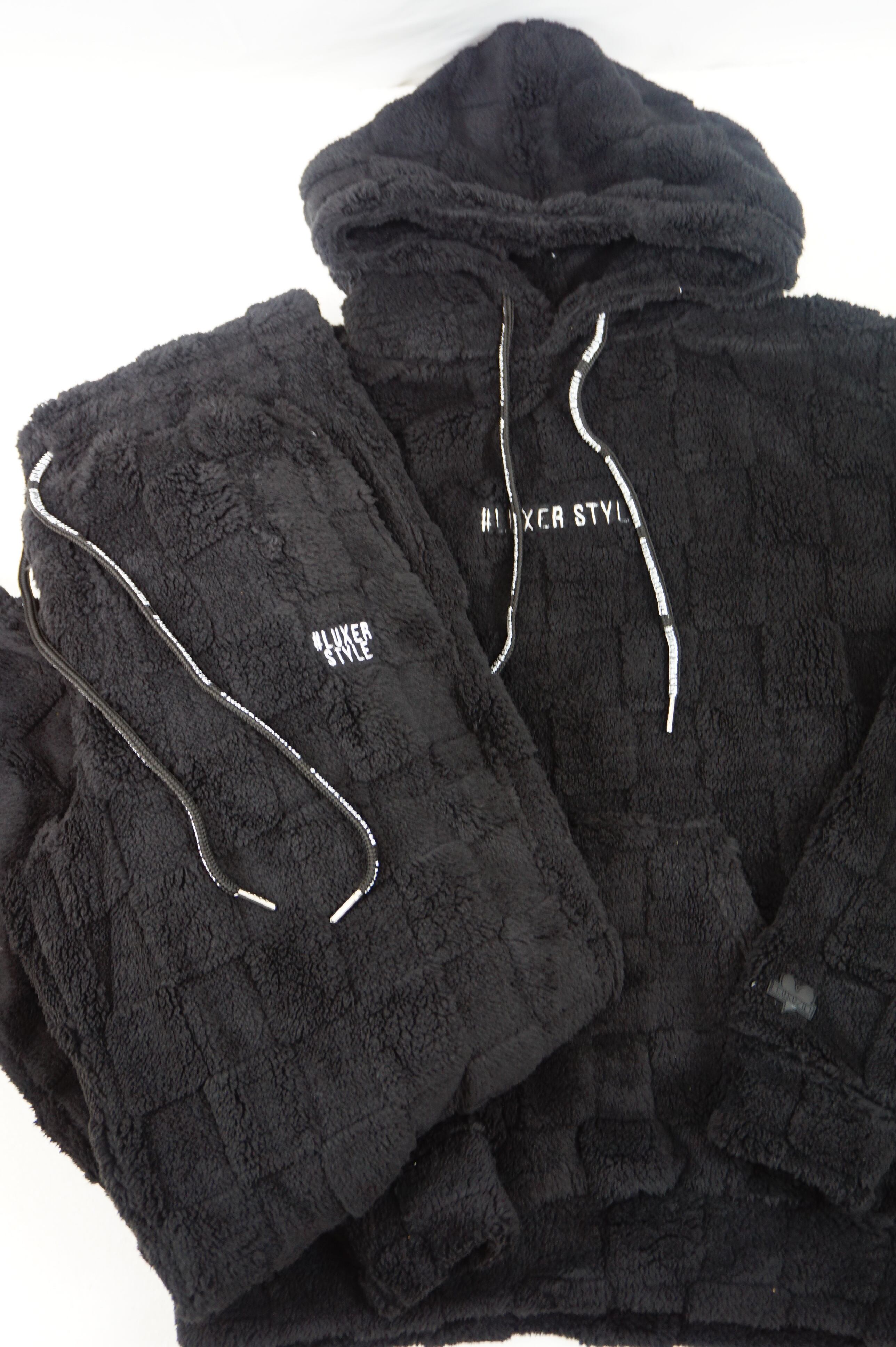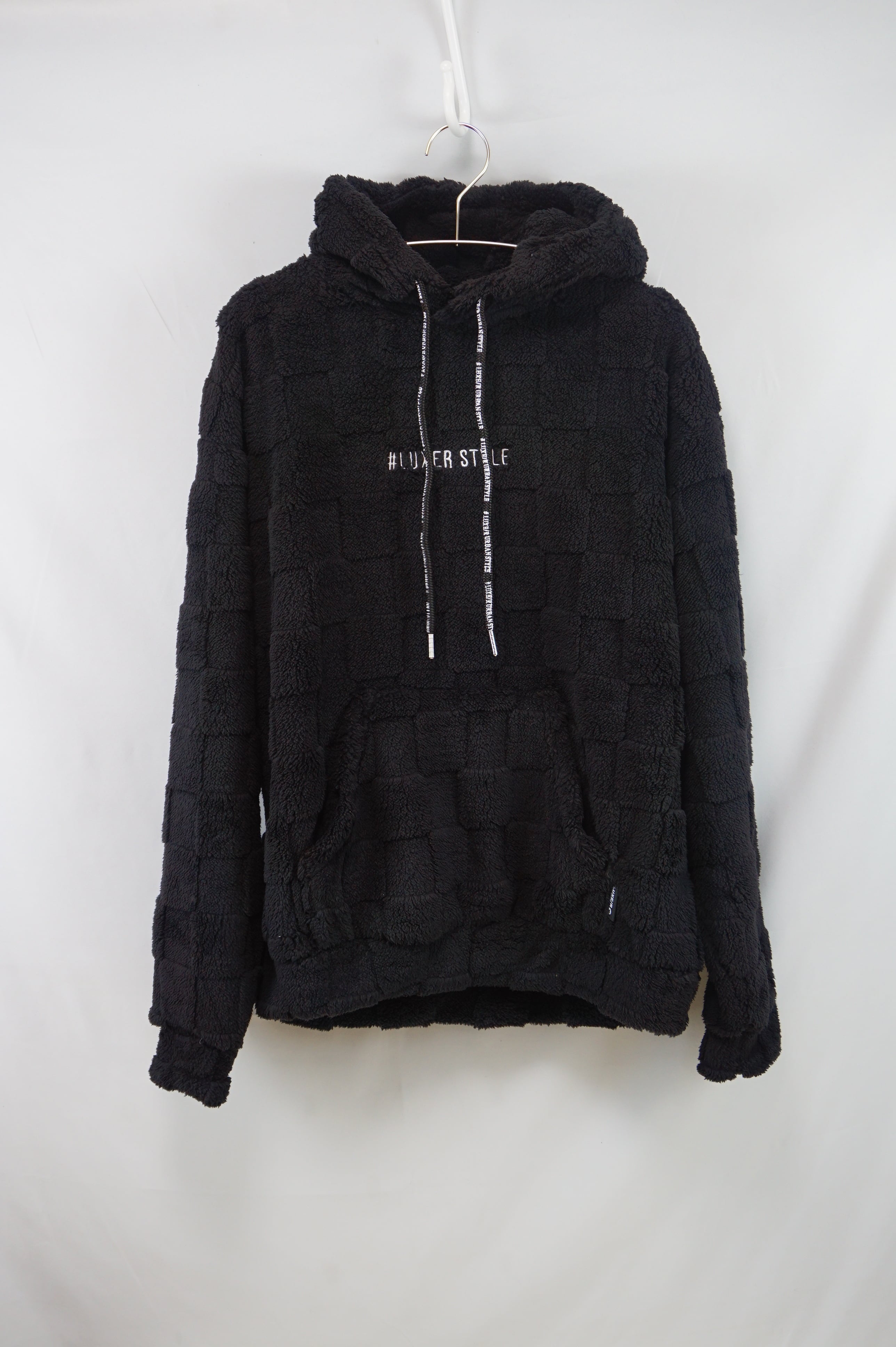 今回のブロックチェック柄フアーはとても柔らかく肌になじむ着心地の良い素材です。
