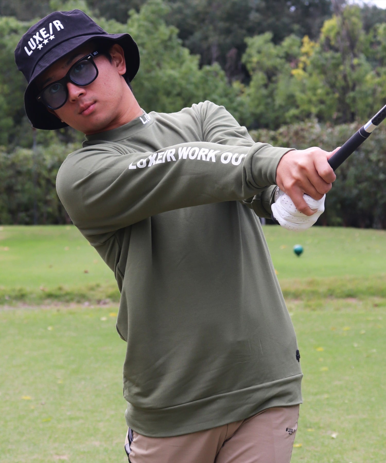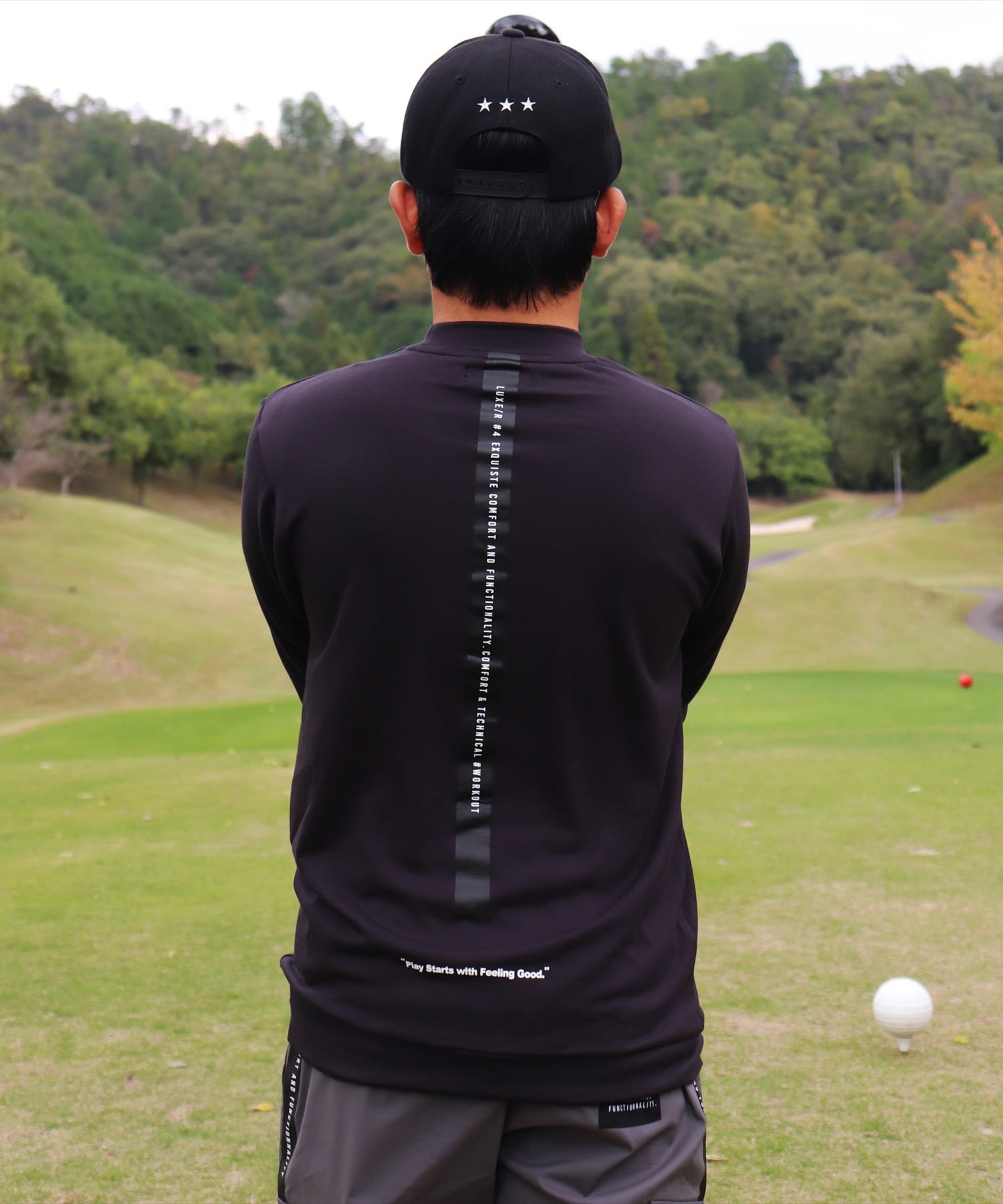 襟はミニモックネックでGOLFにも着用頂けます。LUXERな素材感にあっさりプリントでセレブ感満載ですね!今流行りのデザインです。