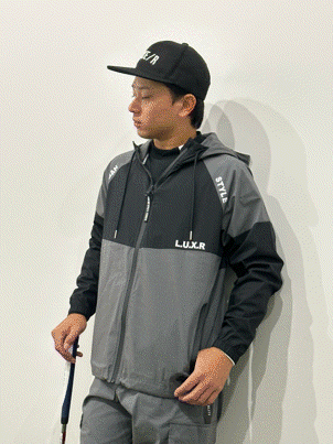 【LUXE/R GOLF】(46137)*撥水加工 ストレッチ ナイロンスウェット ZIPUPパーカ