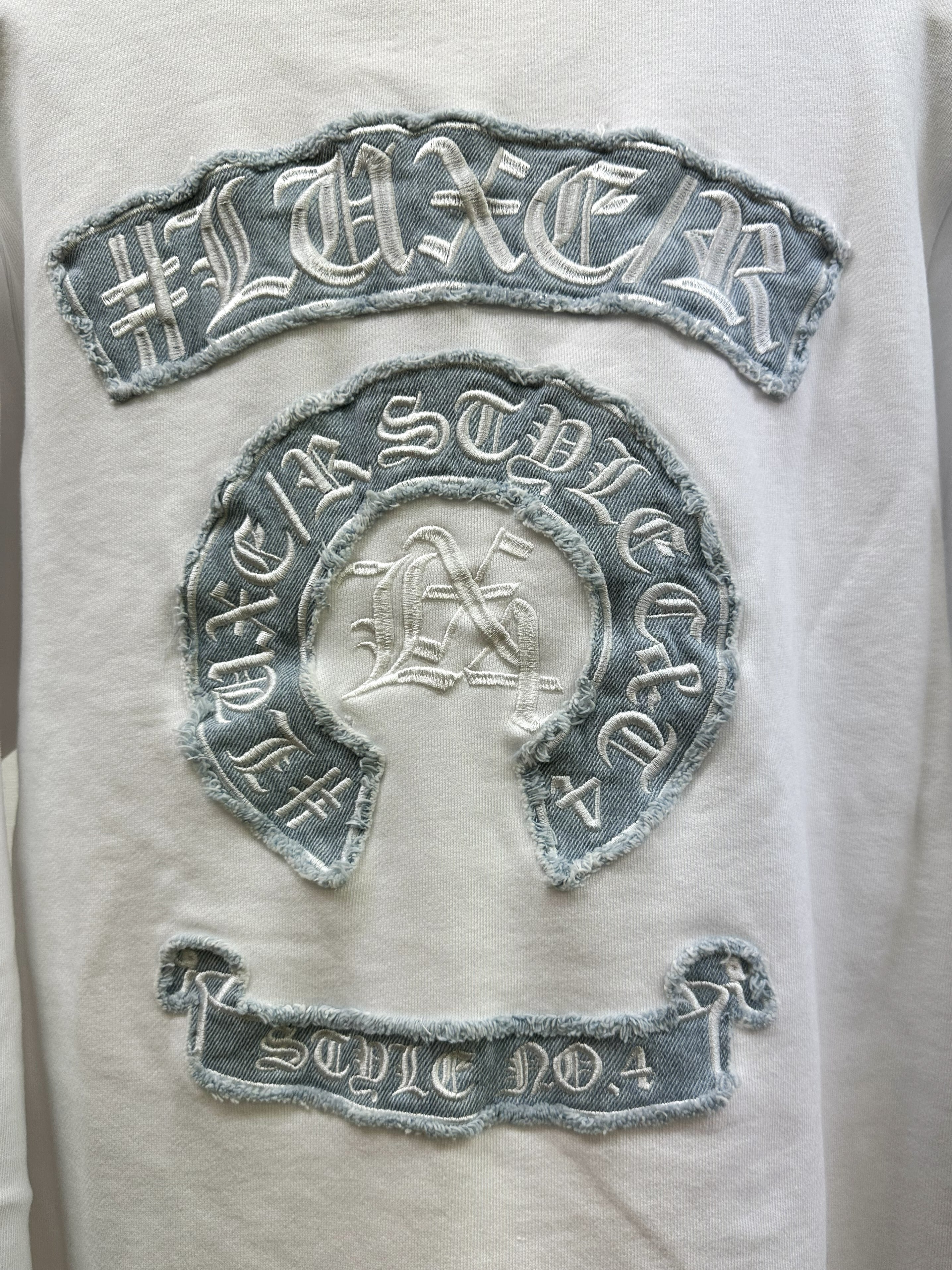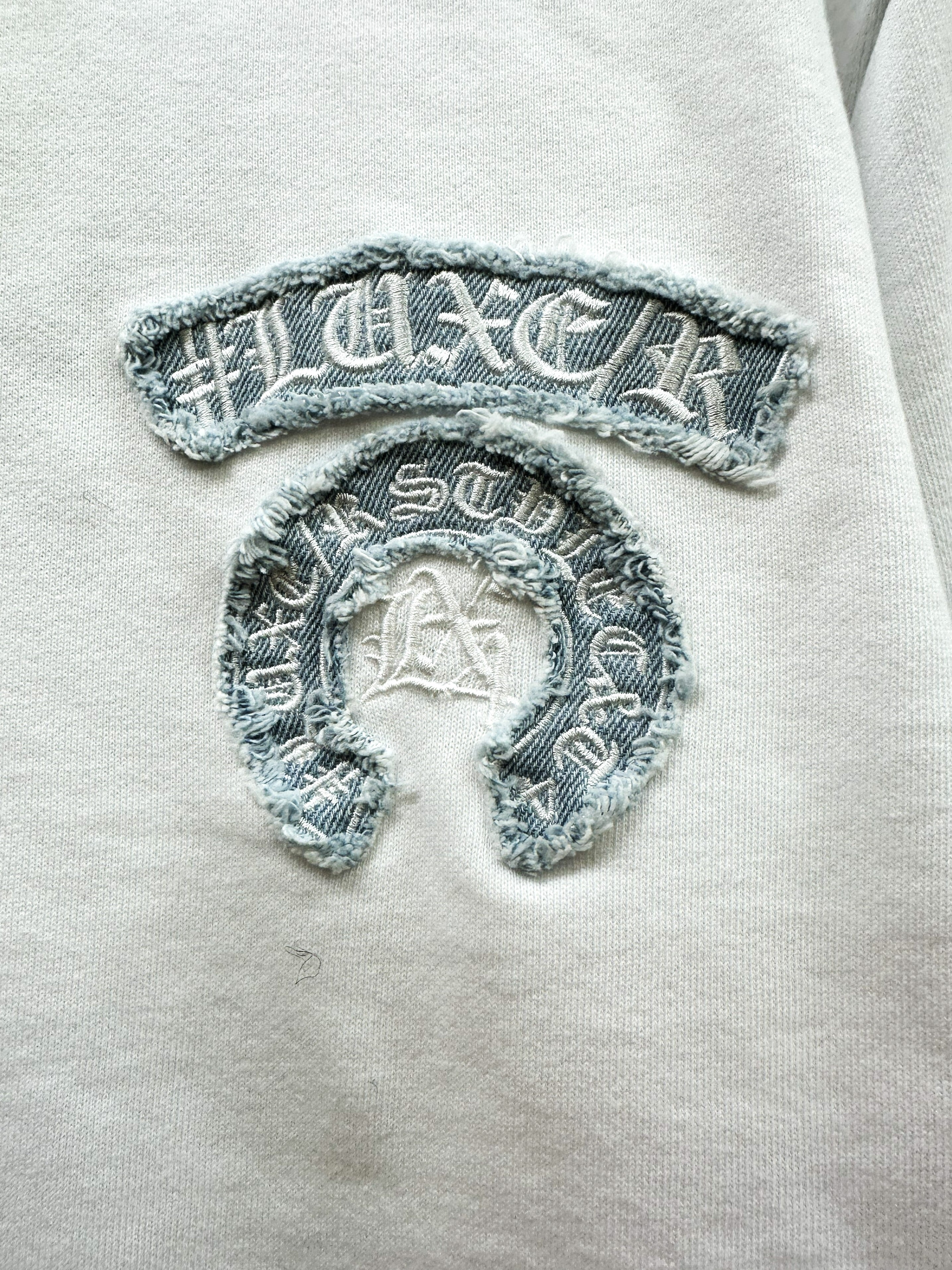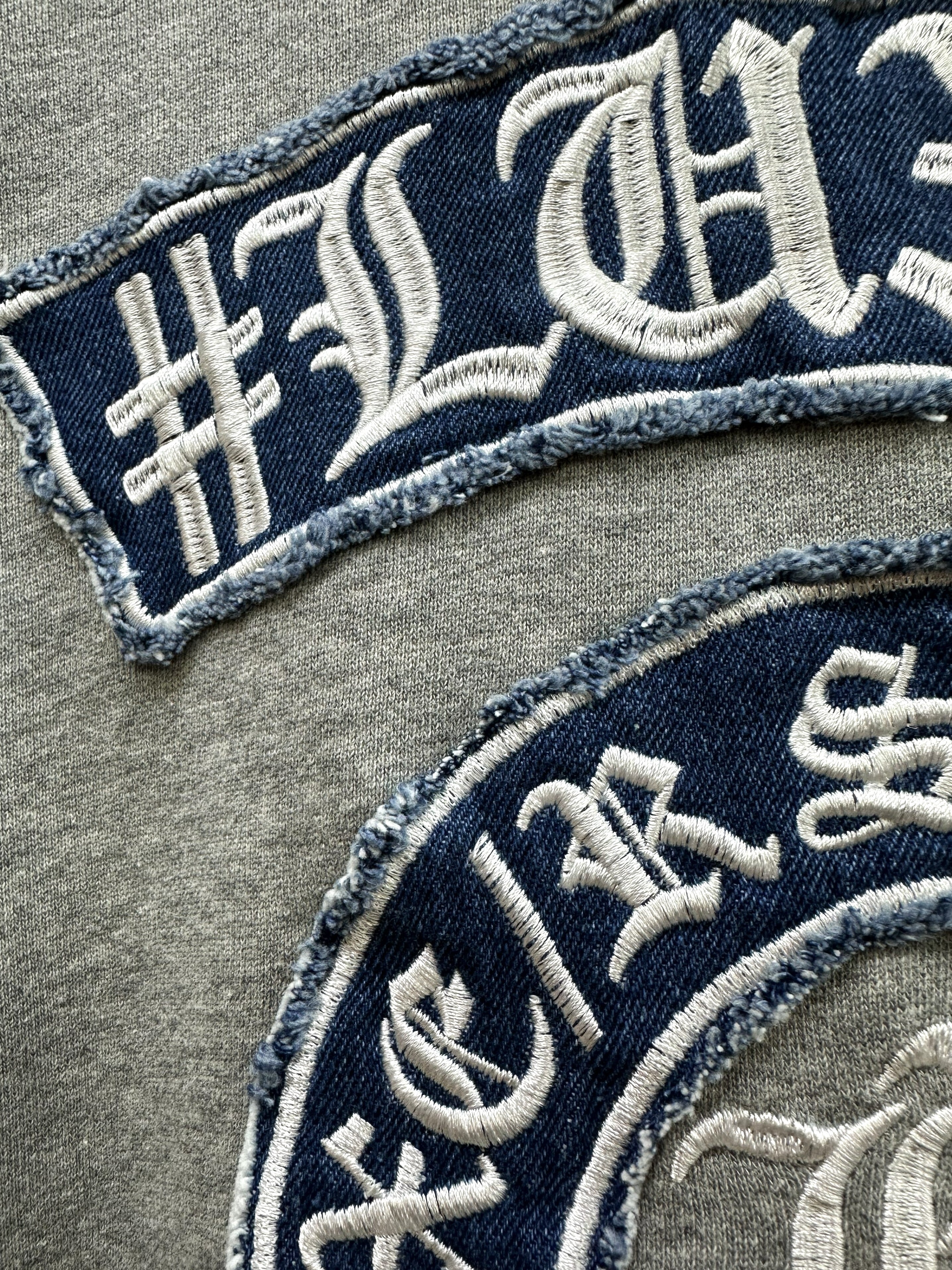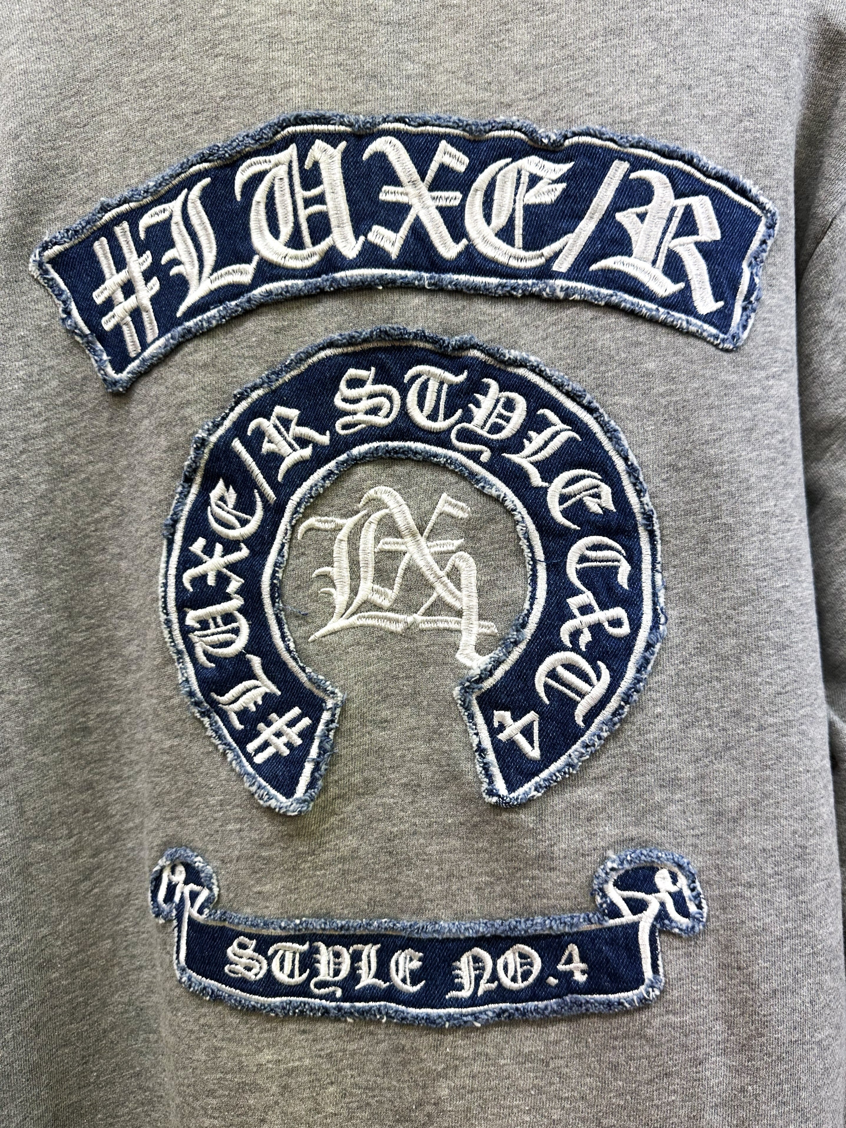 フロントにはデニム切り替え布帛ジャガードロゴ切り替えカットを掛け合わせた新しいアイテムにしてます、ハイブランドのようにアレンジしました。