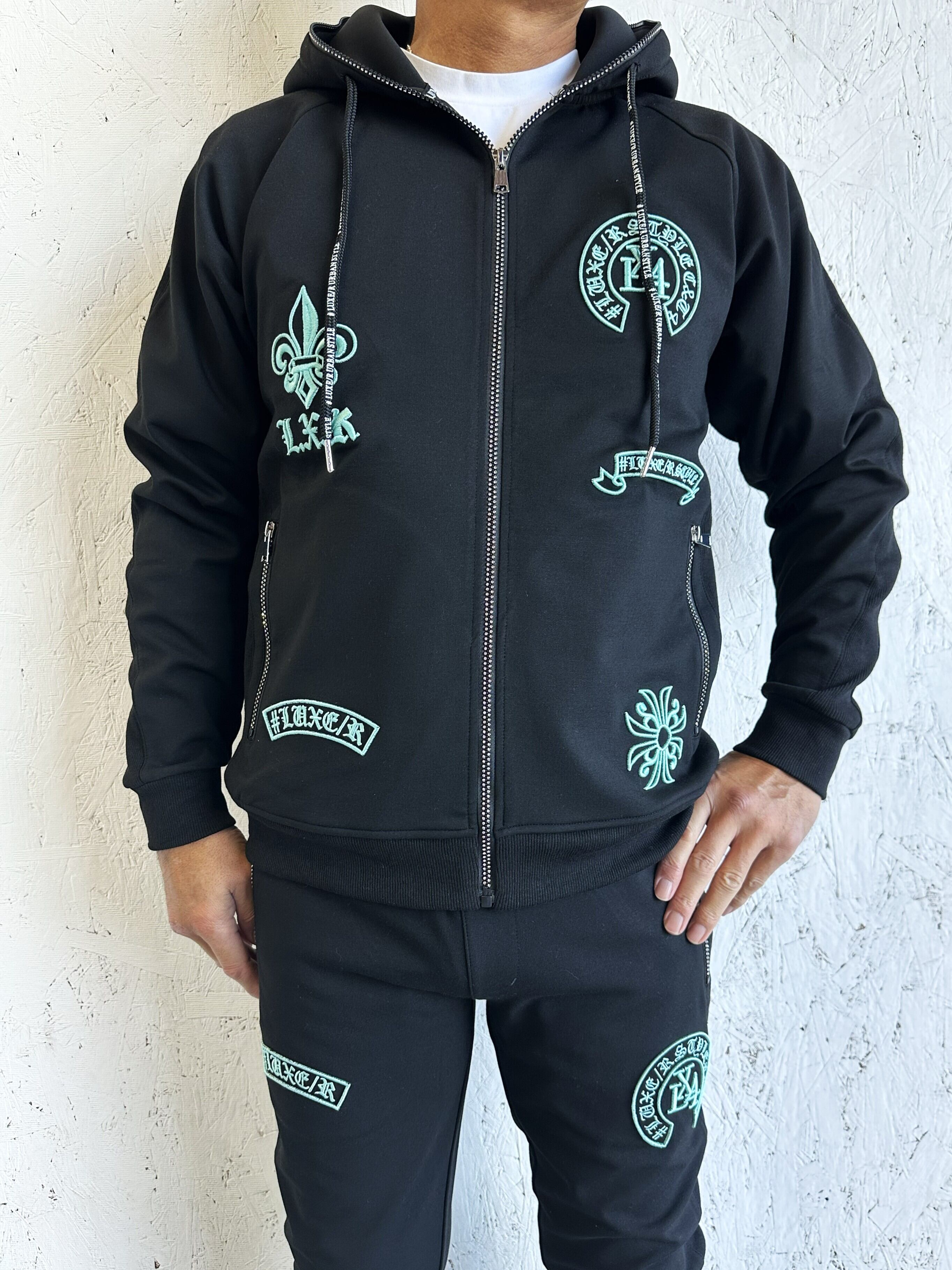 ストレッチが効いた柔軟な素材です。ラインストーンZIP付きでゴージャス感あふれるカジュアルパンツはユニセックスで着れます!シックでカッコイイ商品です!やや細めです!