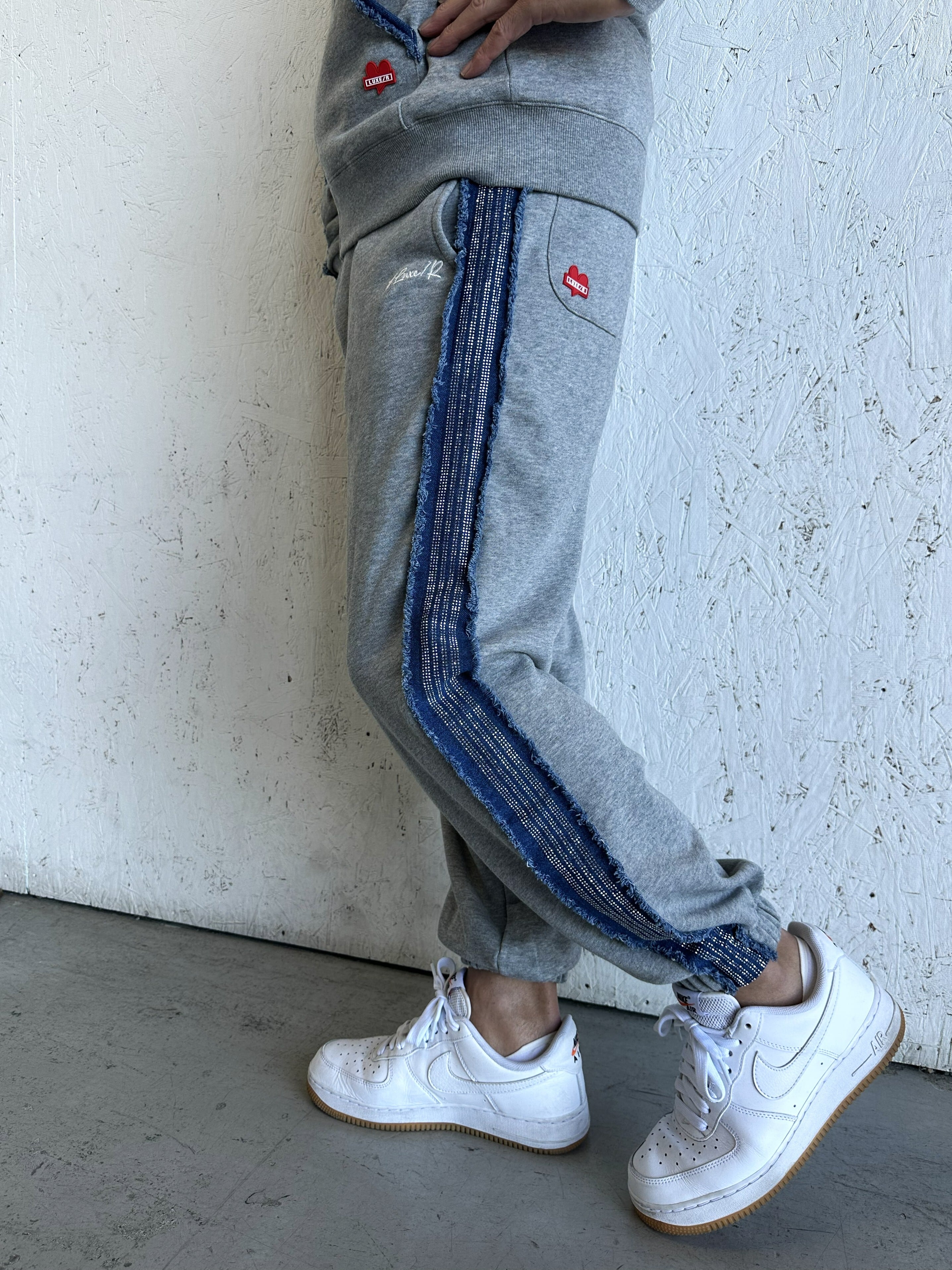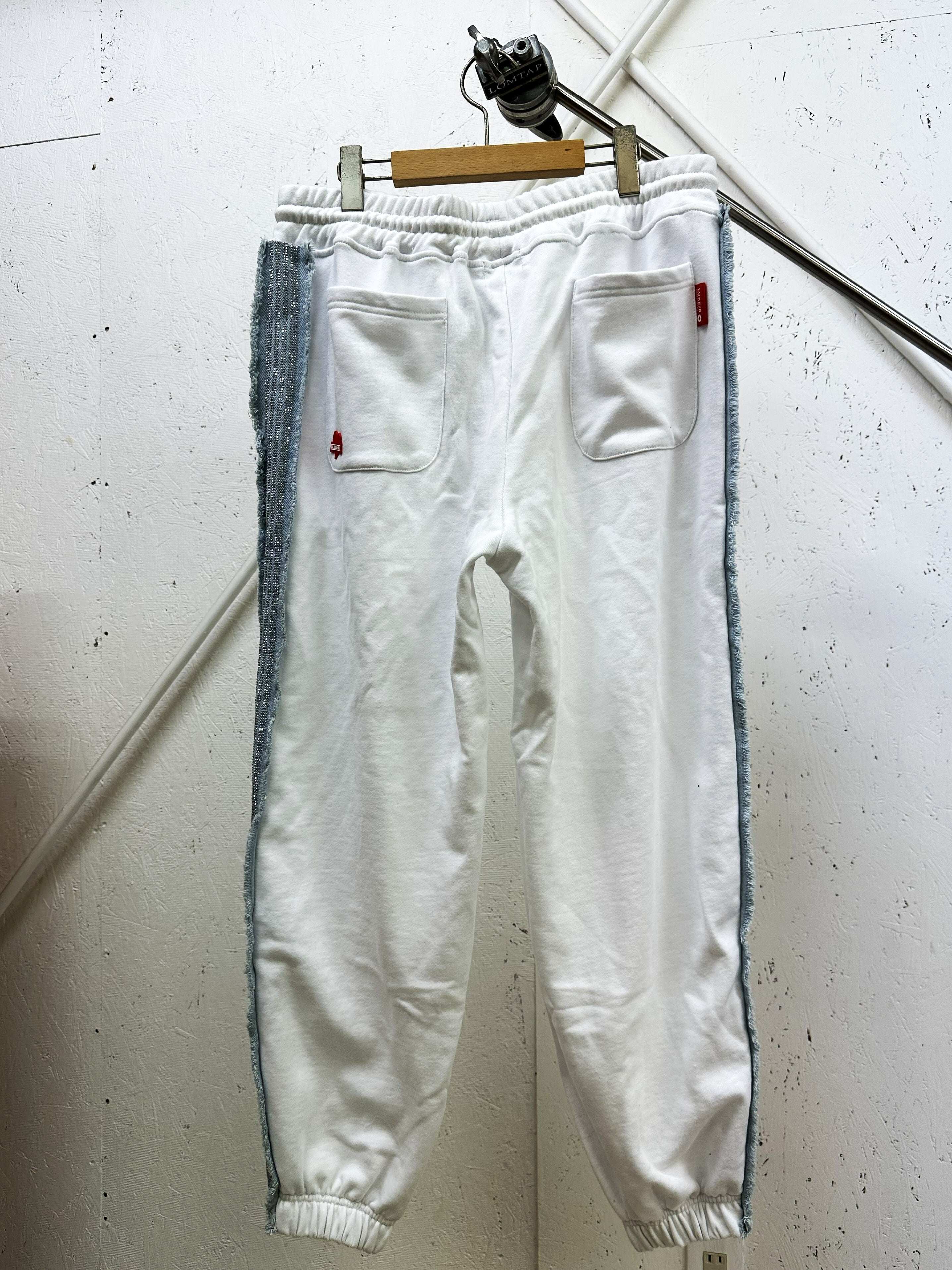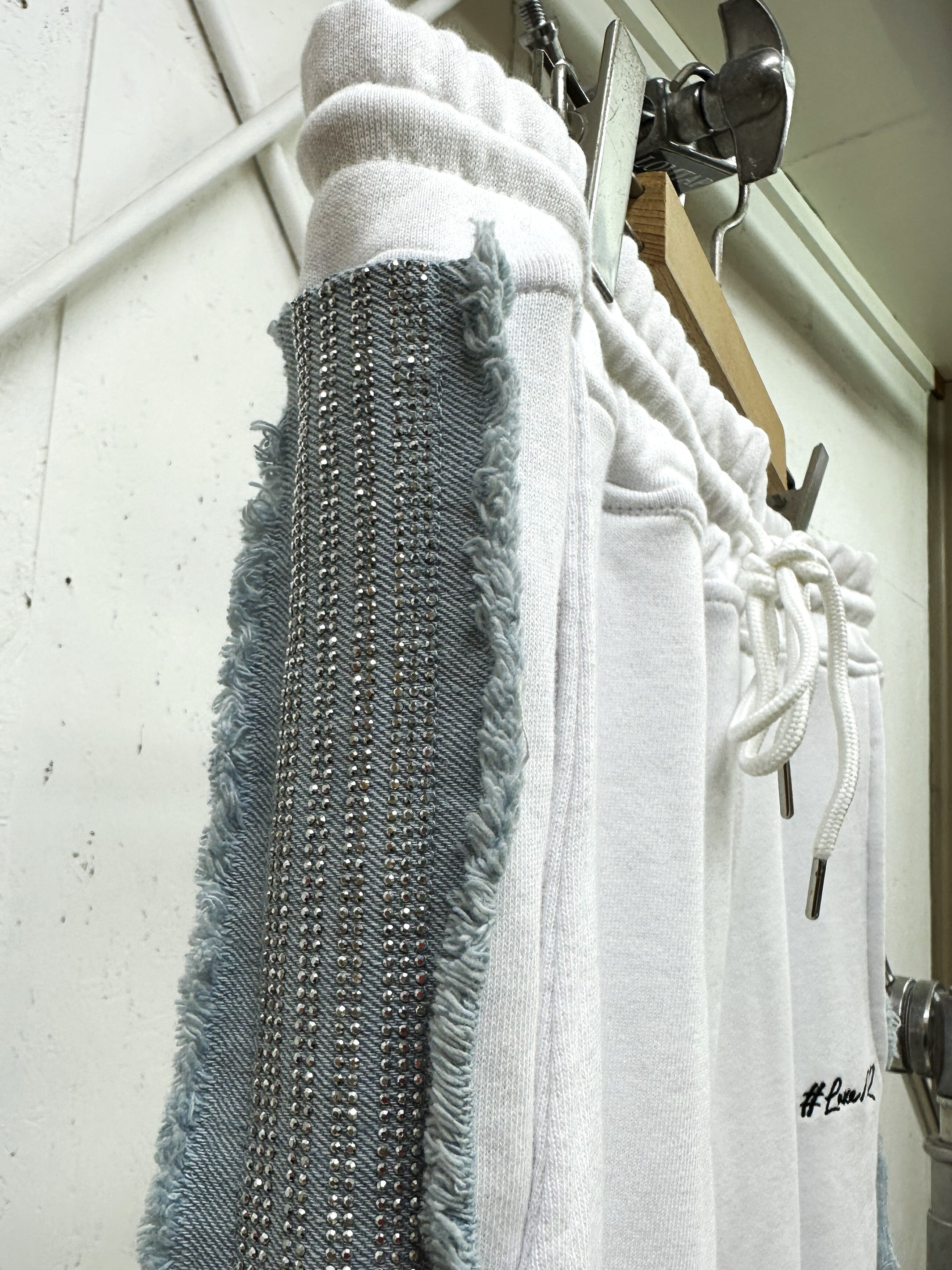 ストレッチが効いた柔軟な素材です。カジュアルパンツはユニセックスで着れます!シックでかわいい商品です!やや太目です!デニムにラインストーン貼り付けを使用しています。