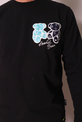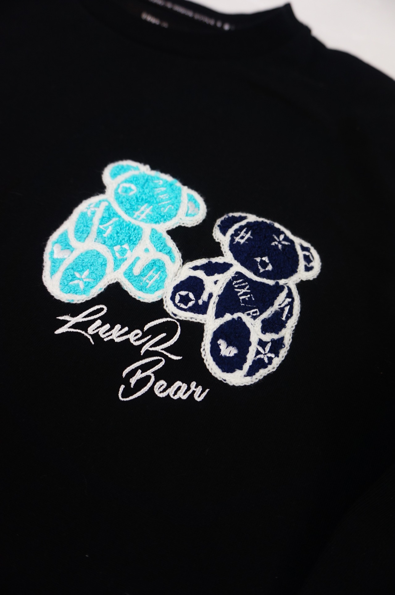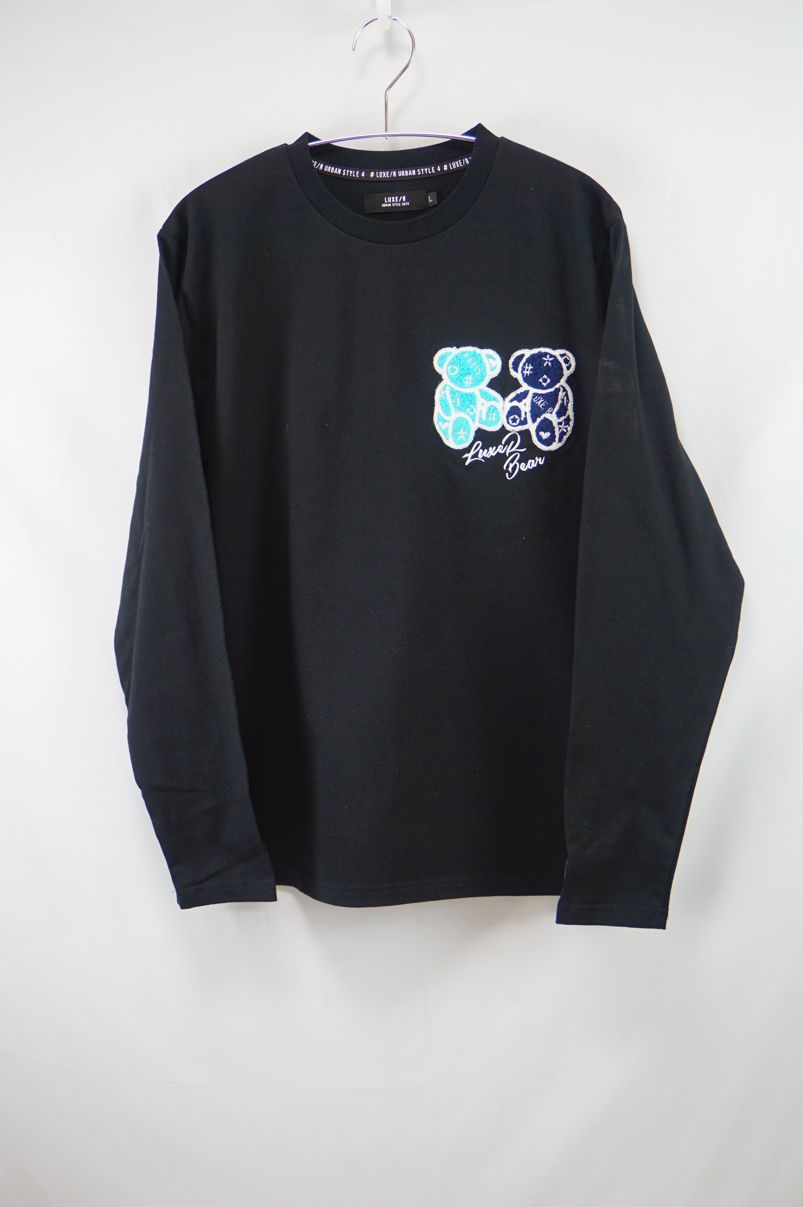 【LUXE/R】(46215) デニム貼り付けWベアー柄ロングTシャツ