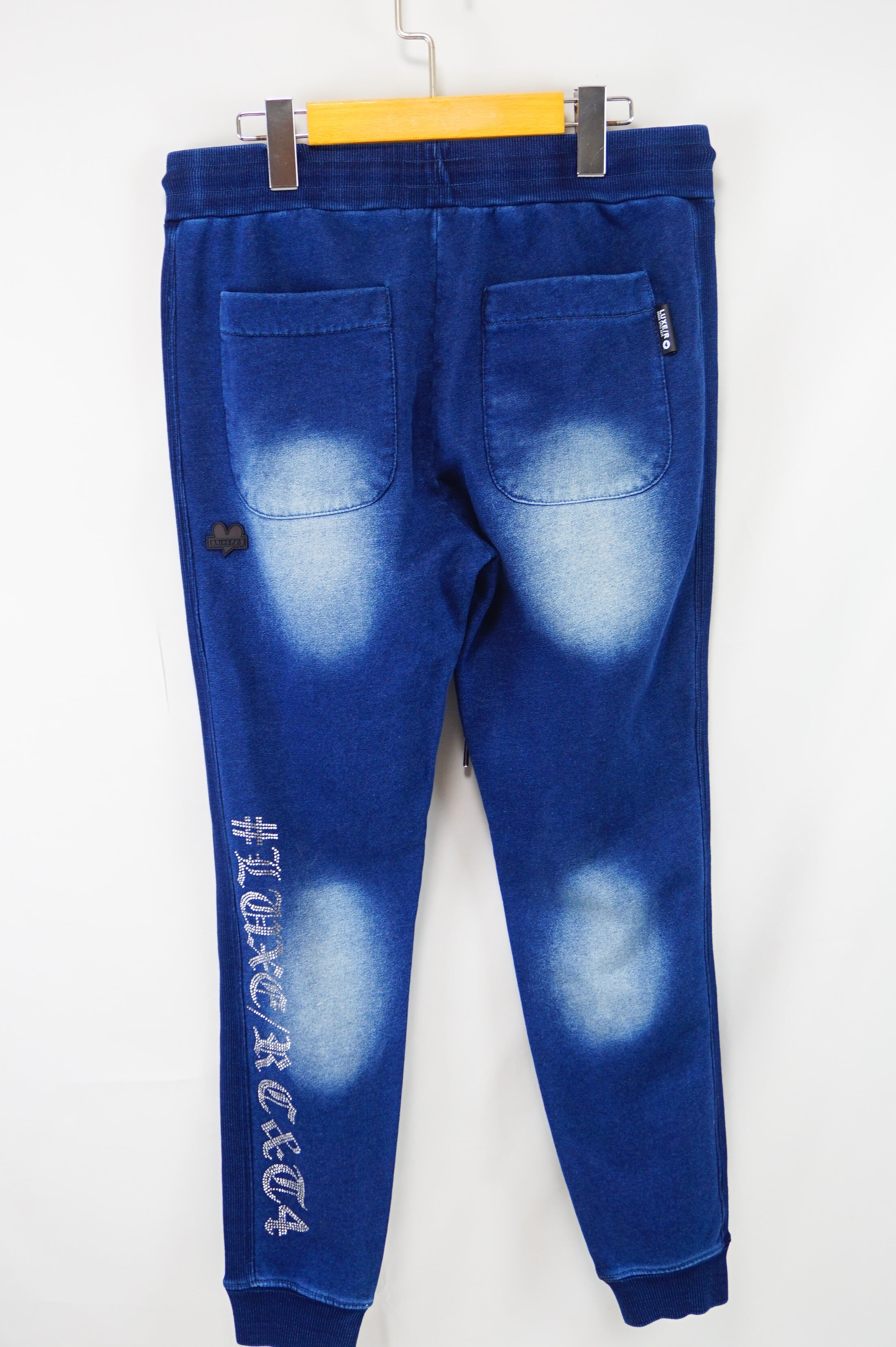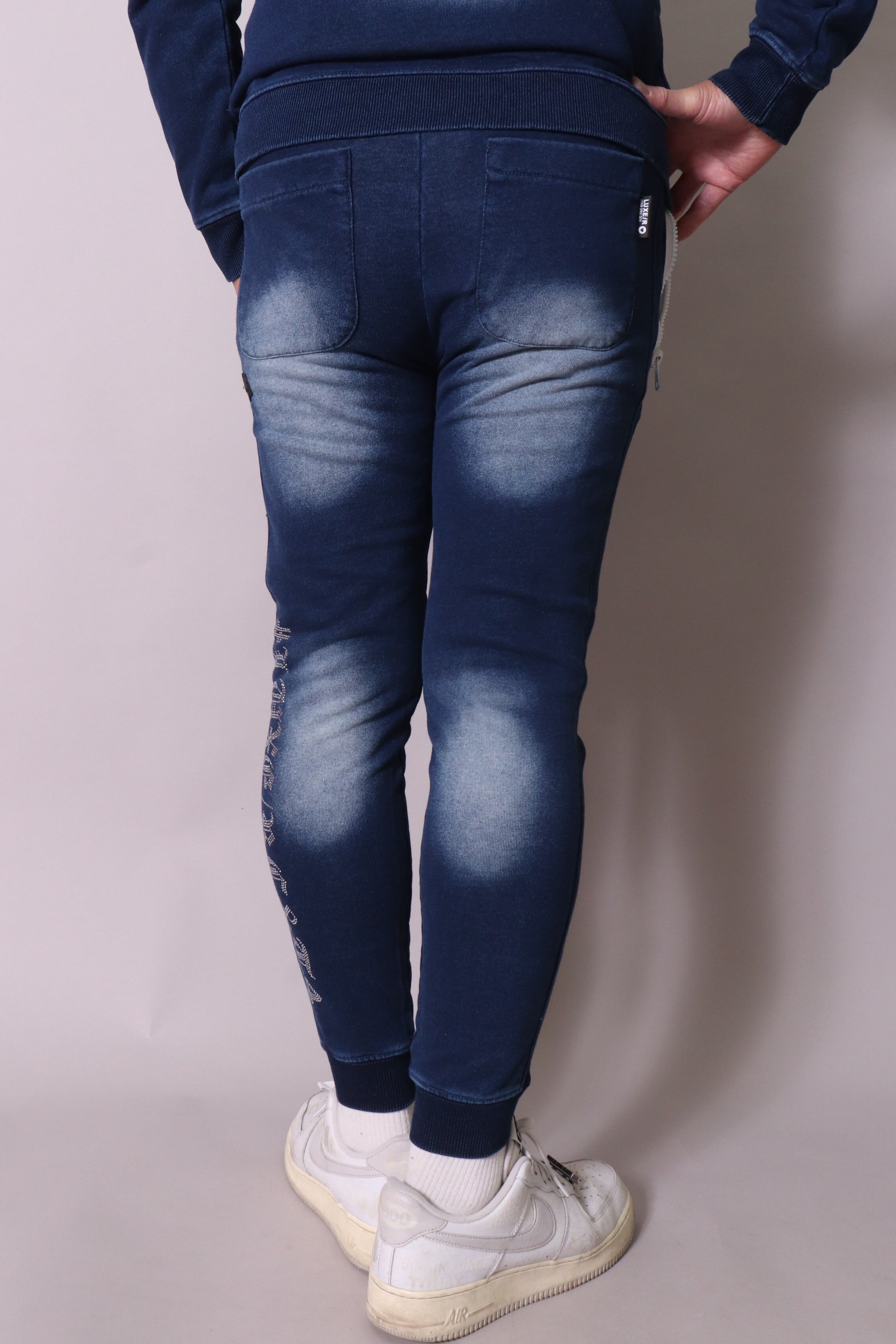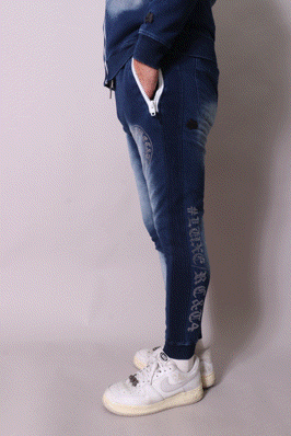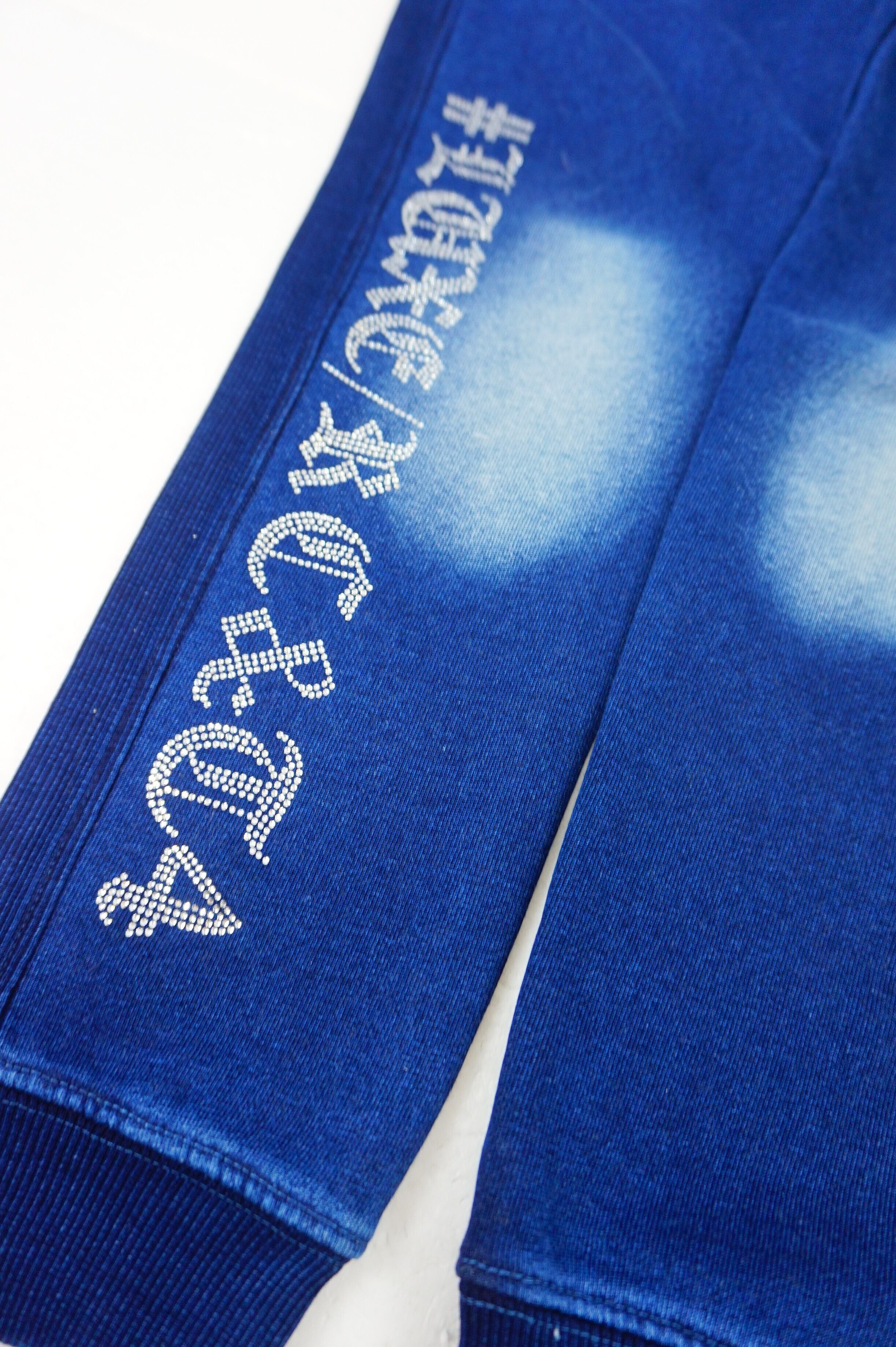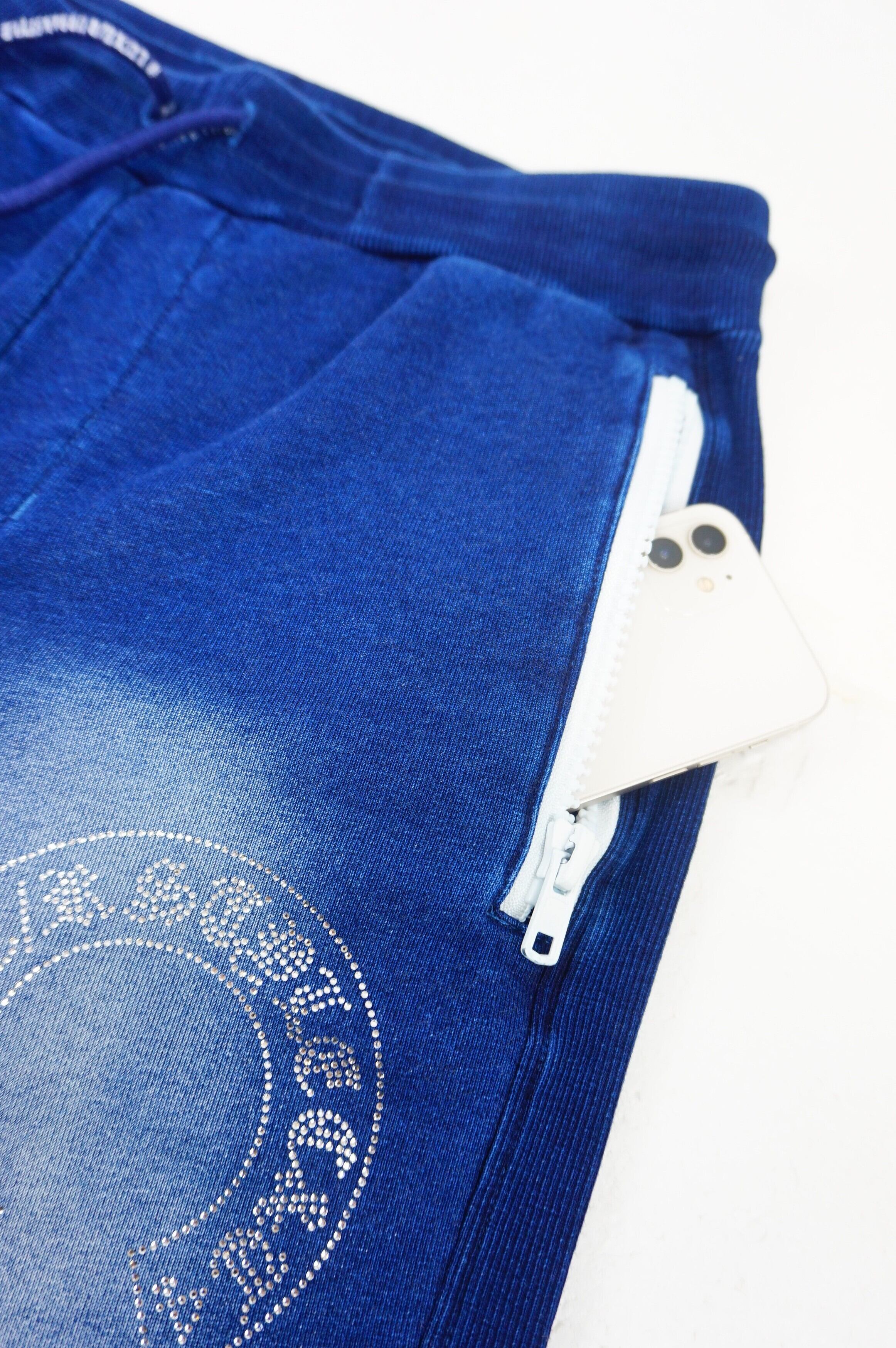 【LUXE/R】(46232) カットデニム裏毛生地 ラインストーン貼り付け刺繡パンツ