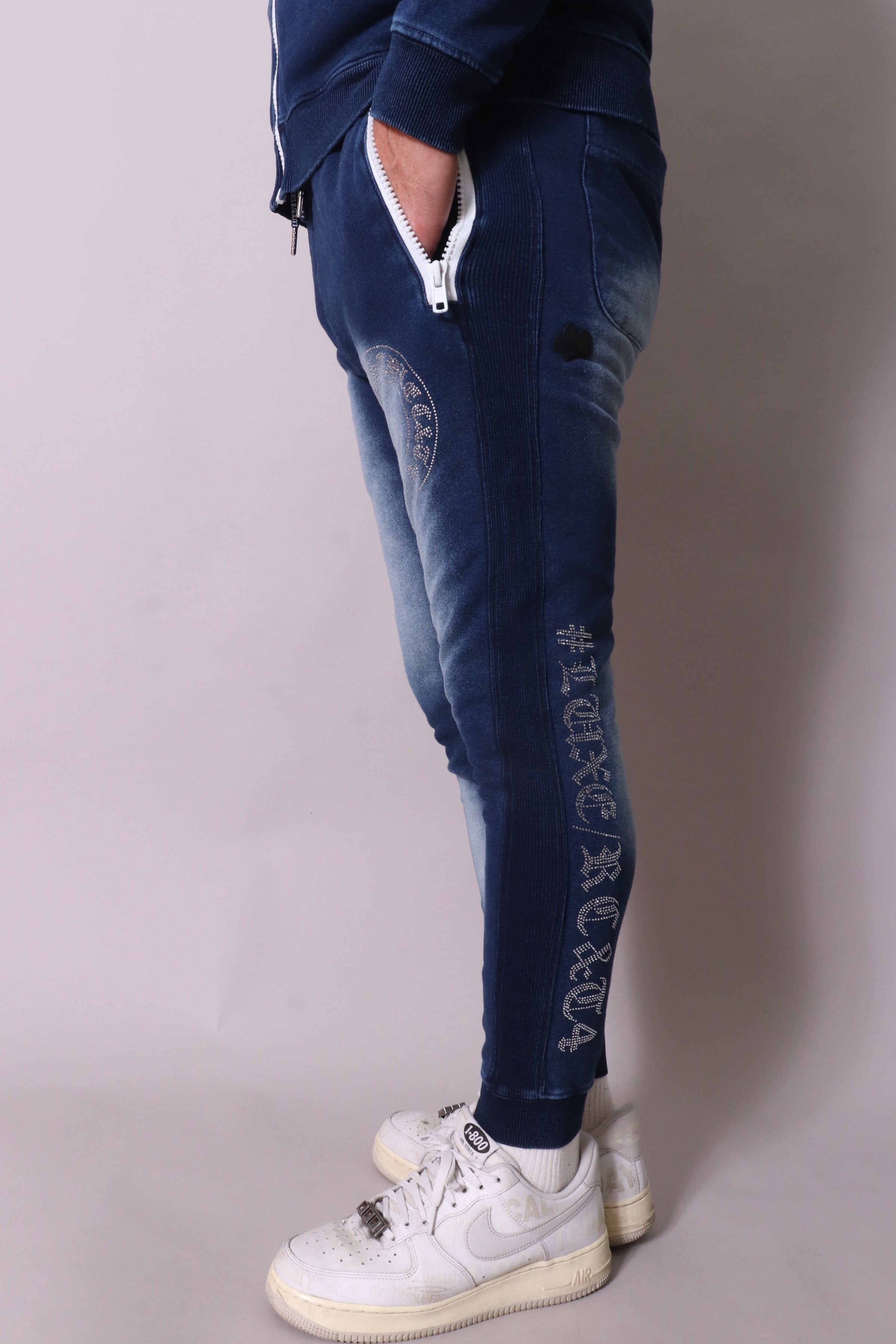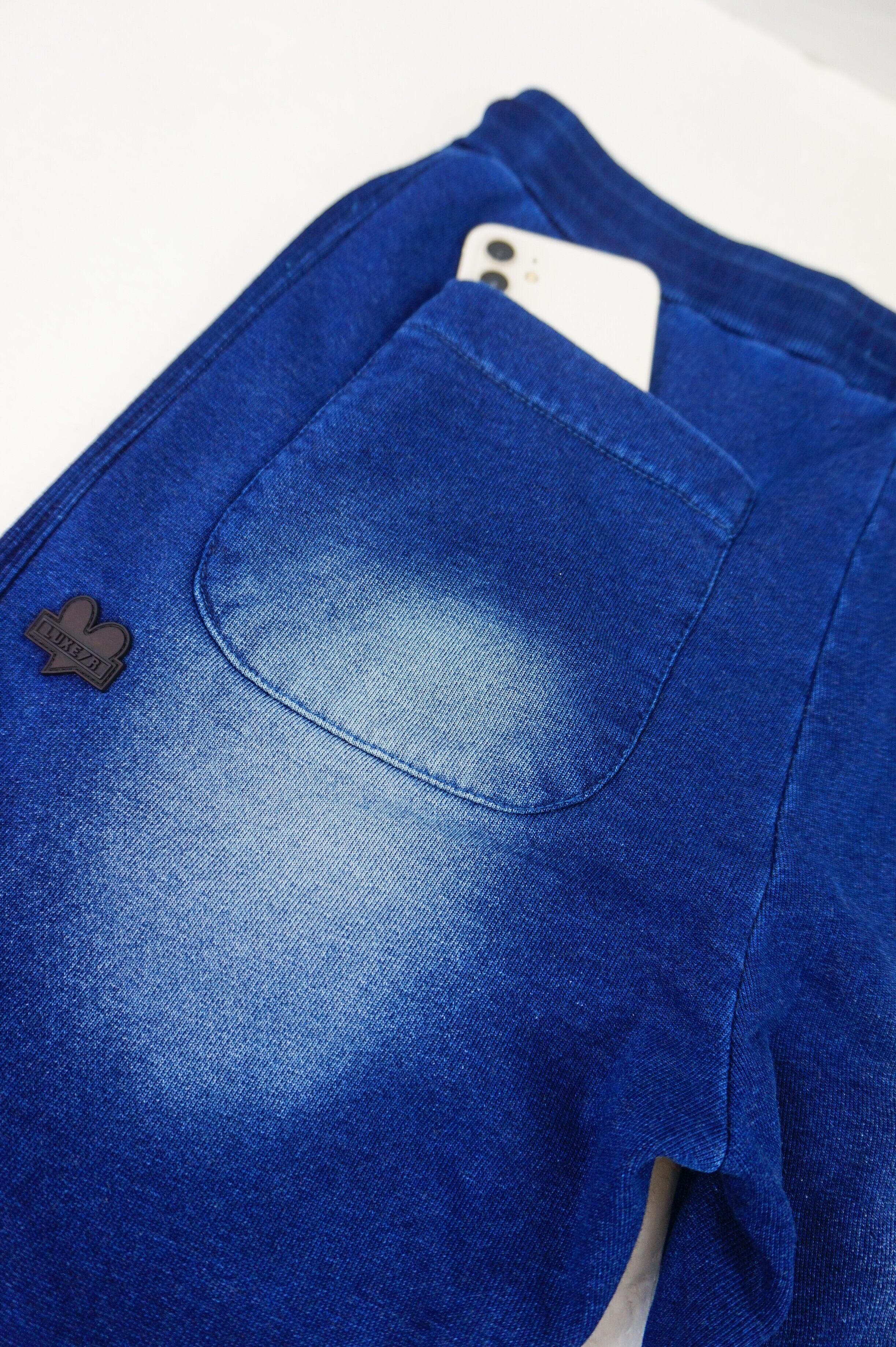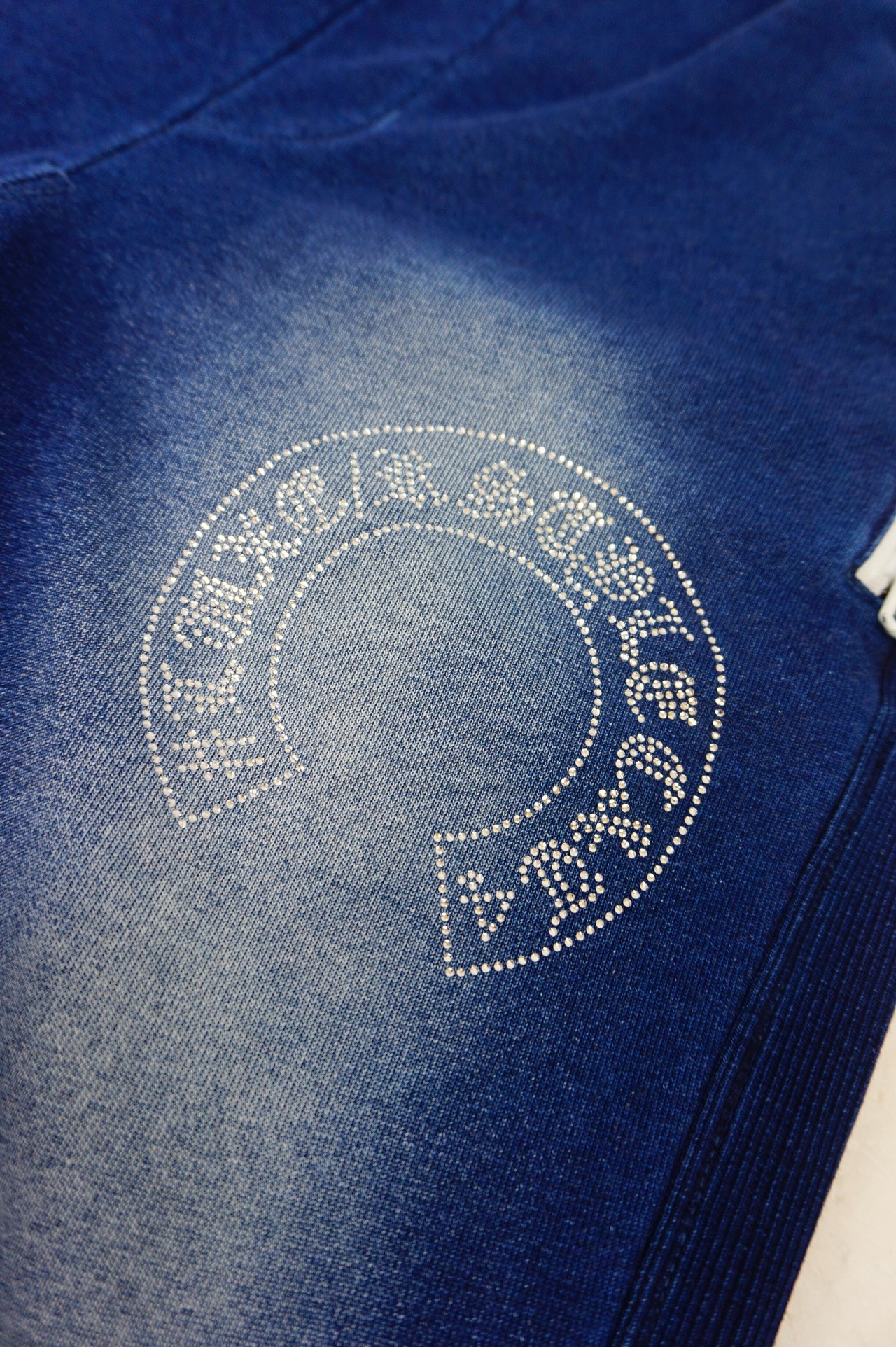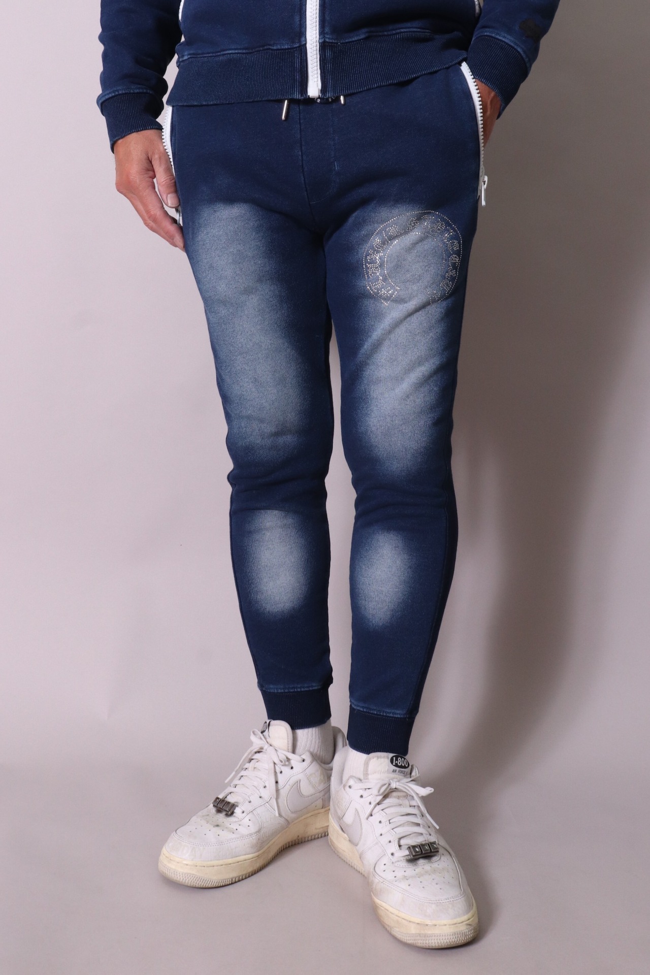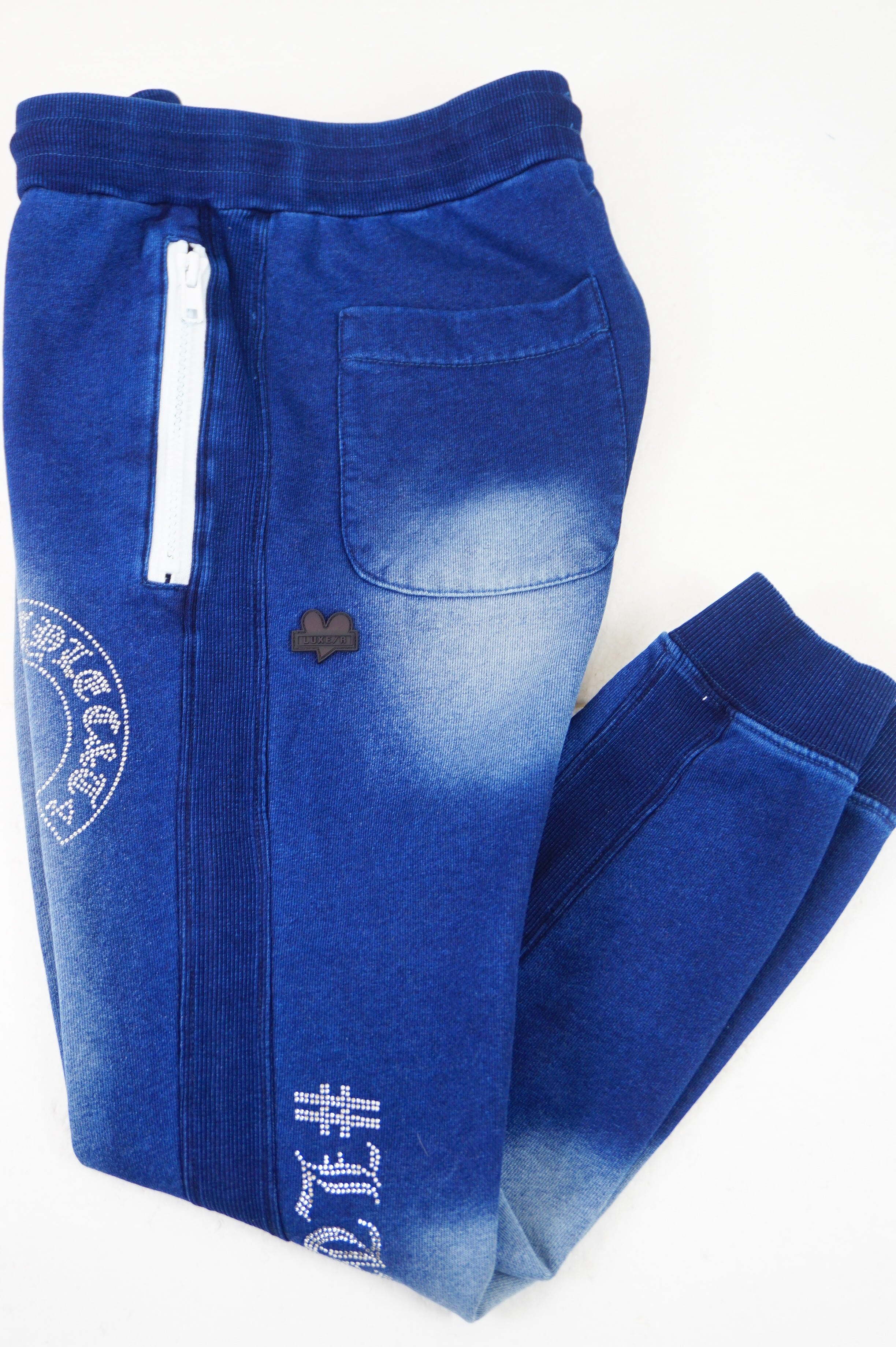 【LUXE/R】(46232) カットデニム裏毛生地 ラインストーン貼り付け刺繡パンツ