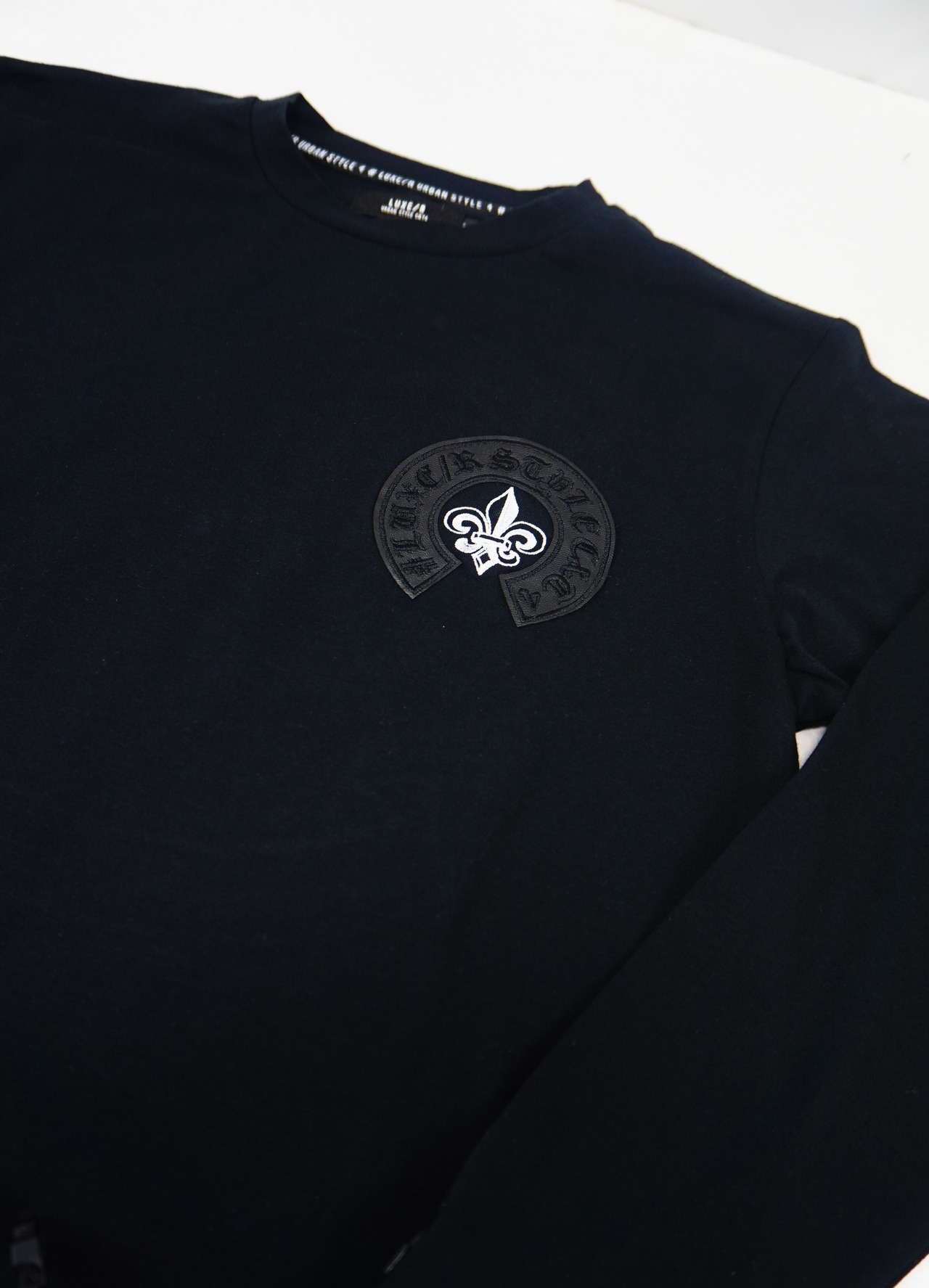 ロゴ柄をPUで貼り付けした、新しいアイテムです、、ハイブランドでよく扱われるロゴを、今回はPU貼り付けという立体的になるような貼り付けという技法で大人可愛いTシャツにしました!シックでワンポイントが可愛いロングTシャツです!やや細身な感じです!裏返してネットに入れて優しく洗濯して下さいね!