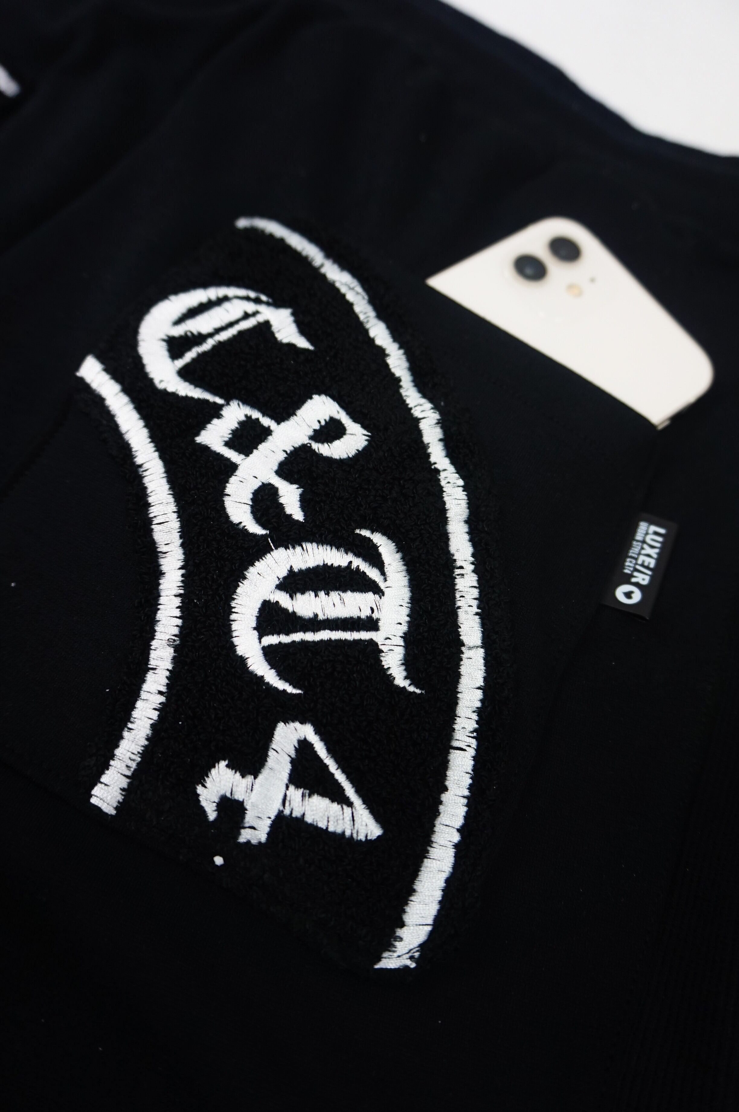 【LUXE/R】(46214)ストレッチポンチジャージ生地 サガラ刺繡ワッペン貼り付け