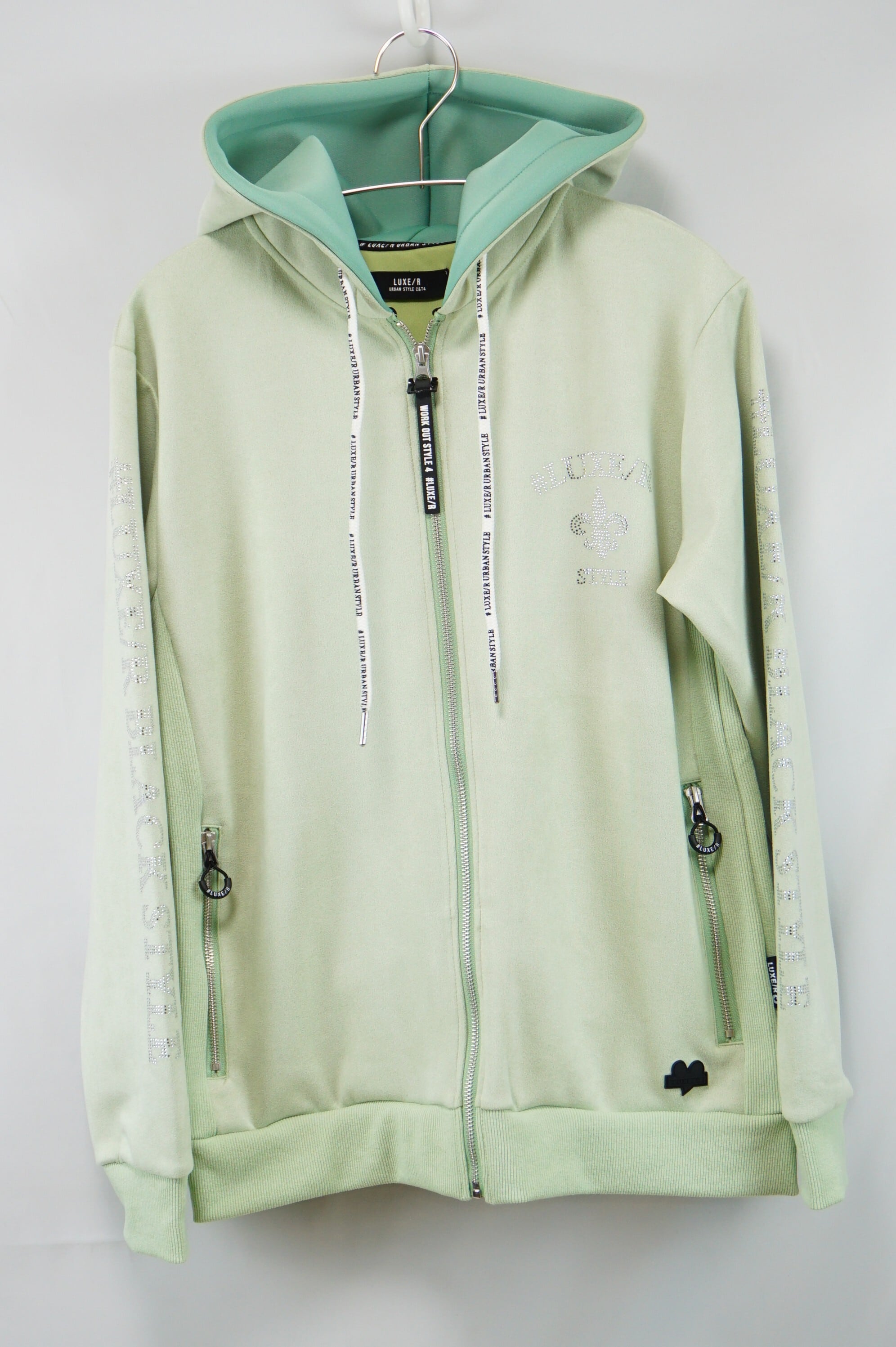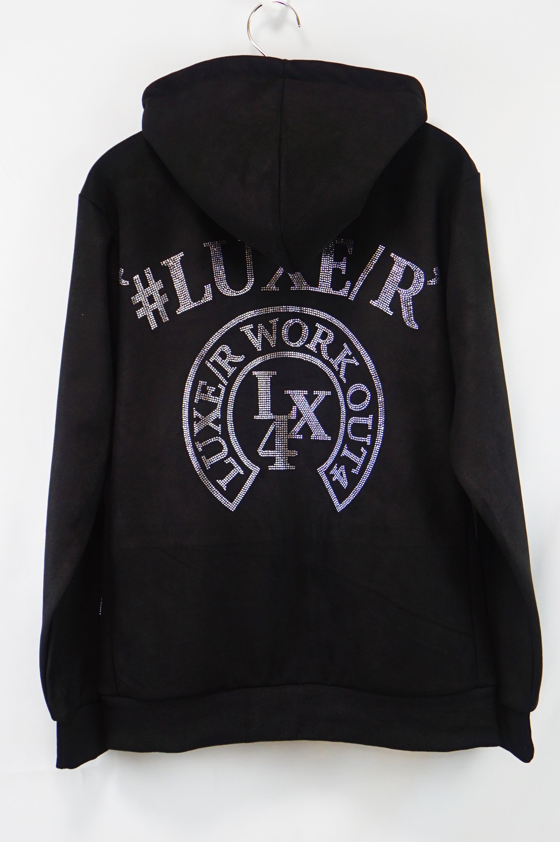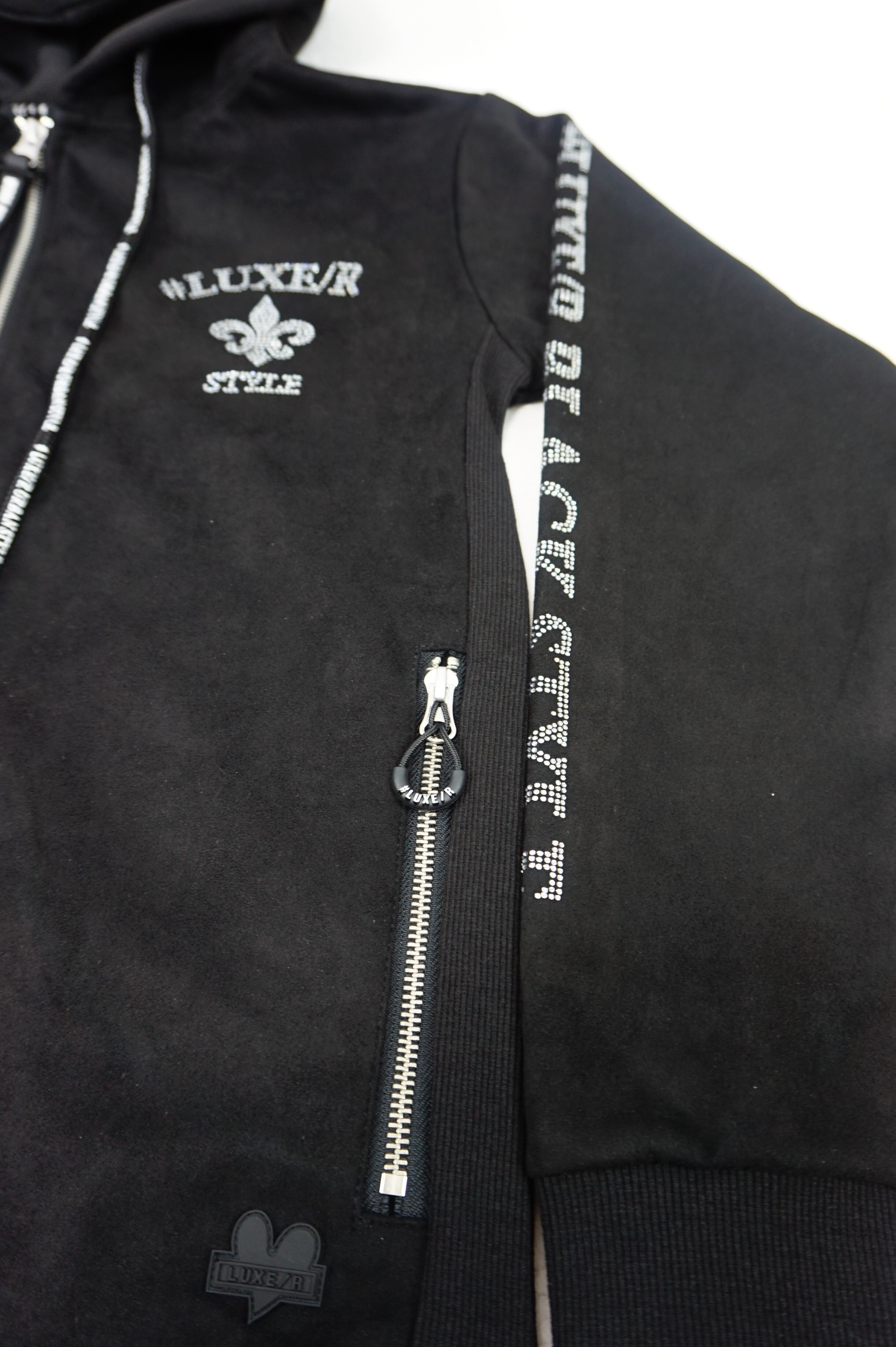 【LUXE/R】(46240)ストレッチポリスエード生地ラインストーン貼り付けZIPパーカー