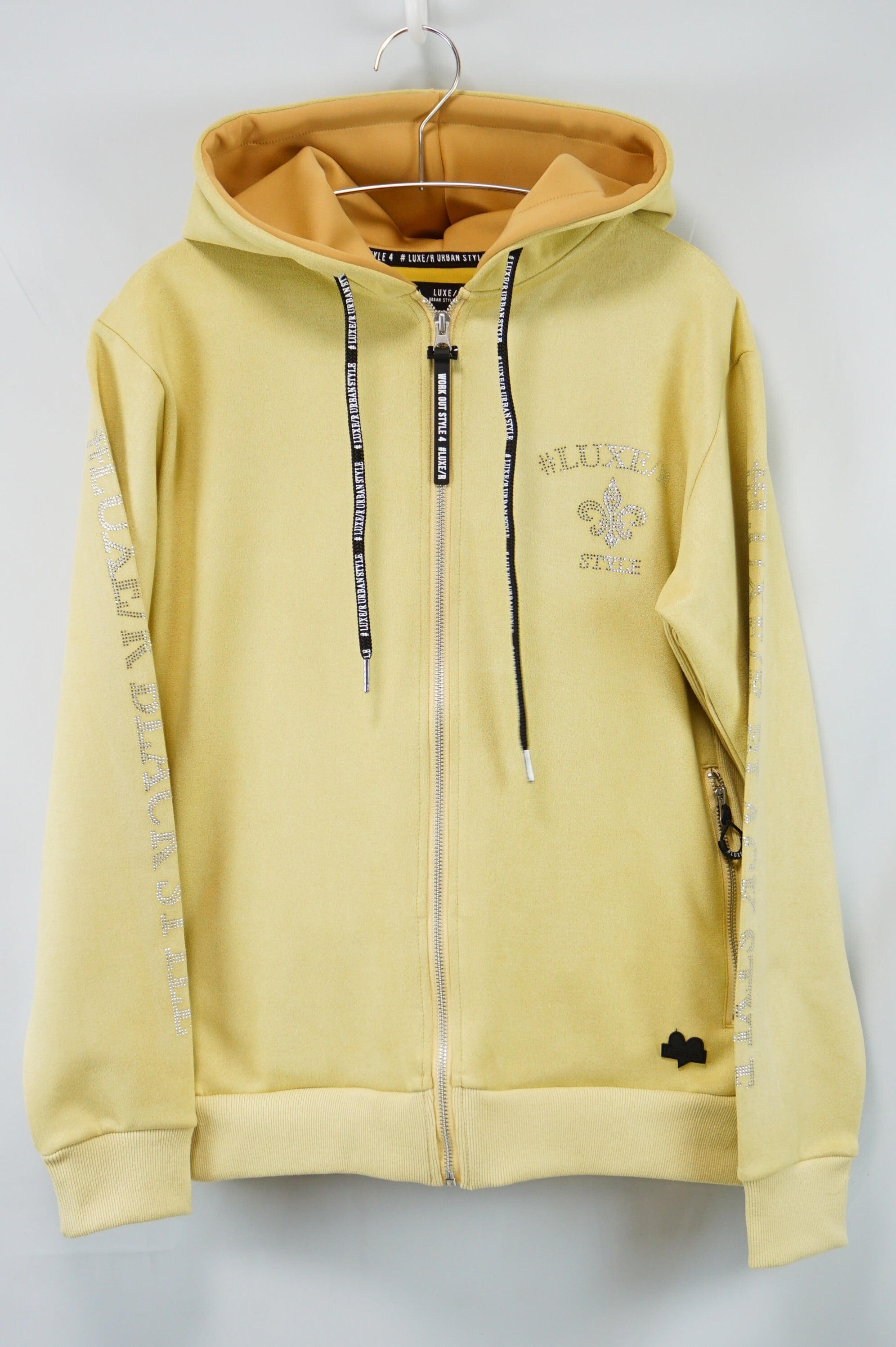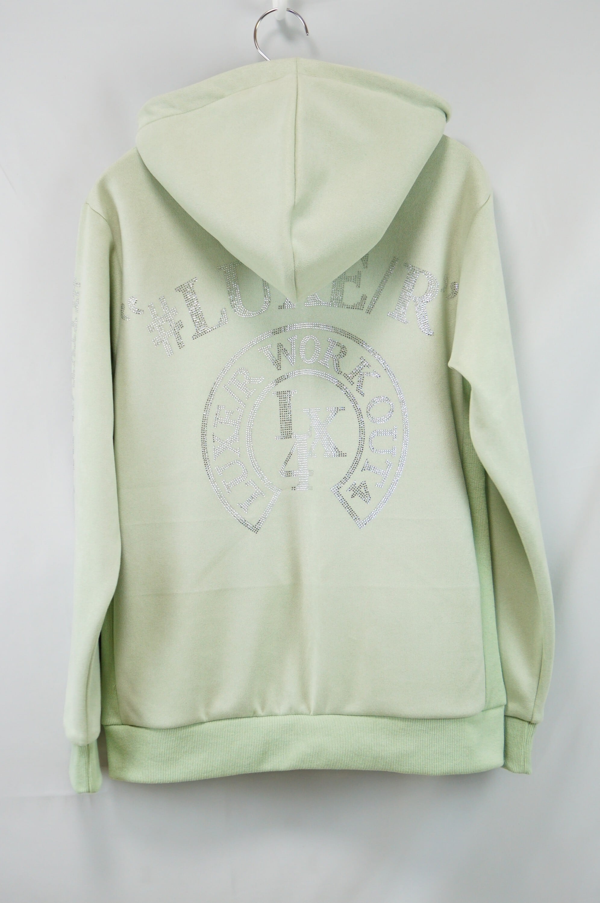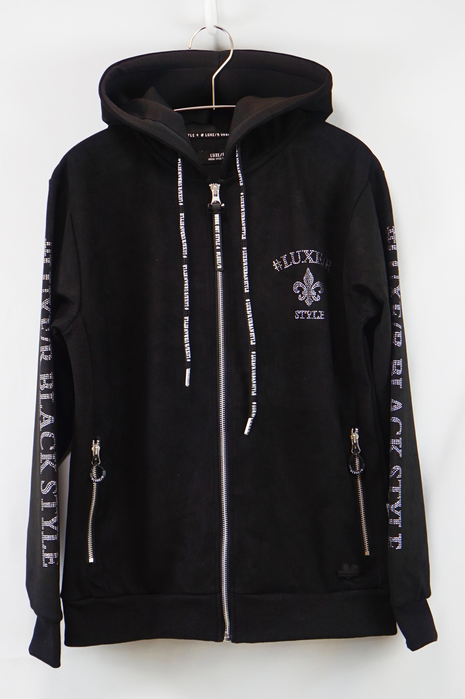 【LUXE/R】(46240)ストレッチポリスエード生地ラインストーン貼り付けZIPパーカー