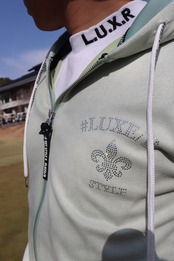 今流行りのポリスエード素材ジャージに似ている柔らかい柔軟な素材です!フード、袖、裾にはロゴジャガード織してあります、シックでスポーティな商品です。ジョギング、サッカー、ジムなどあらゆるスポーツに最適です。SET/UPでもご利用頂けます。