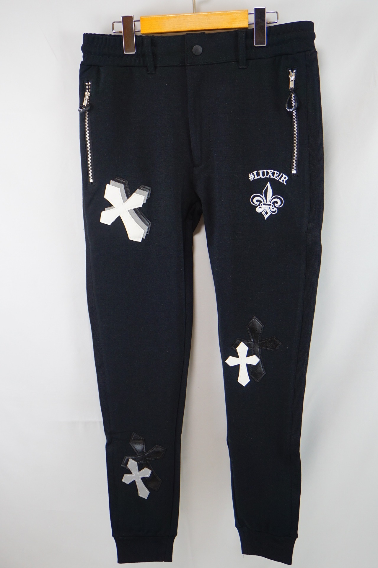 ストレッチが効いた柔軟な素材です。PU付きでゴージャス感あふれるカジュアルパンツはユニセックスで着れます!シックでカッコイイ商品です!やや細めです!