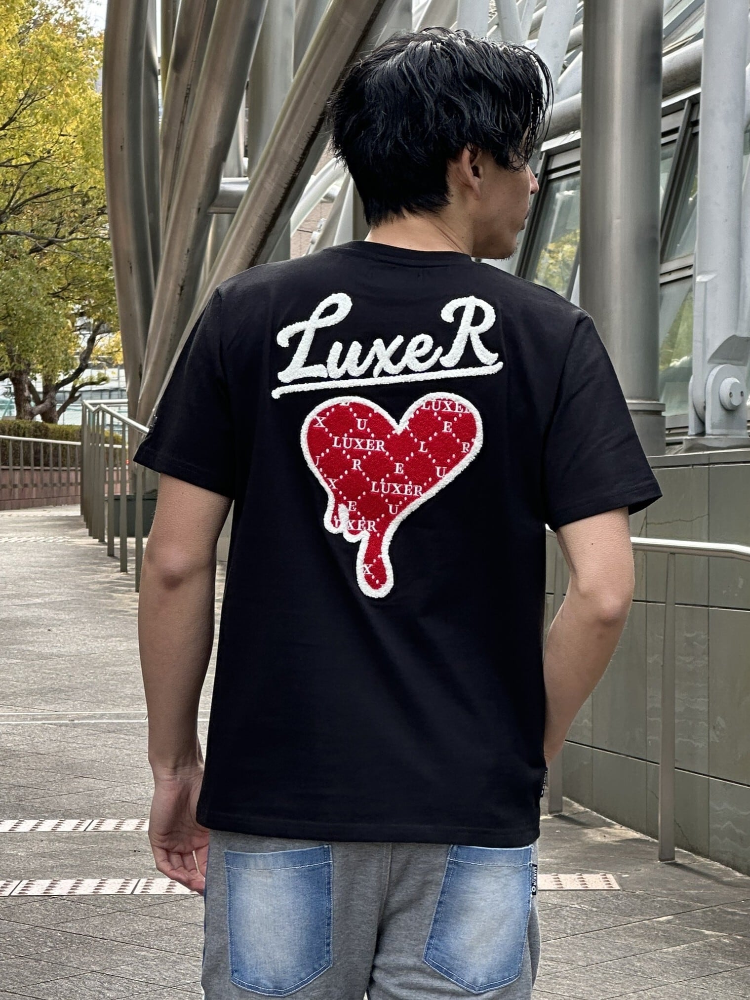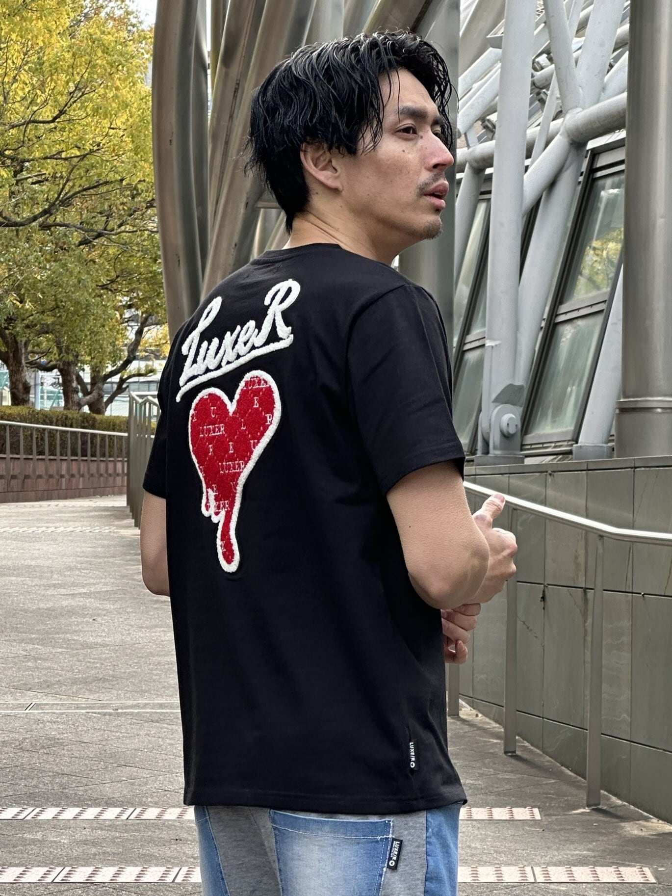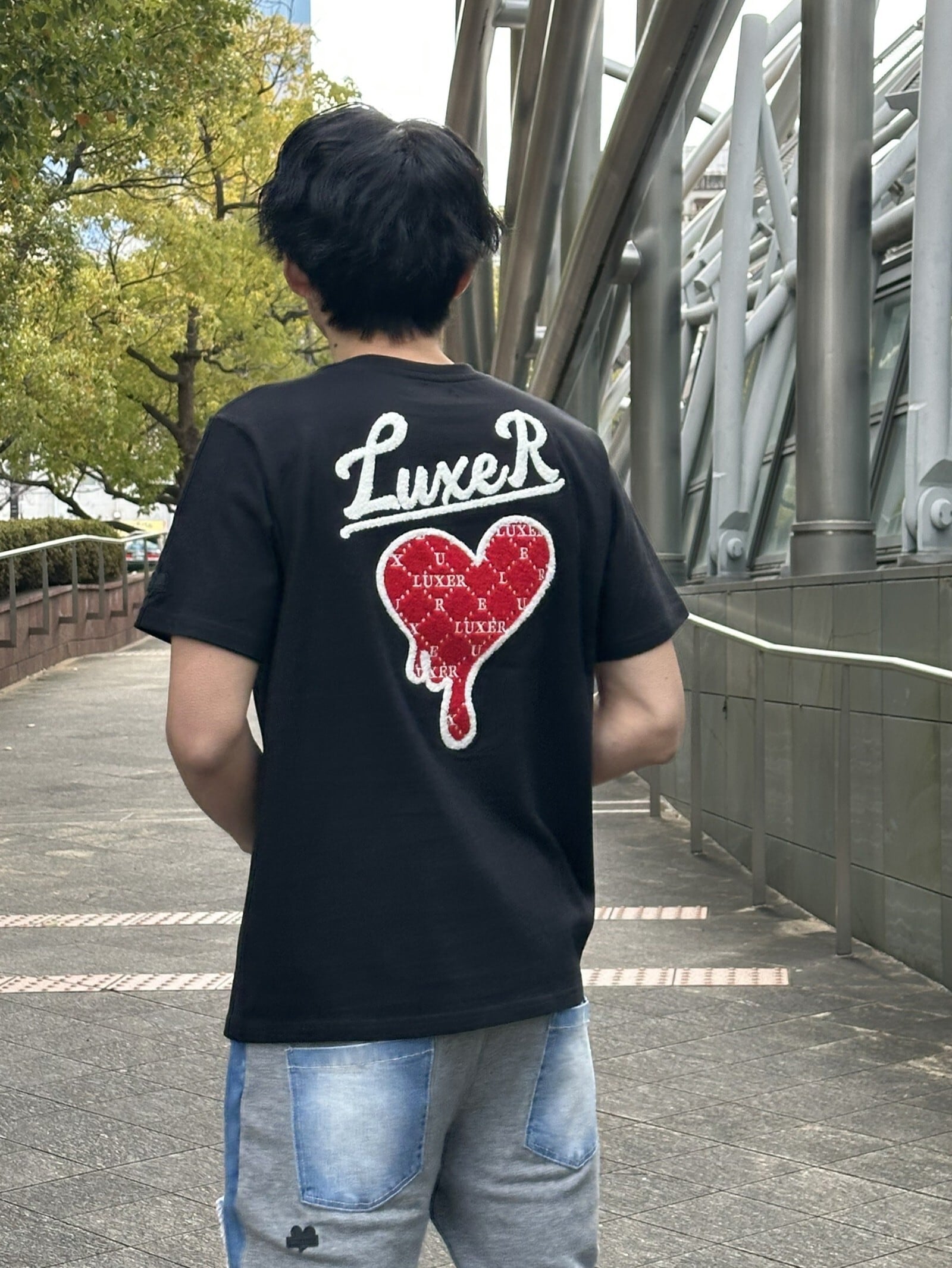 [LUXE/R】46270 ハート柄 サガラ刺繡ワッペン貼り付け Tシャツ