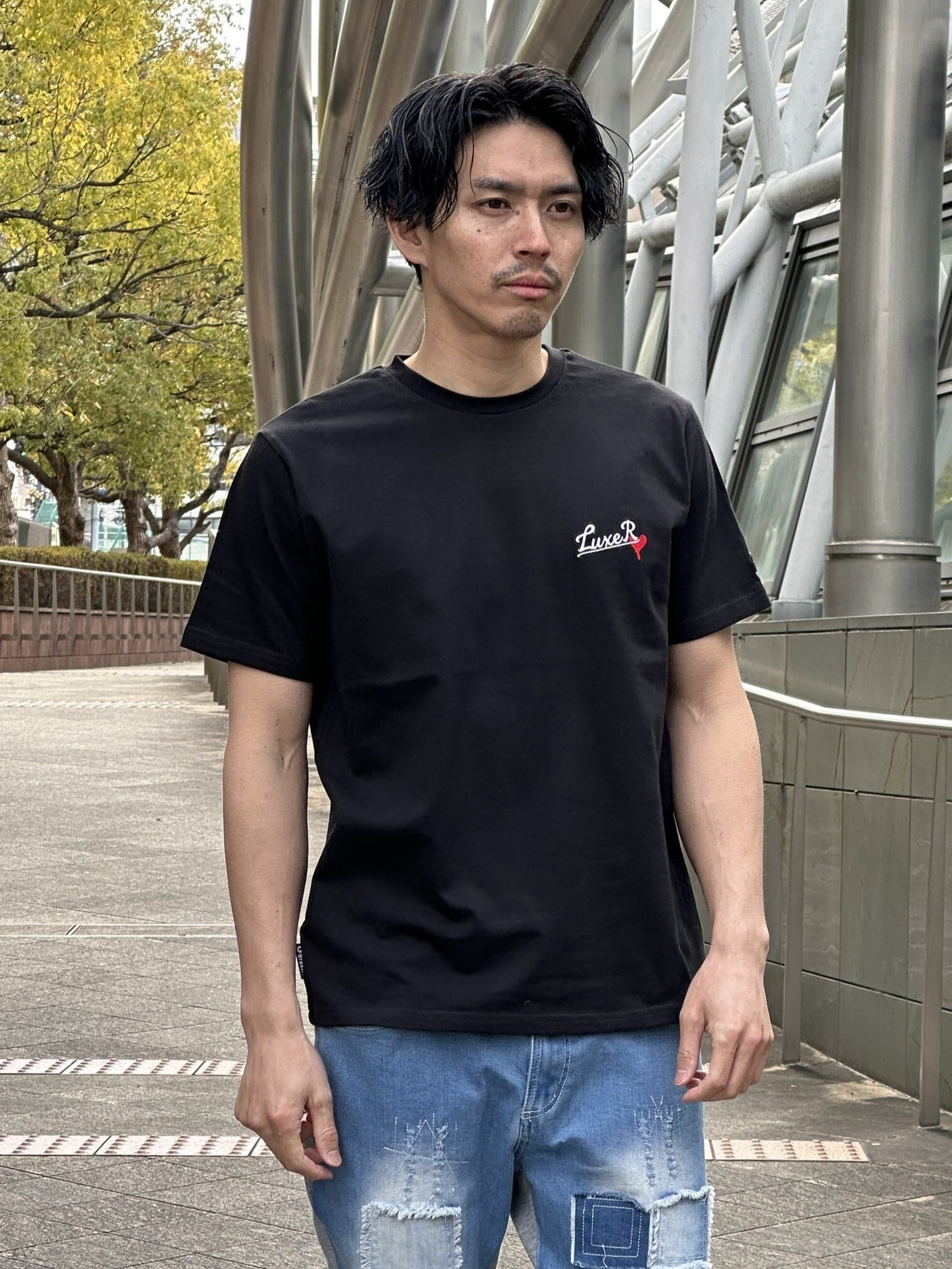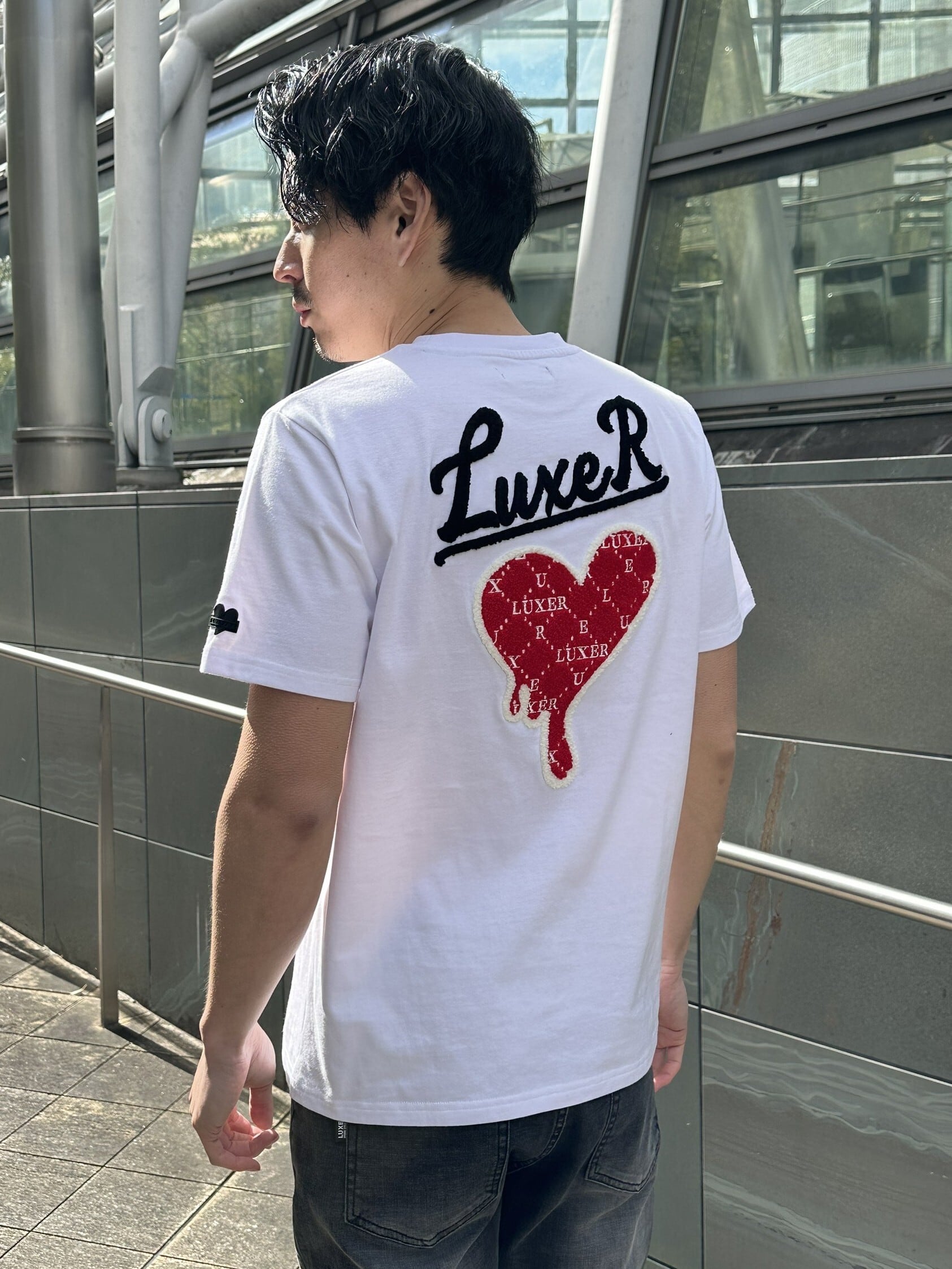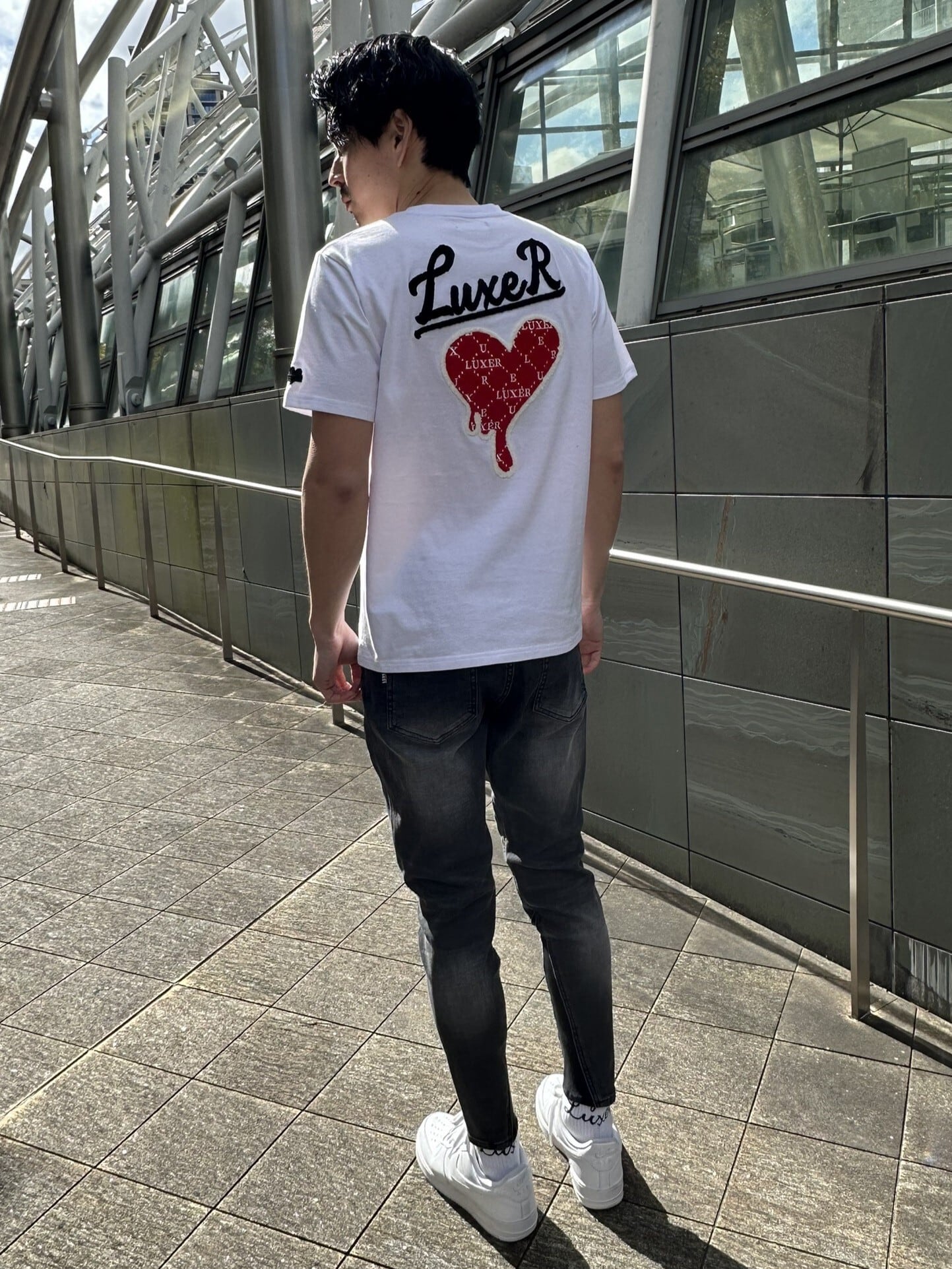 [LUXE/R】46270 ハート柄 サガラ刺繡ワッペン貼り付け Tシャツ