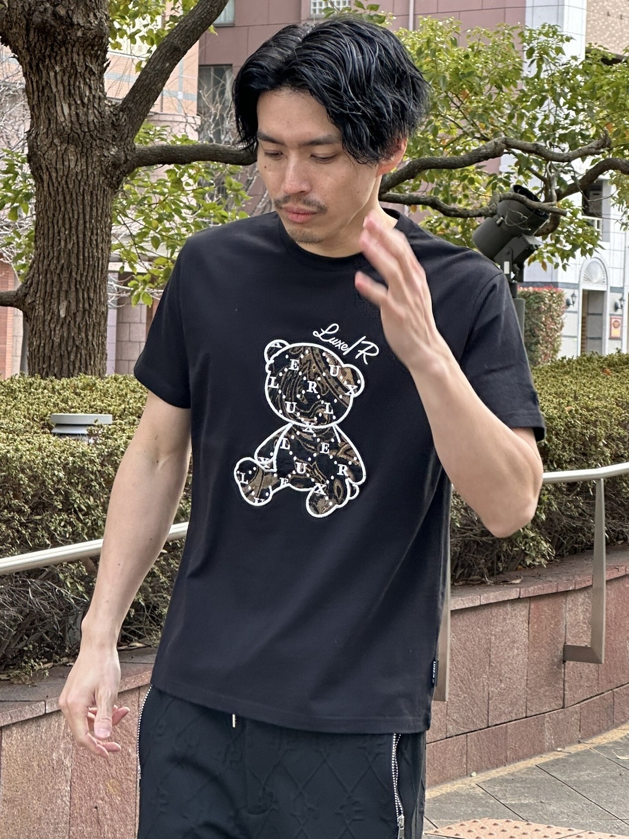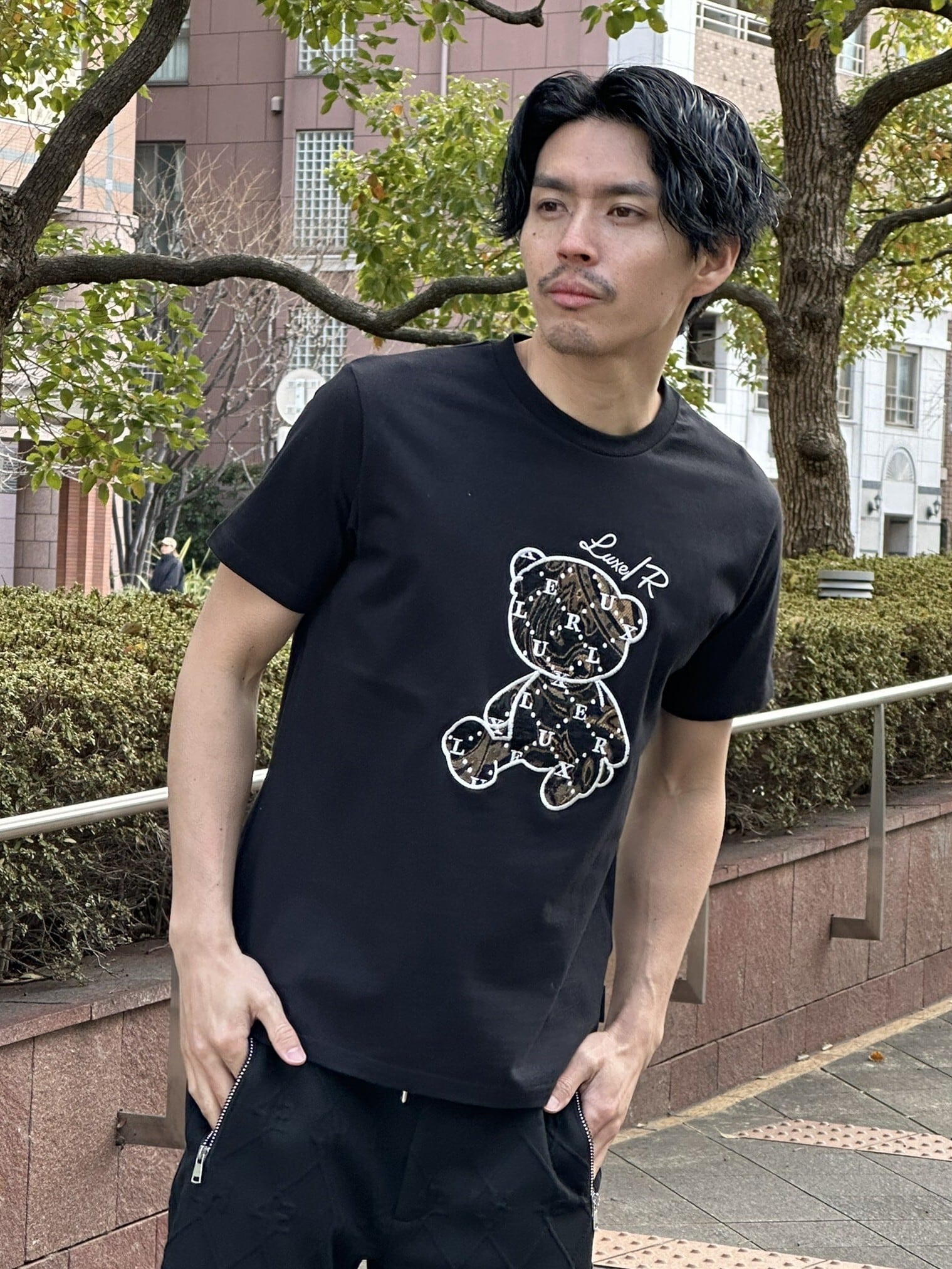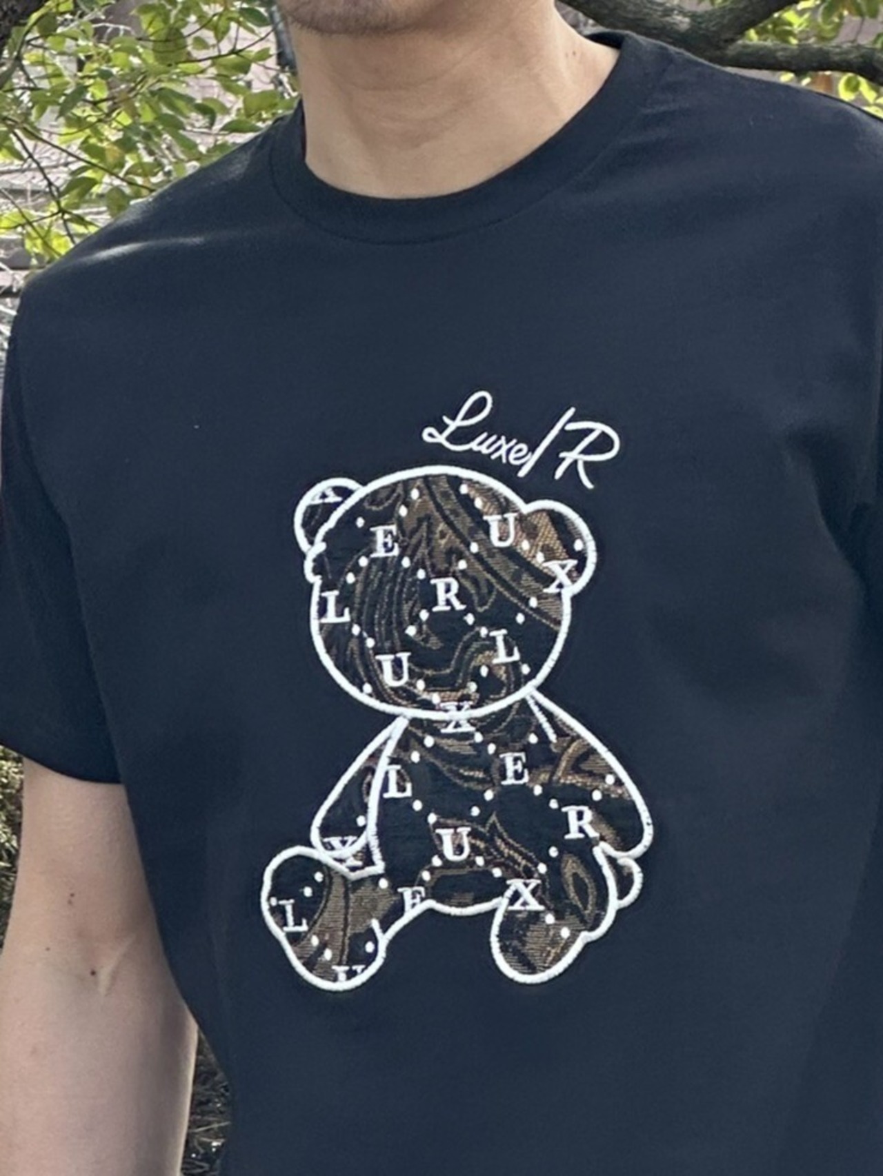 [LUXE/R】46274 ベアー柄 ジャガード貼り付け Tシャツ