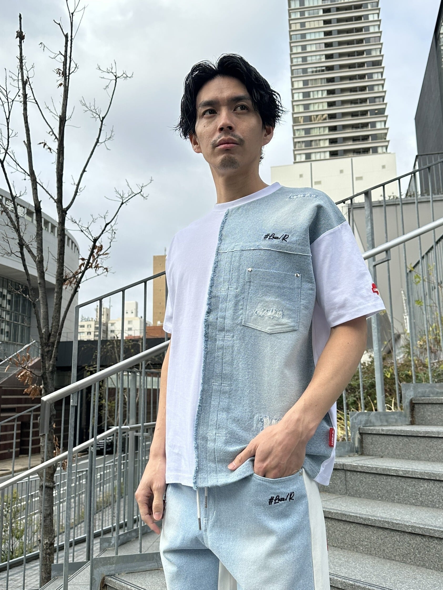 デニムと天竺を切り替えた新しいアイテムです、、ハイブランドでよく扱われる