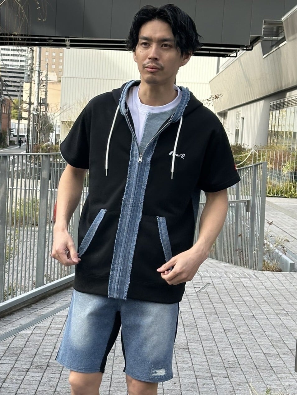 【LUXE/R】46281(ユニセックス商品)デニム切り替えZIPUPパーカ