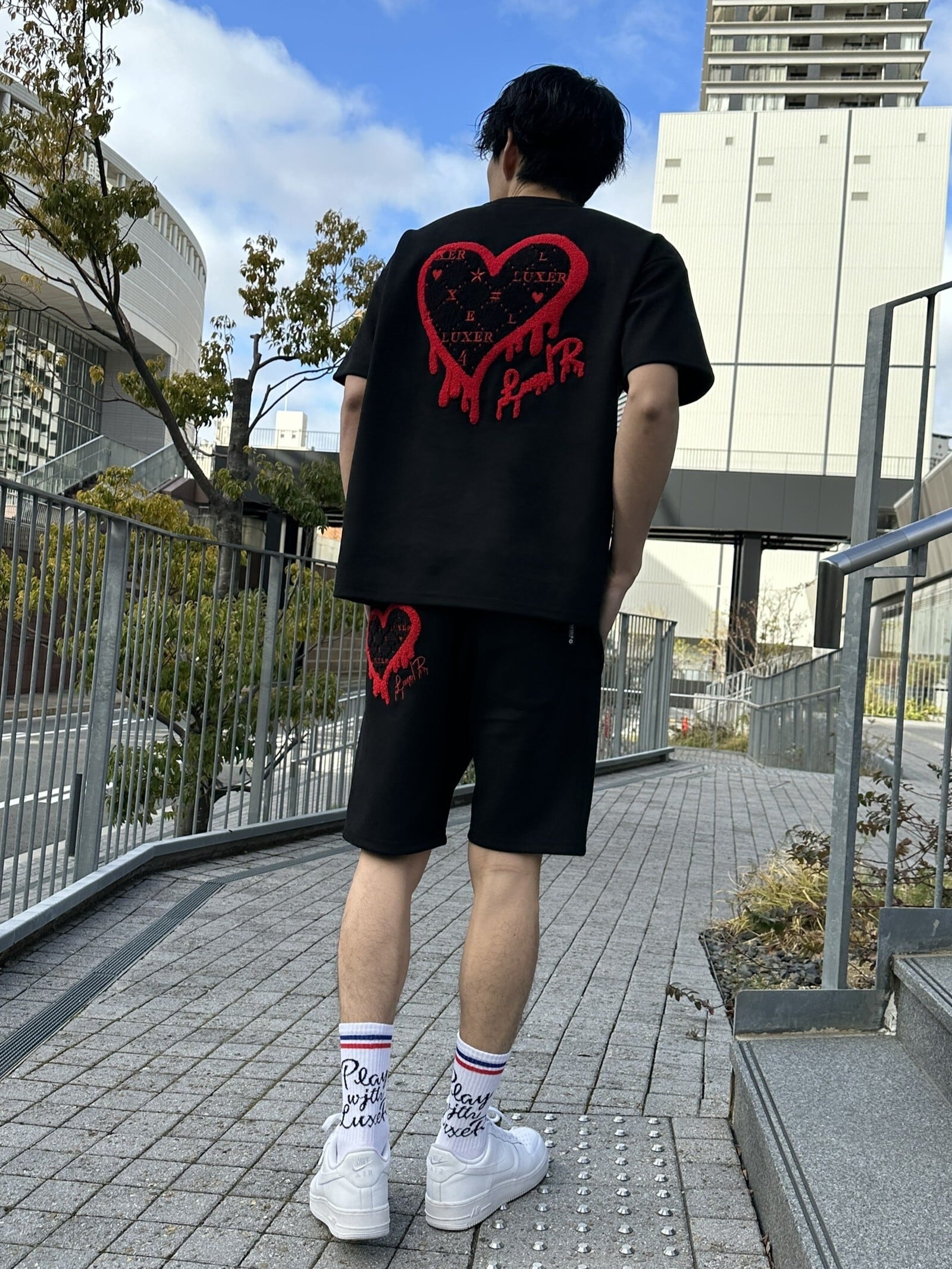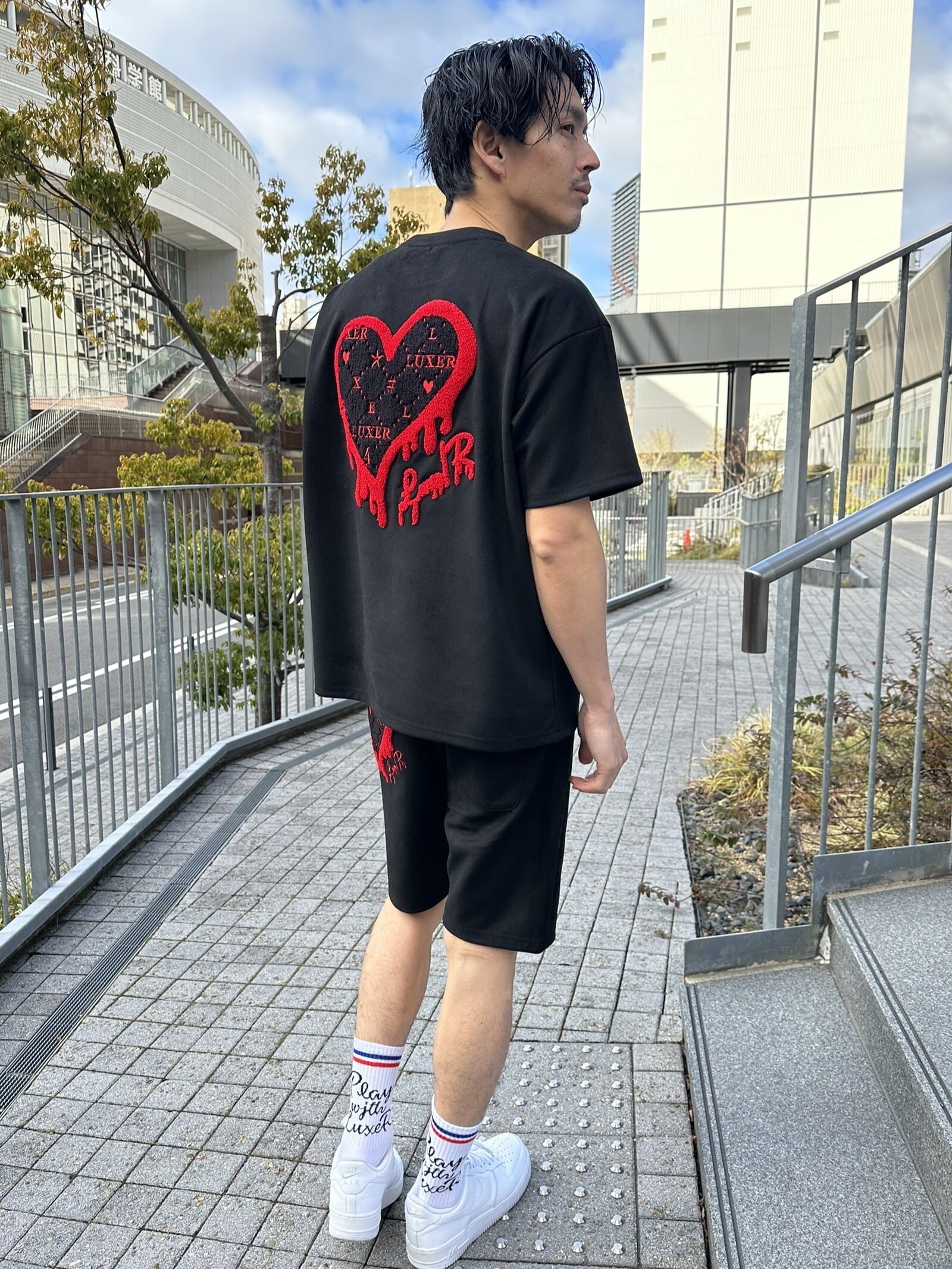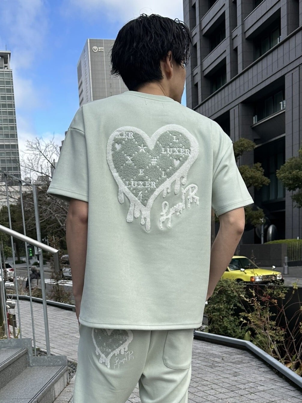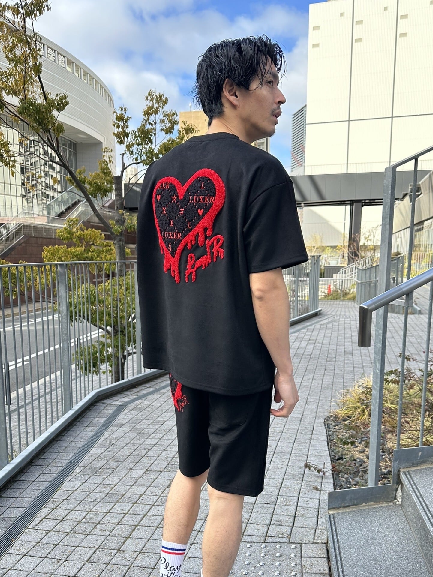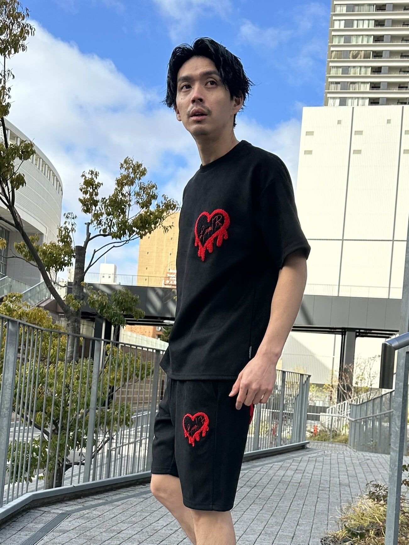 【LUXE/R】46314(ユニセックス商品)サマースエード素材 サガラハート柄刺繡