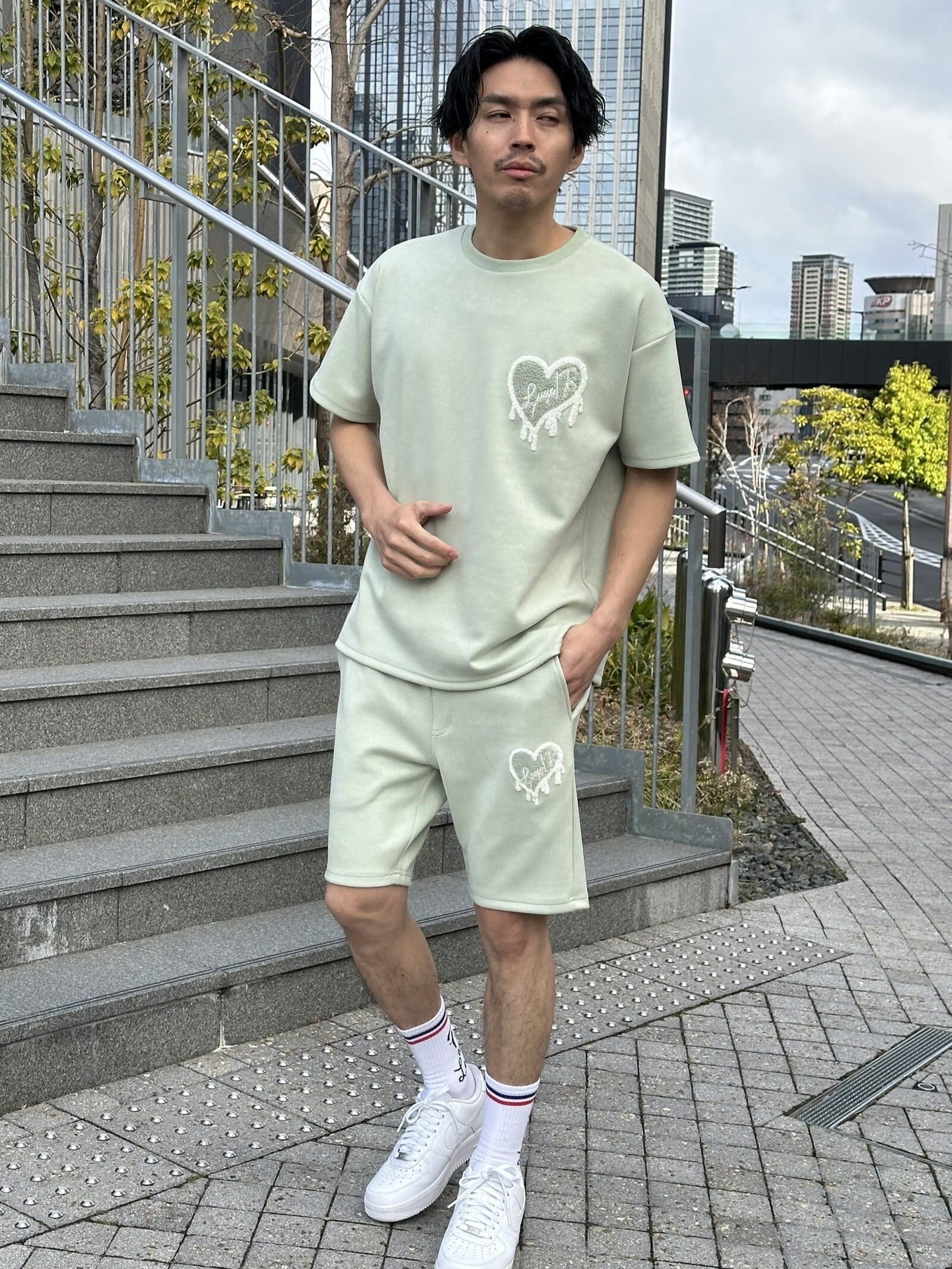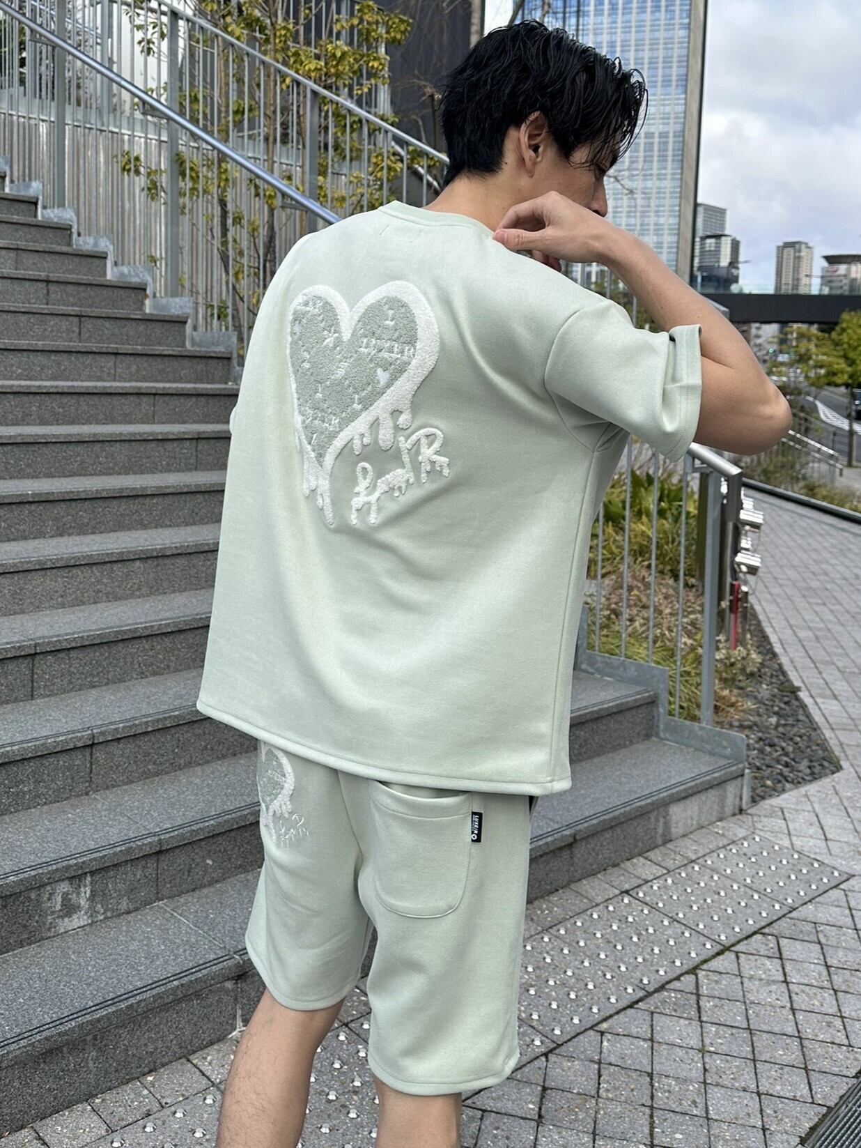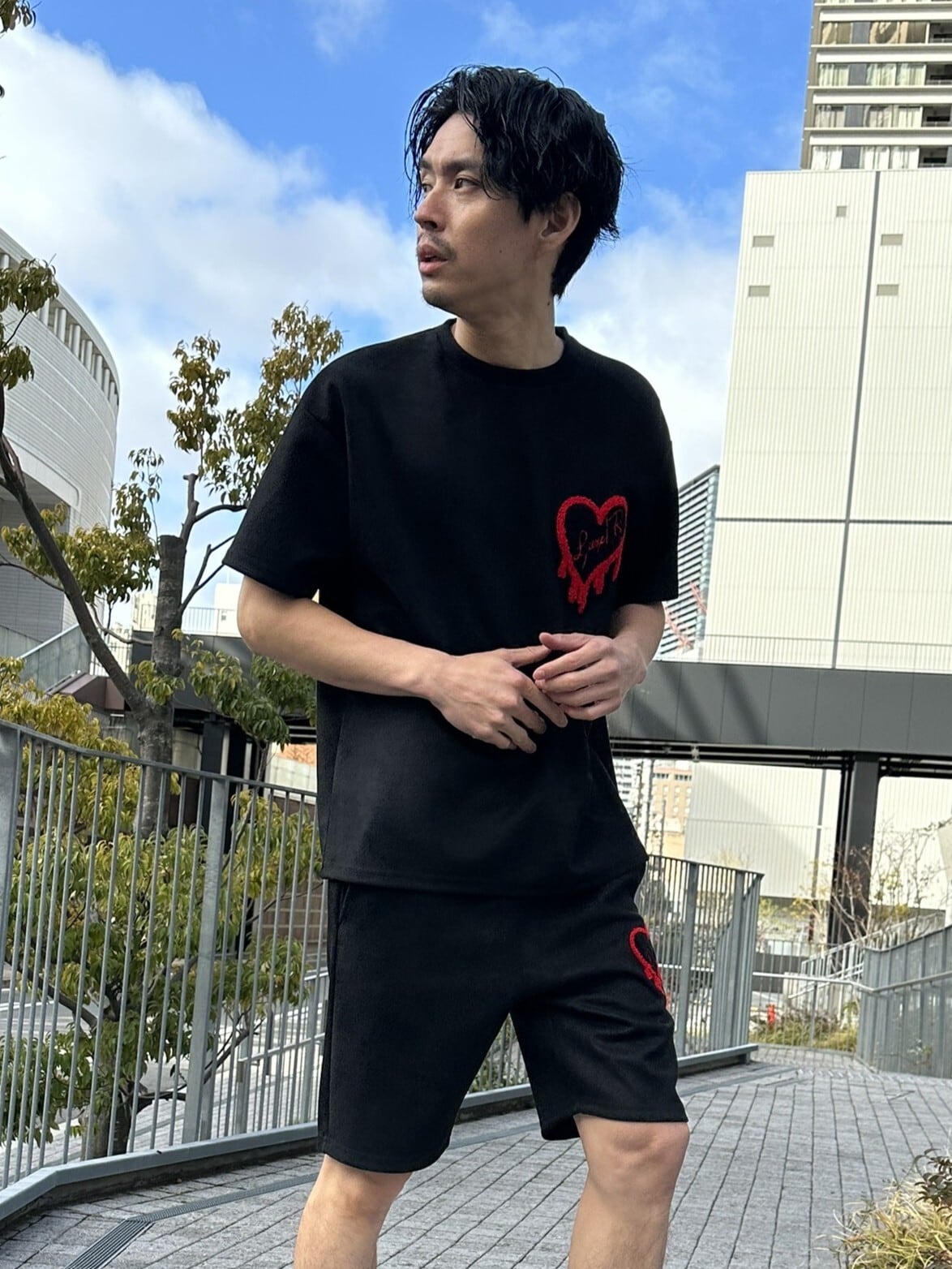 ポサマースエード生地を使い肌に気持ちが良い感覚と収縮性抜群でノンストレスです!ハートをカタドリサガラ刺繡で付けロゴをかたどったハイブランドにも良くあるアイテムになりました。SETUPにもなります!