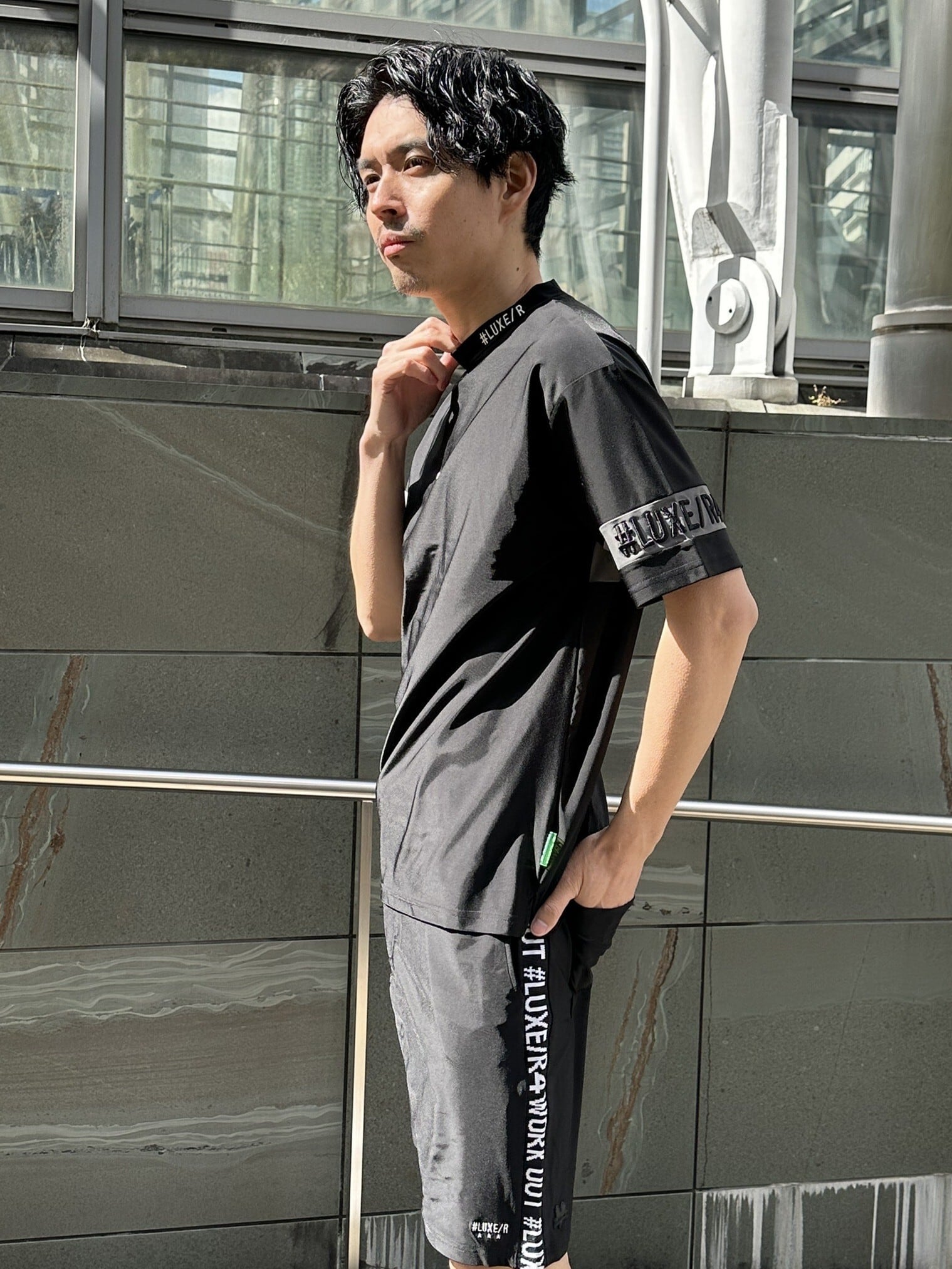 GOLFにも着用頂けます。LUXERな素材感にあっさりバックプリントでセレブ感満載ですね!今流行りのデザインです。