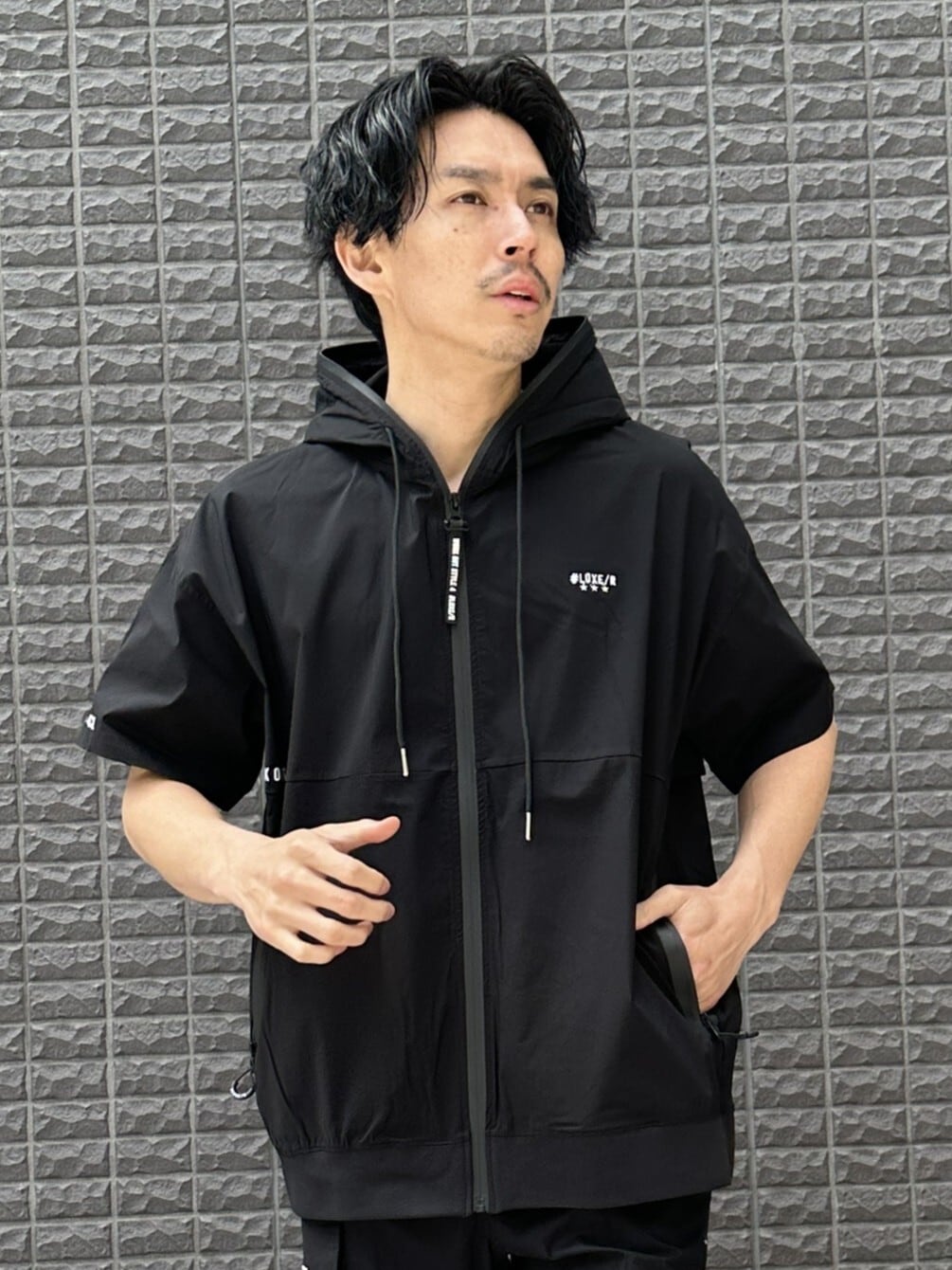 【LUXE/R】(46302)ストレッチナイロンZIPUP パーカー切り替え