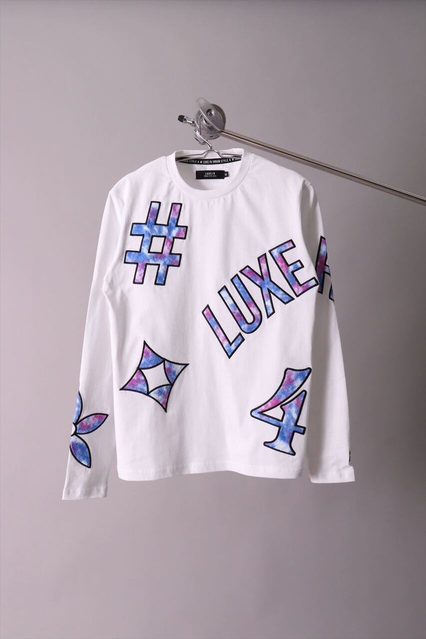 【LUXE/R】モノグラム ビッグ ロゴ タイダイ ワッペン 長袖 Tシャツ(45198)