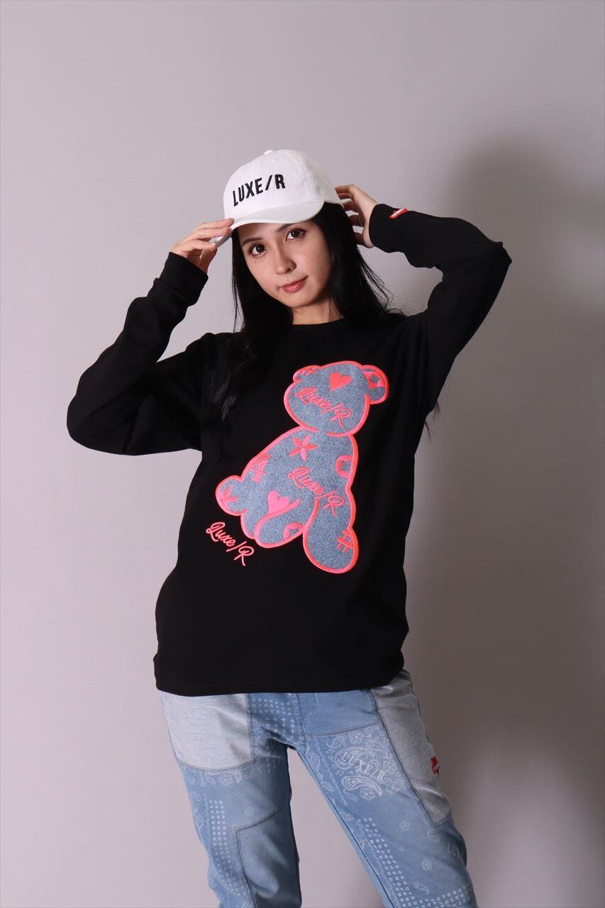 【LUXE/R】モノグラム くまさん ワッペン プリント 長袖 Tシャツ(45283)