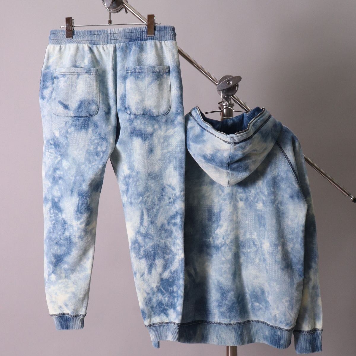 【LUXE/R】インディゴ 裏毛 総柄 ジップアップ パーカー(45298)