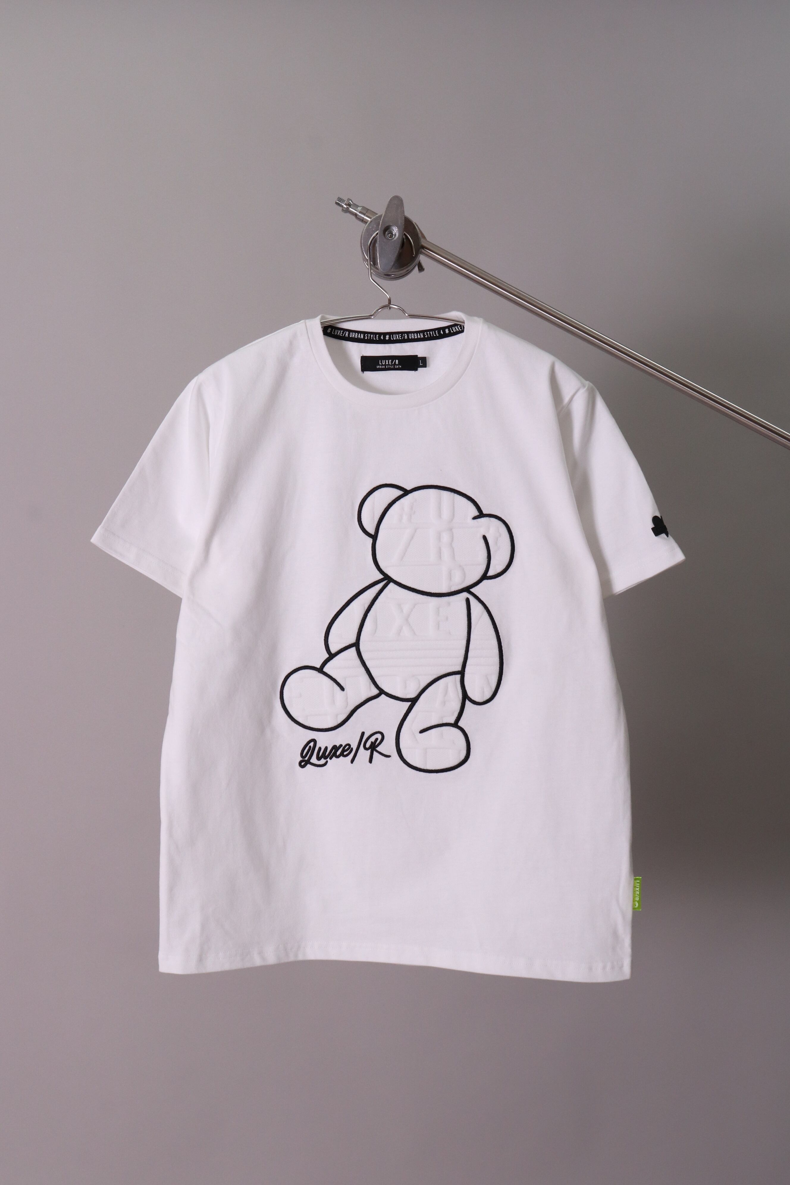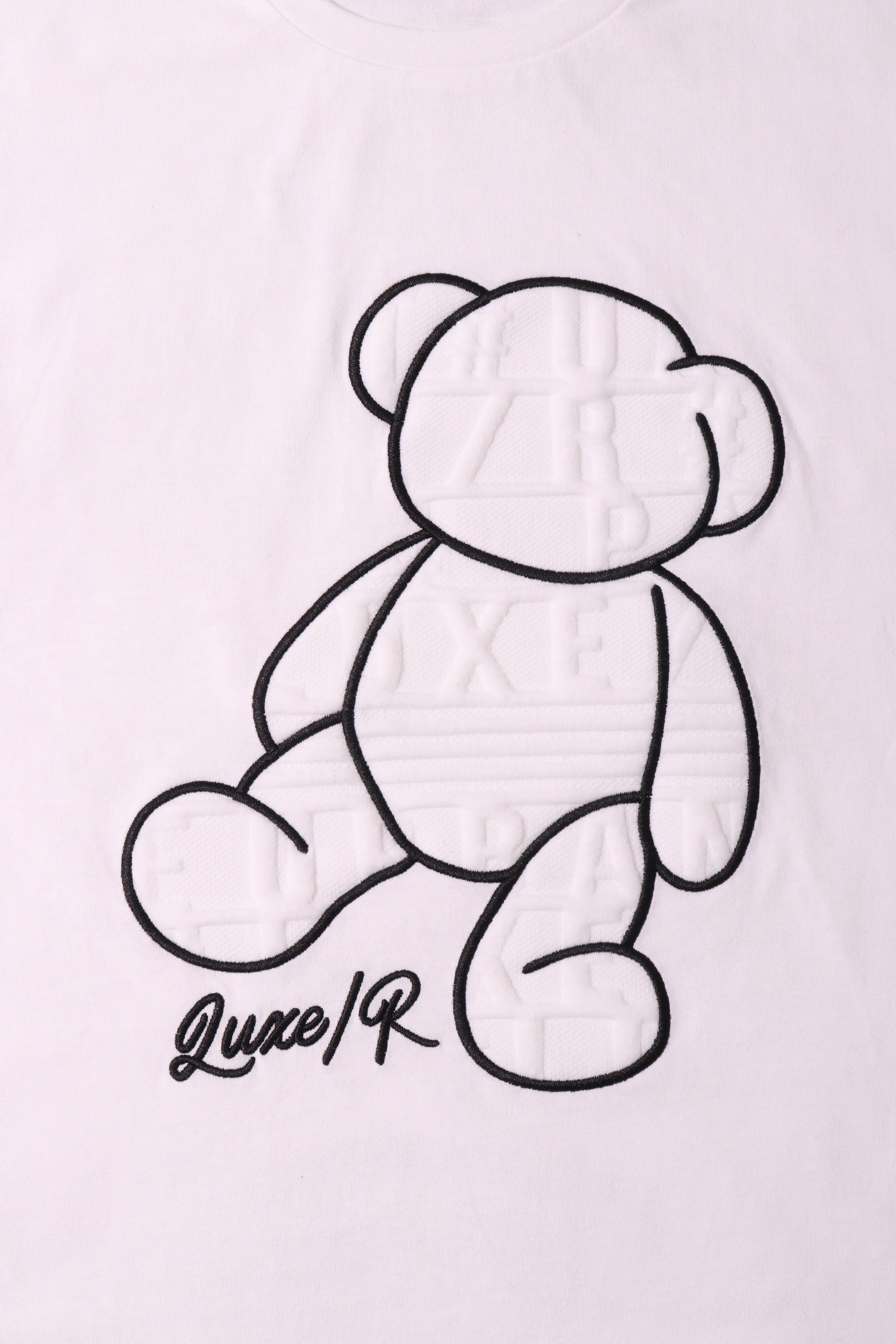 【LUXE/R】綿100%天竺T 異素材貼り付けBEAR柄Tシャツ(45369)
