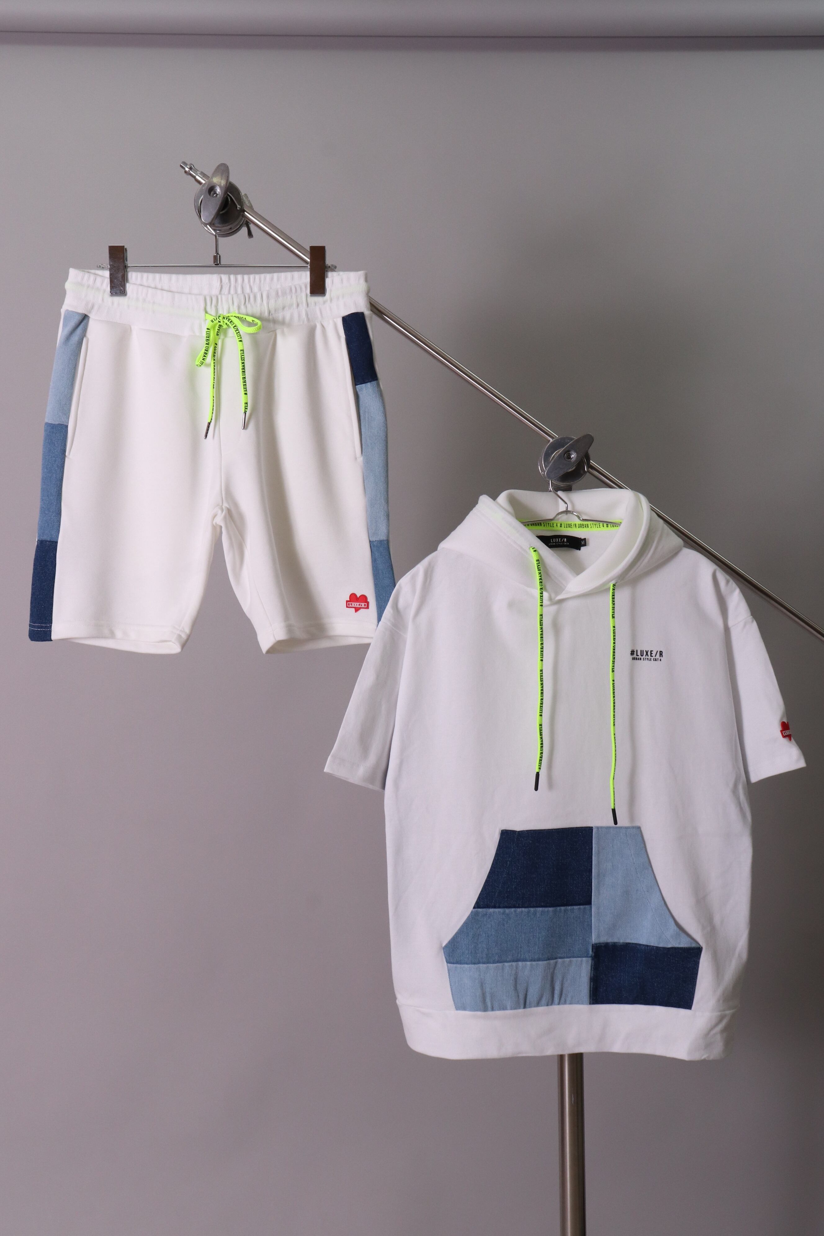 今流行りのデニム生地を切り替えフロントサイドとバックで使用しました!カジュアルショートパンツはユニセックスで着れます!シックでかわいい商品です!やや細めです!