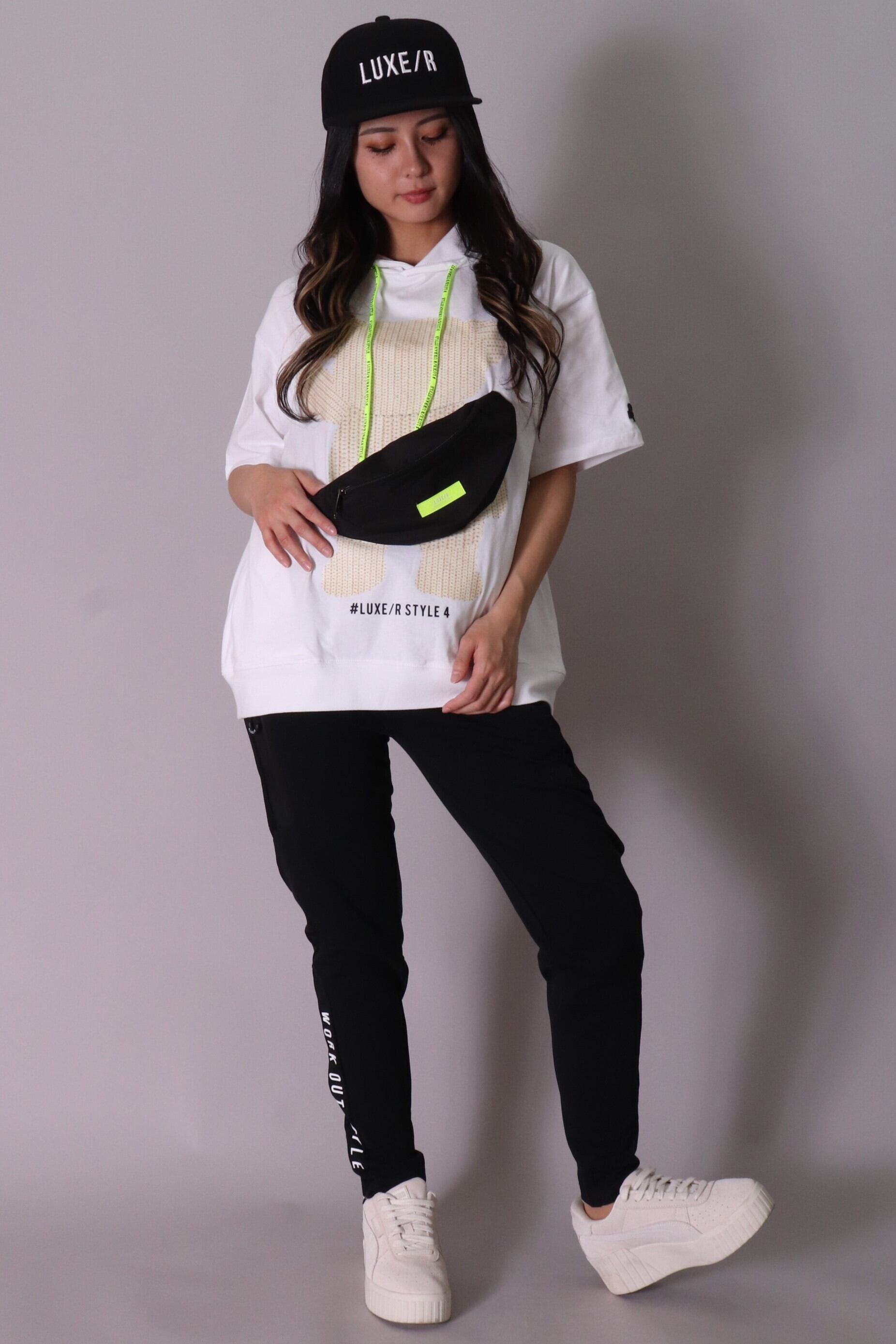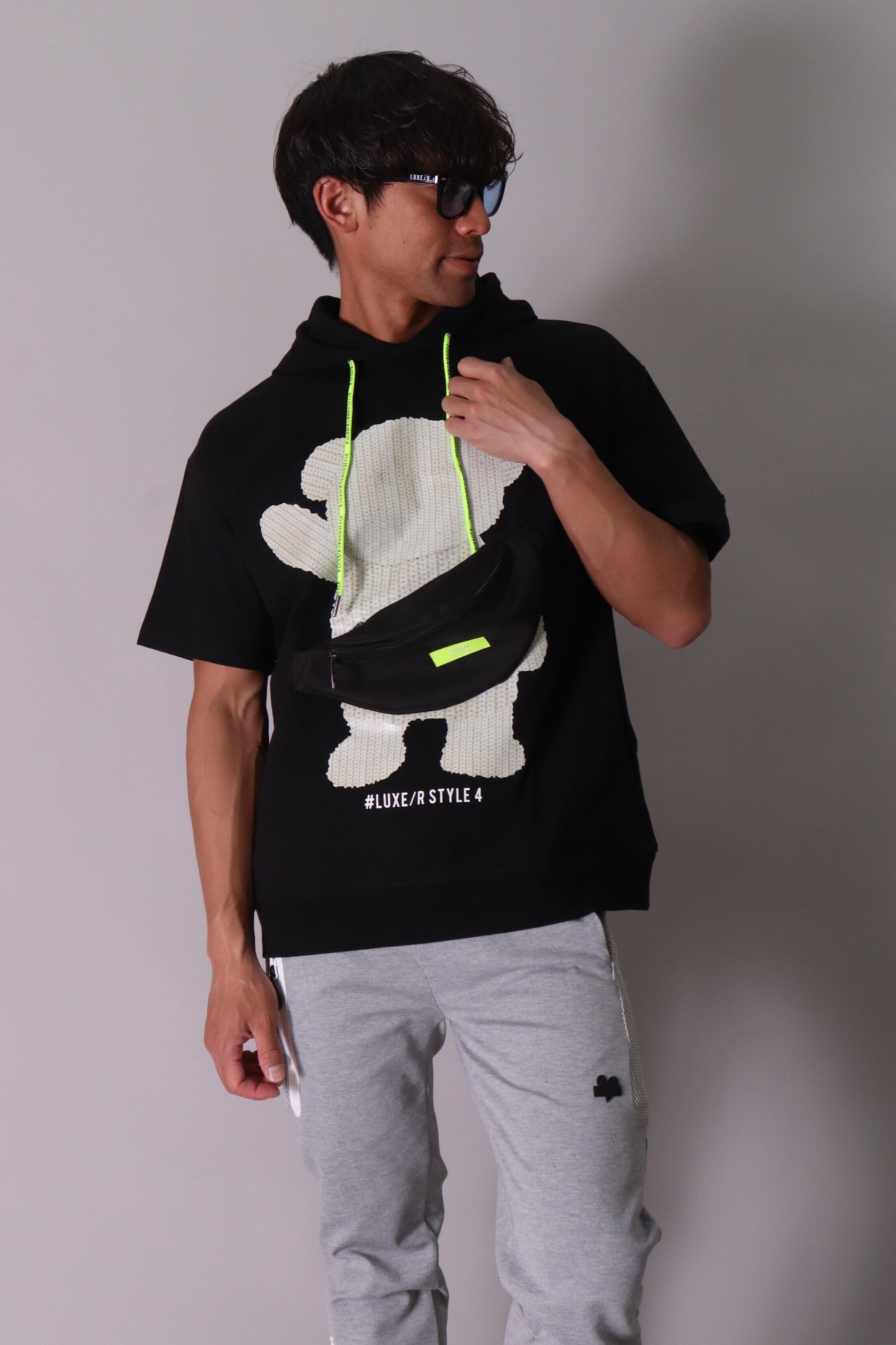 【LUXE/R】綿100%天竺T リアルBAG付きBEAR柄プリントプルパーカー(45411)