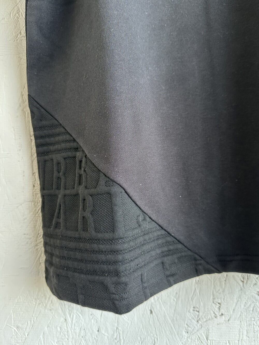 今流行りの膨れジャガード生地と裏毛を掛け合わせた切り替えになります、凸凹感のあるジャガード織が大人のTシャツという感じです!シックな商品です!やや細身な感じです。SET/UPでもご利用頂けます