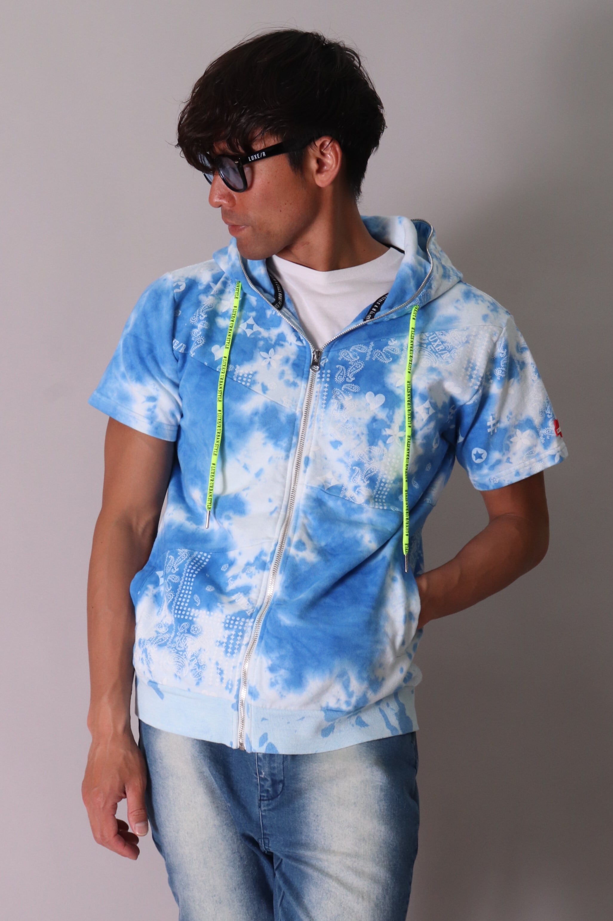 【LUXE/R】製品総柄ペイズリータイダイブリーチ加工ZIPUPパーカ(45421)