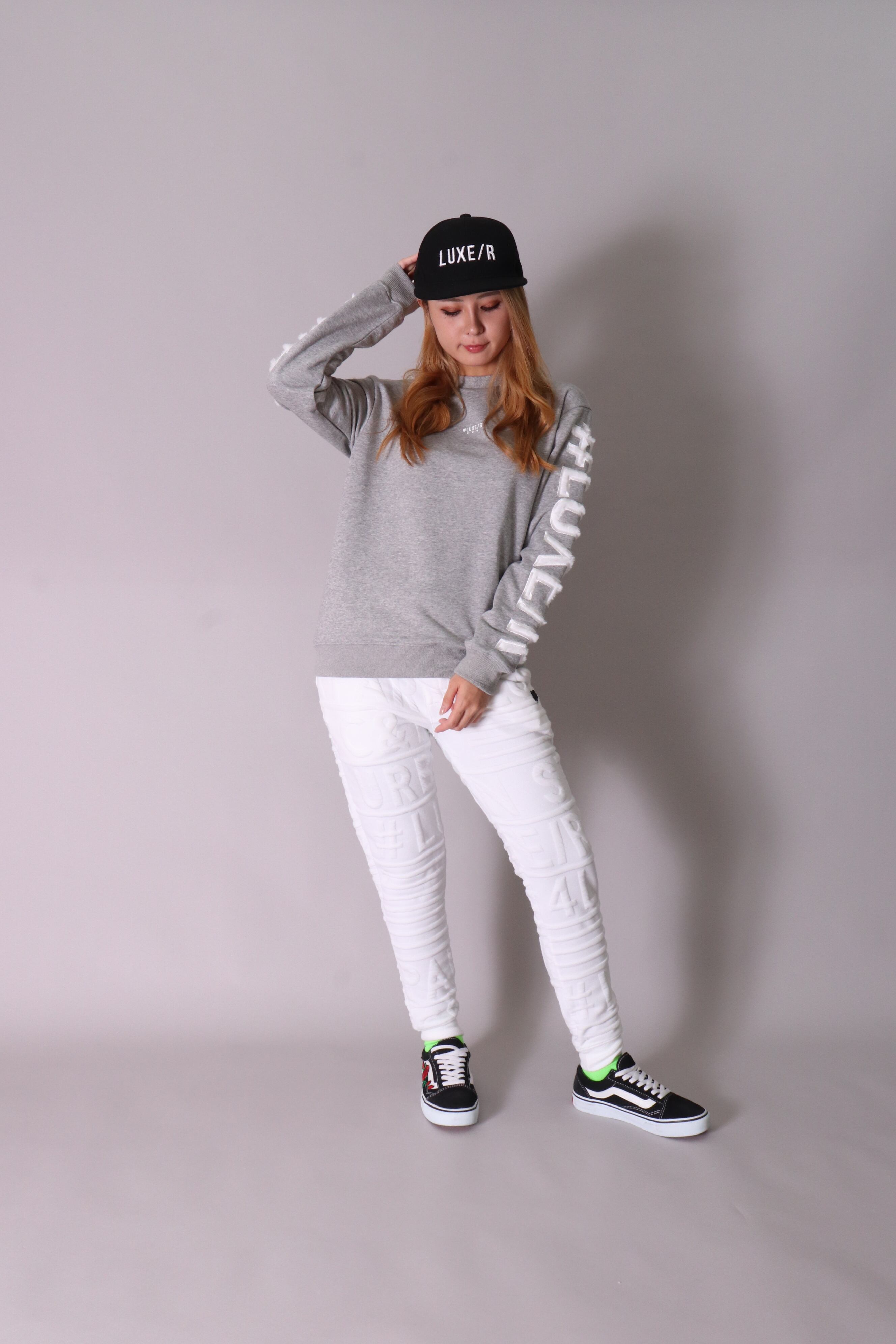 【LUXE/R(45479)裏毛スウェトクルー袖シャギーロゴ貼り付け
