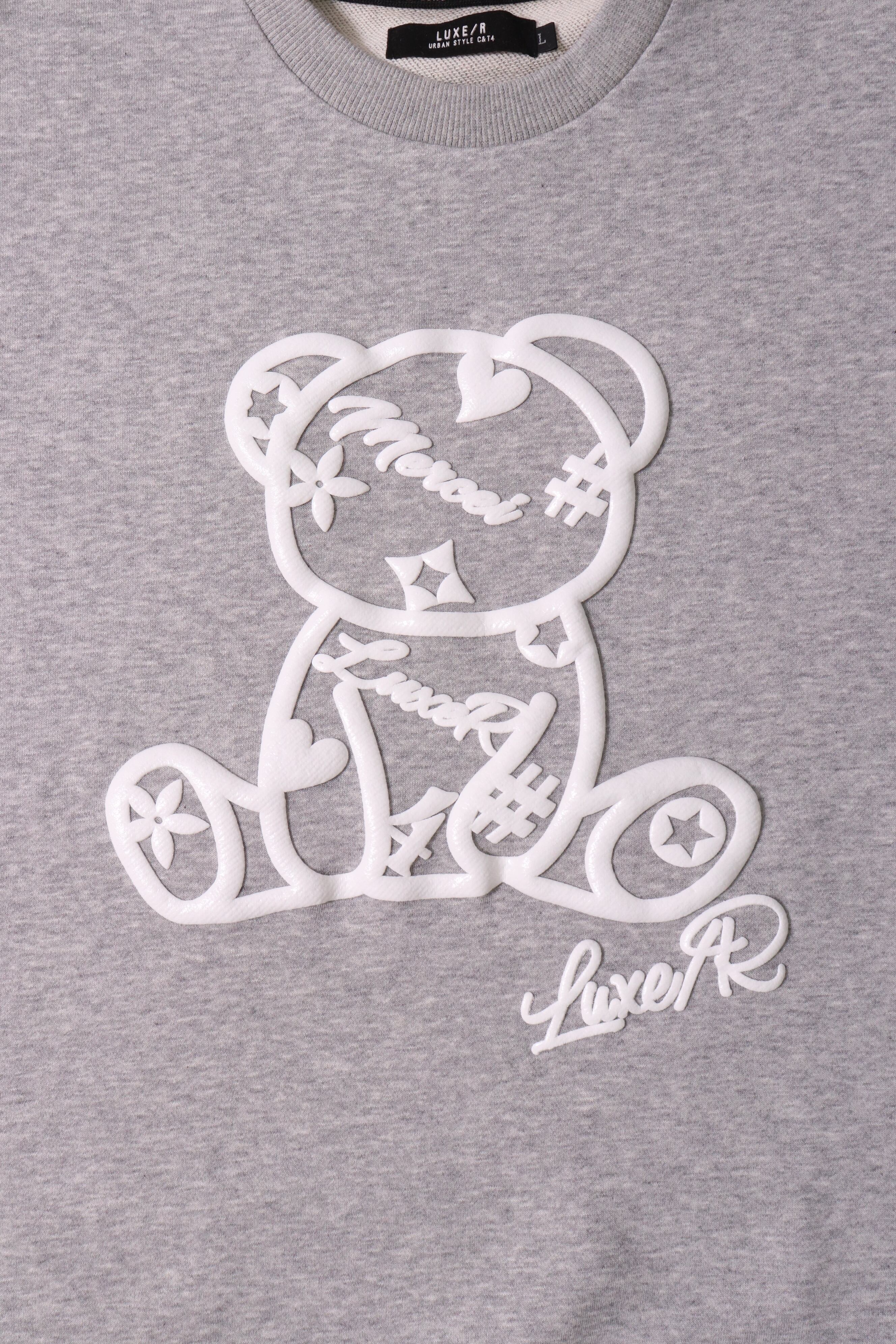 【LUXE/R(45481)裏毛スウェトクルー袖 発泡プリントBEAR!