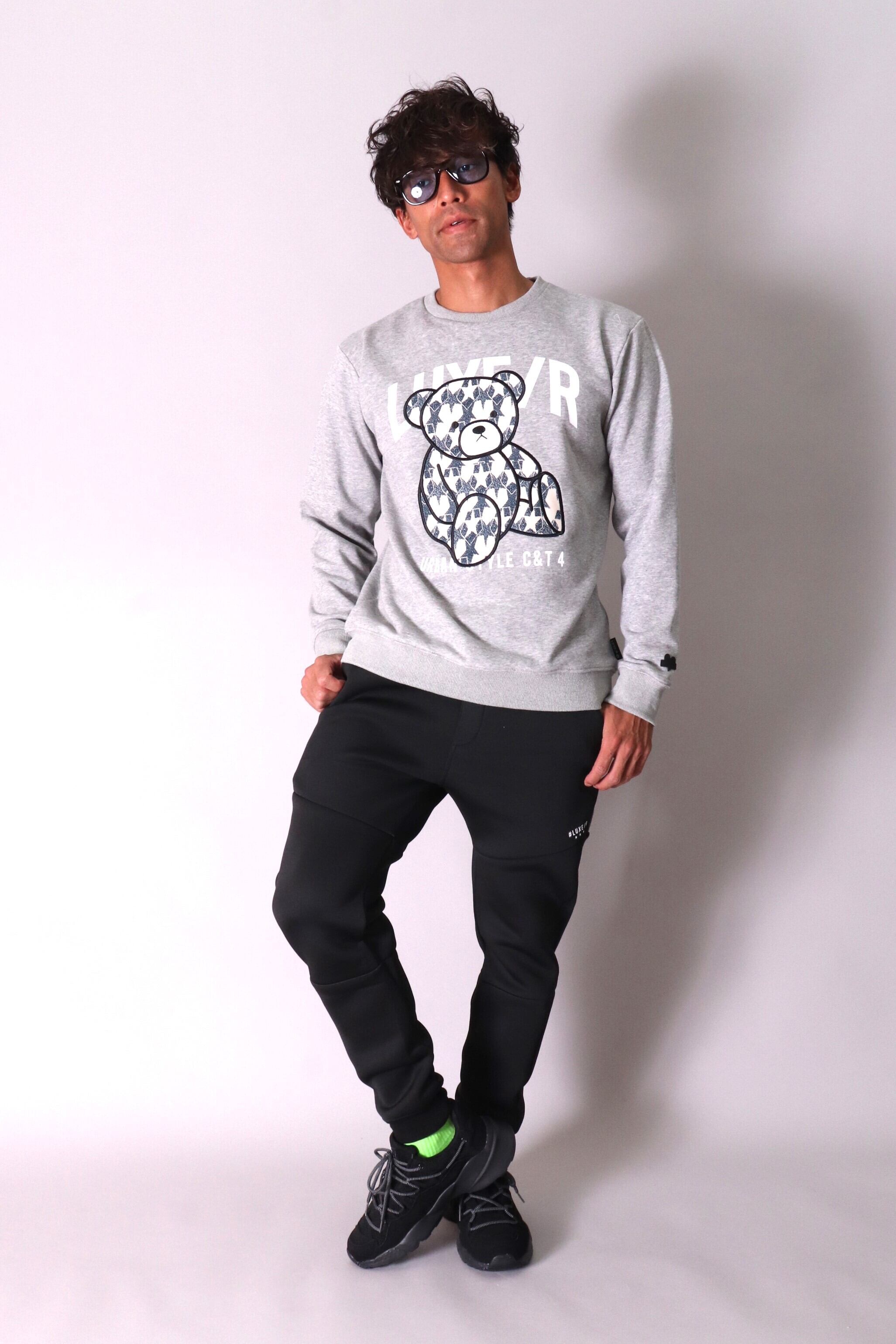 【LUXE/R(45498)裏毛スウェトクルー袖 別布貼りBEAR!