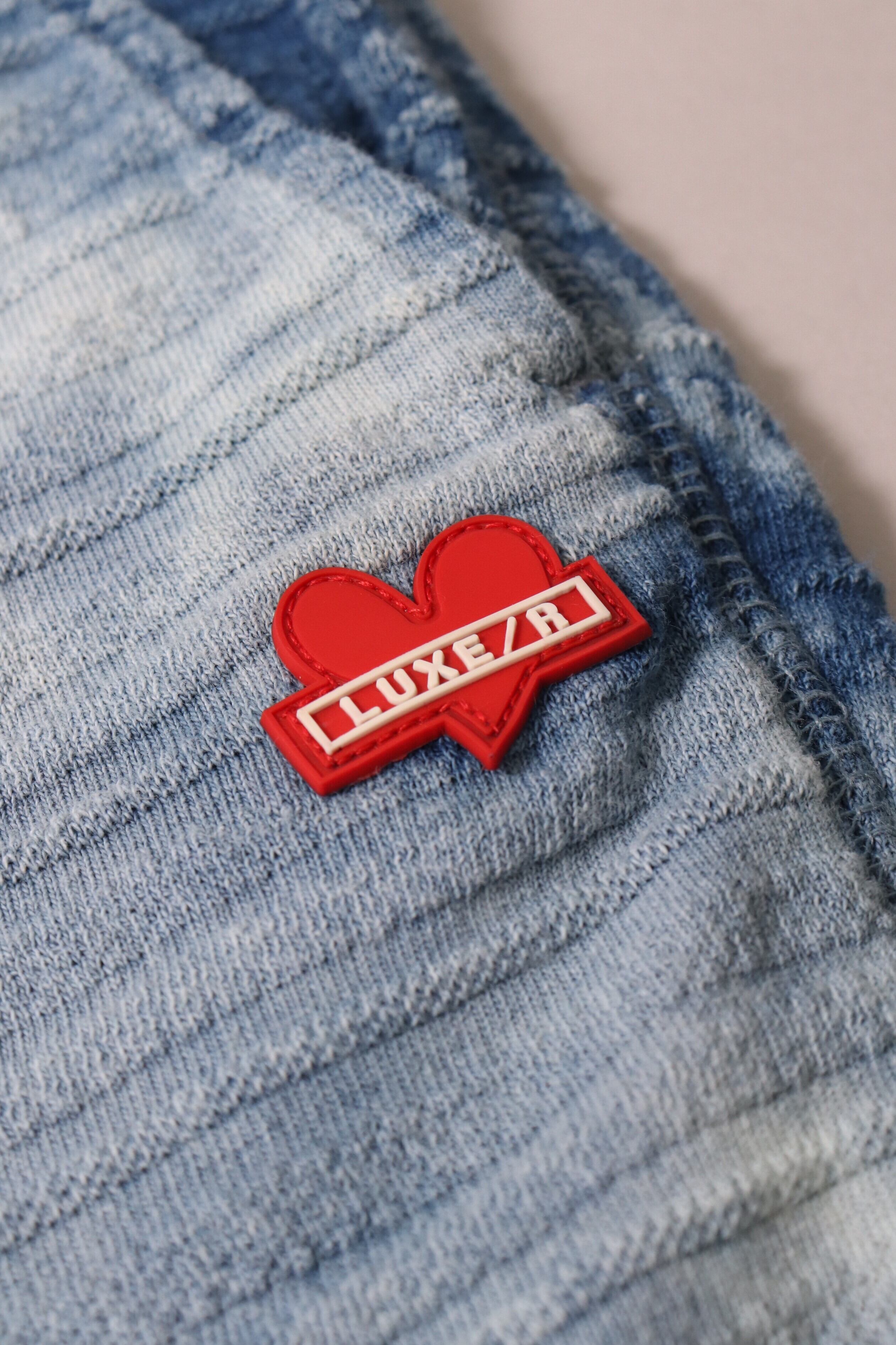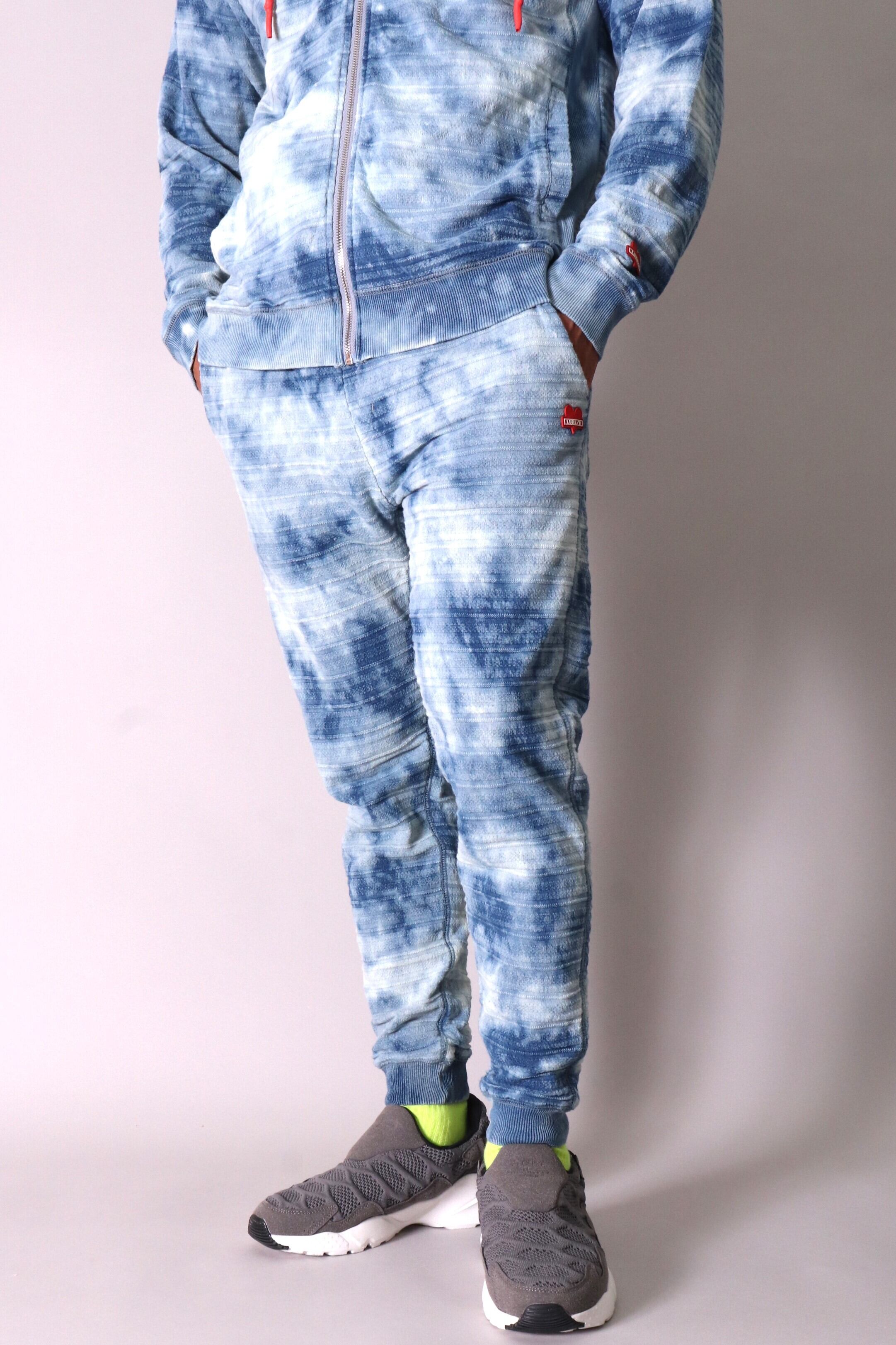 【LUXE/R(45500)インディゴジャガード編み裏毛ロングパンツ