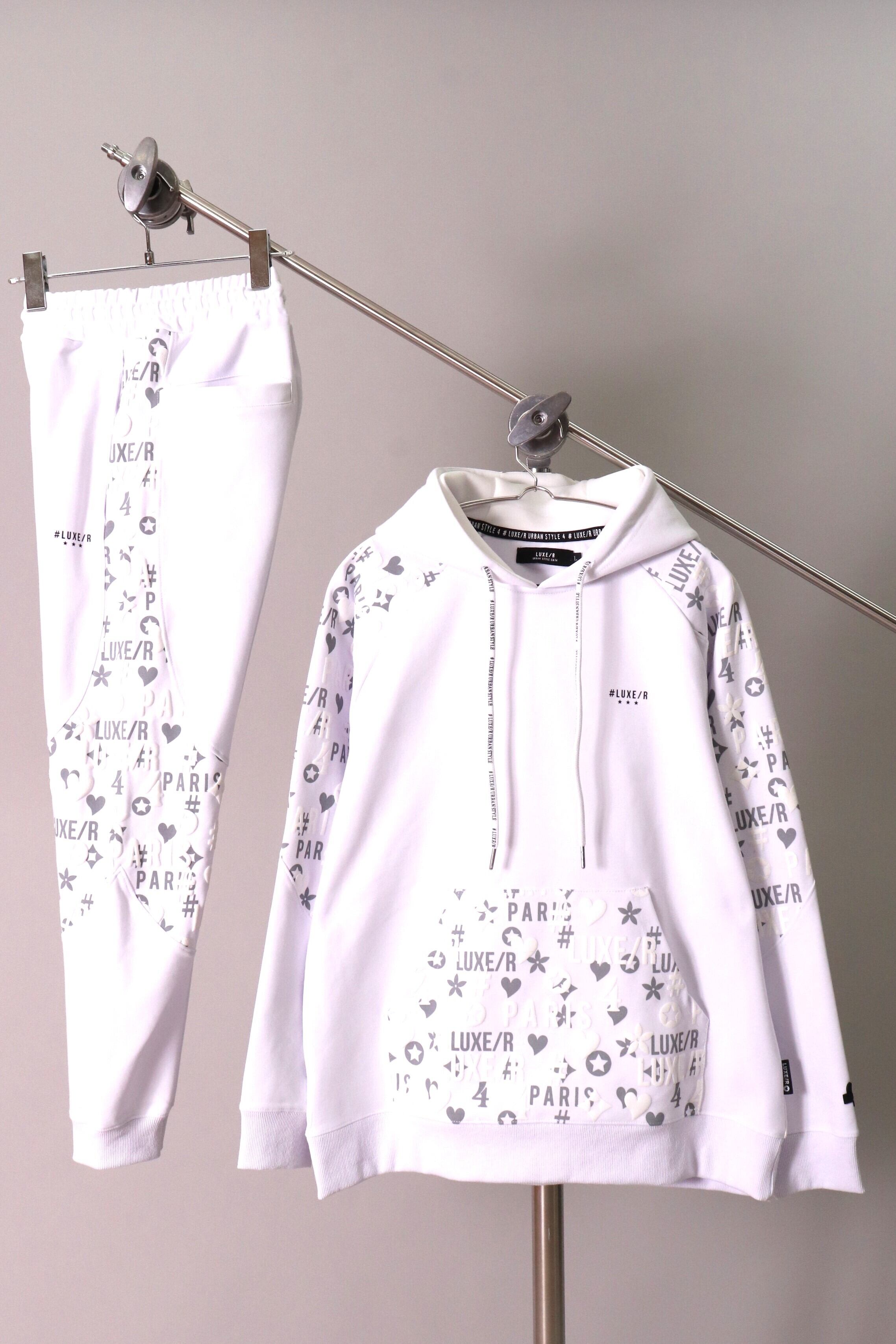 今流行りのポンチ素材ジャージに似ている柔らかい柔軟な素材です!フード、袖、裾にはロゴジャガード織してあります、シックでスポーティな商品です。ジョギング、サッカー、ジムなどあらゆるスポーツに最適です。SET/UPでもご利用頂けます。