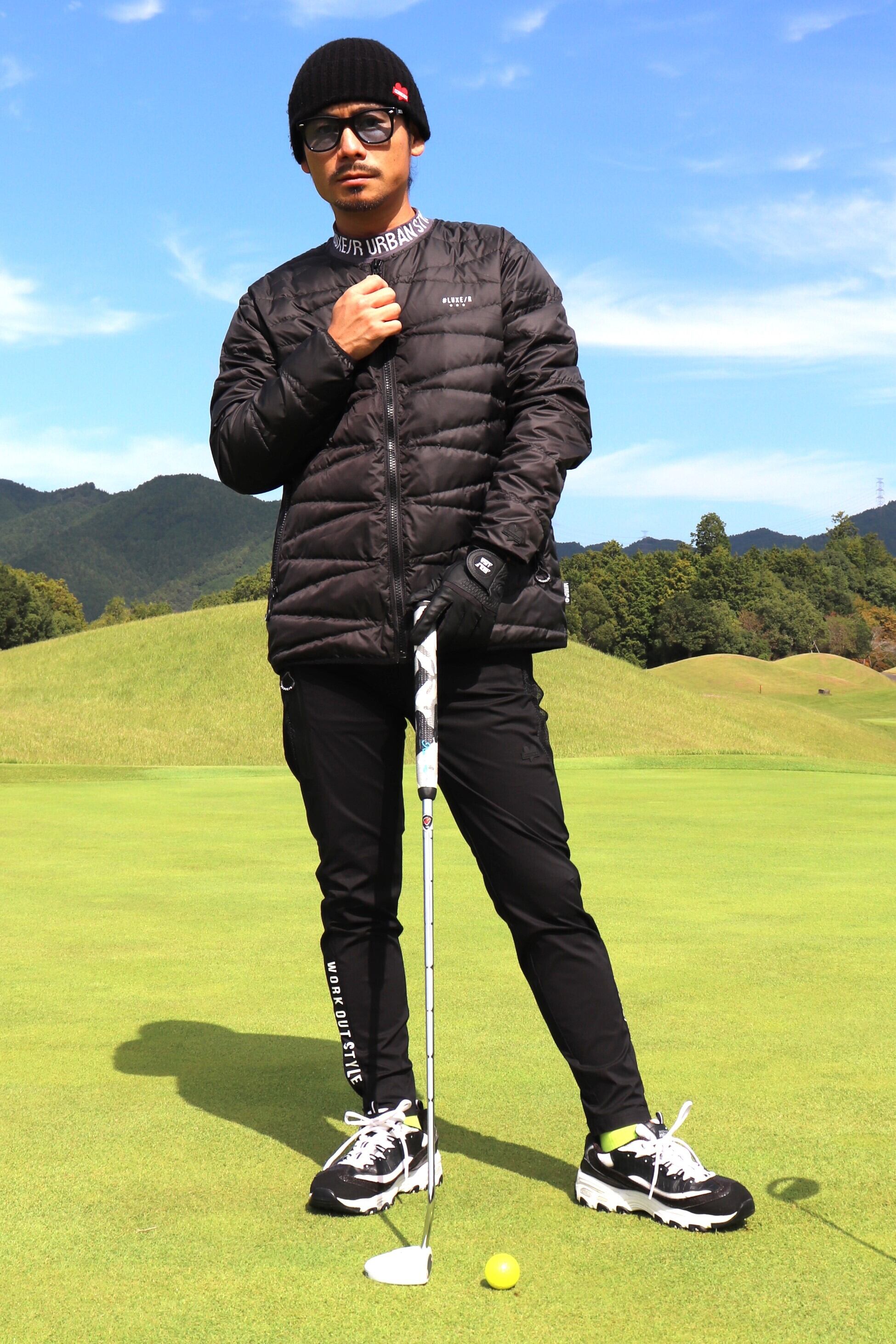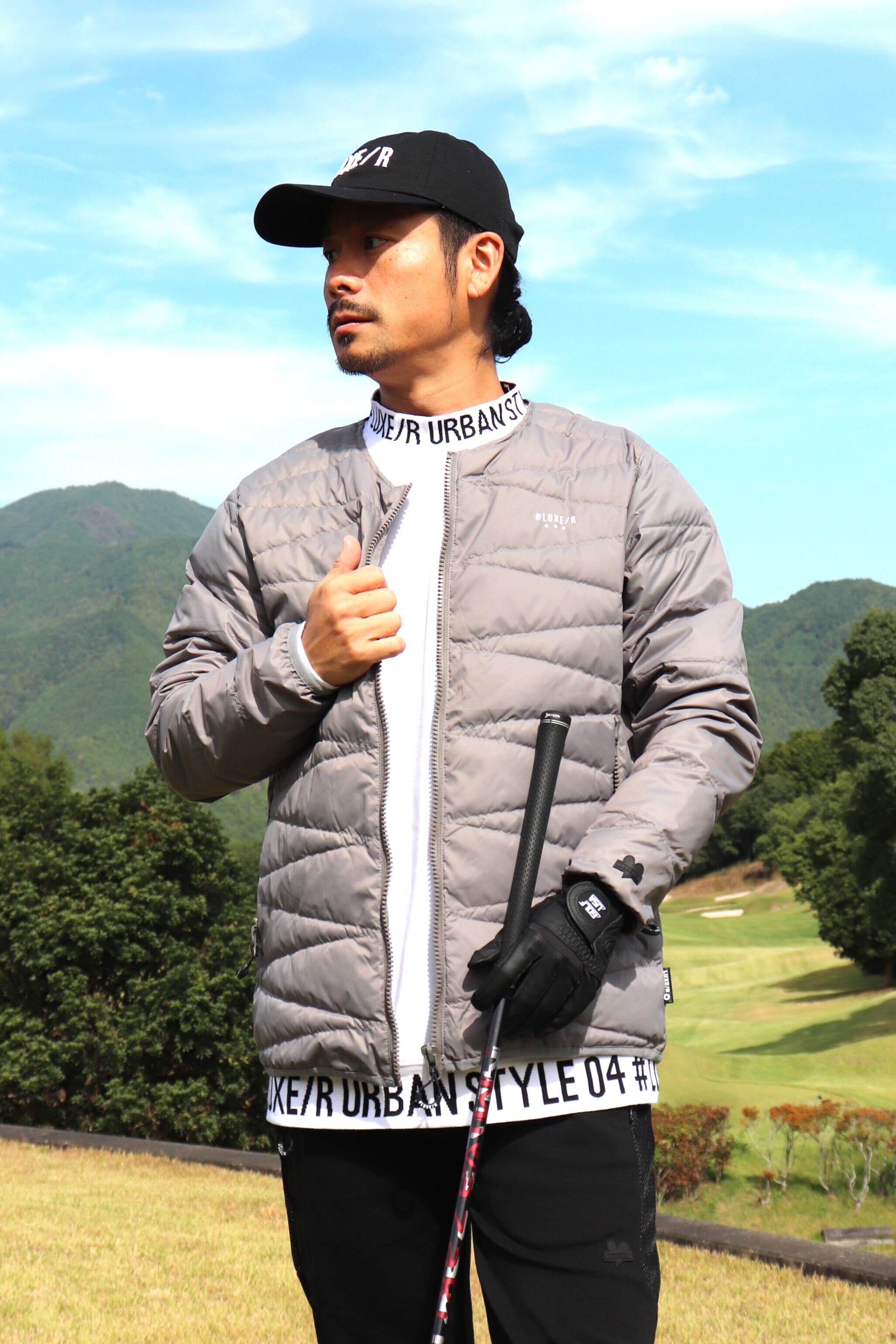 ノーカラーダウンフェザーブルゾンはインナーにハイネックやタートルネックなど襟もとに変化を与える商品を着ればおしゃれゴルファー間違いなしです。