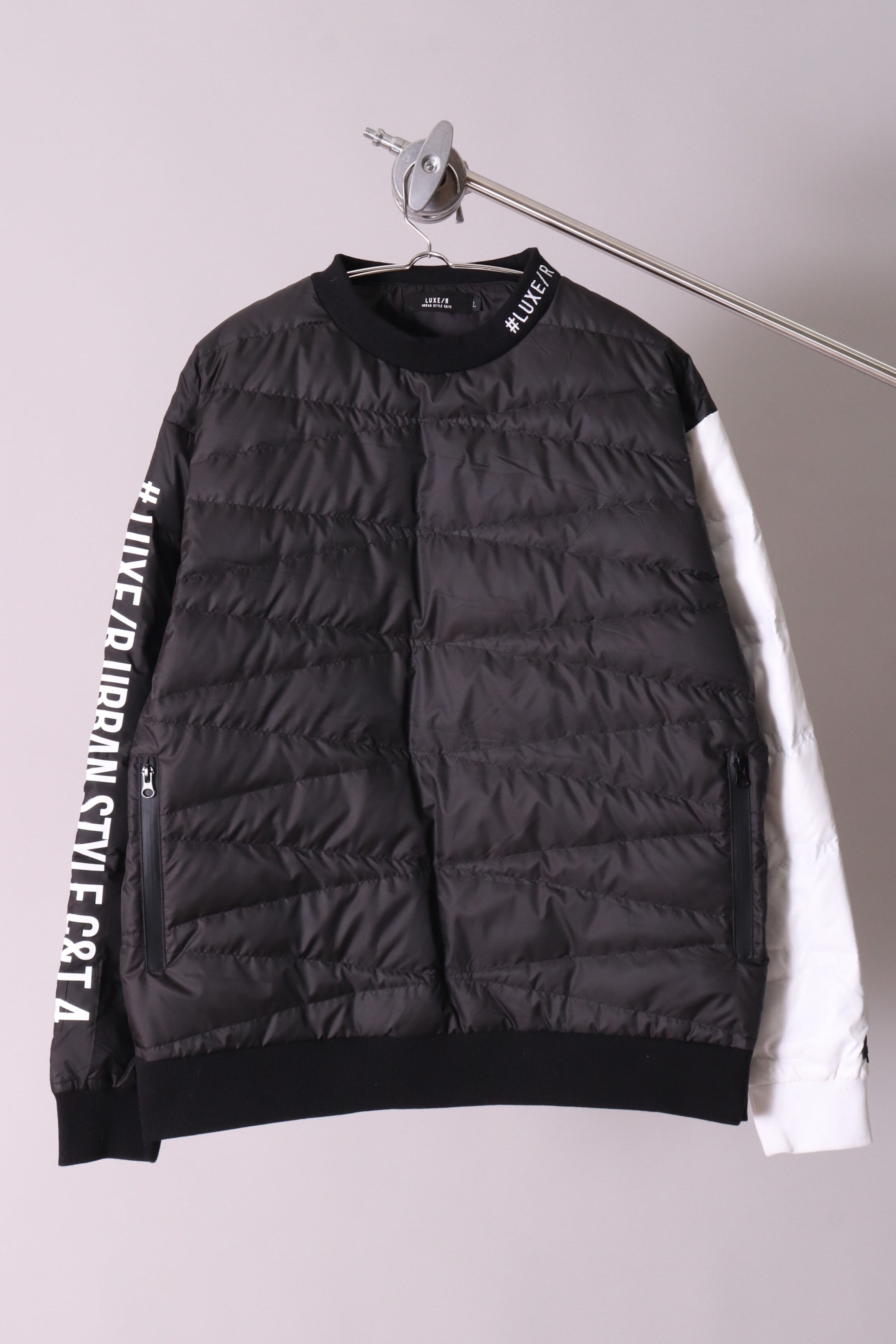 今流行りのダウン素材です!右袖には厚盛ゴムラバープリントしてあります、シックでスポーティな商品です。ジョギング、サッカー、ジムなどあらゆるスポーツに最適です。SET/UPでもご利用頂けます。