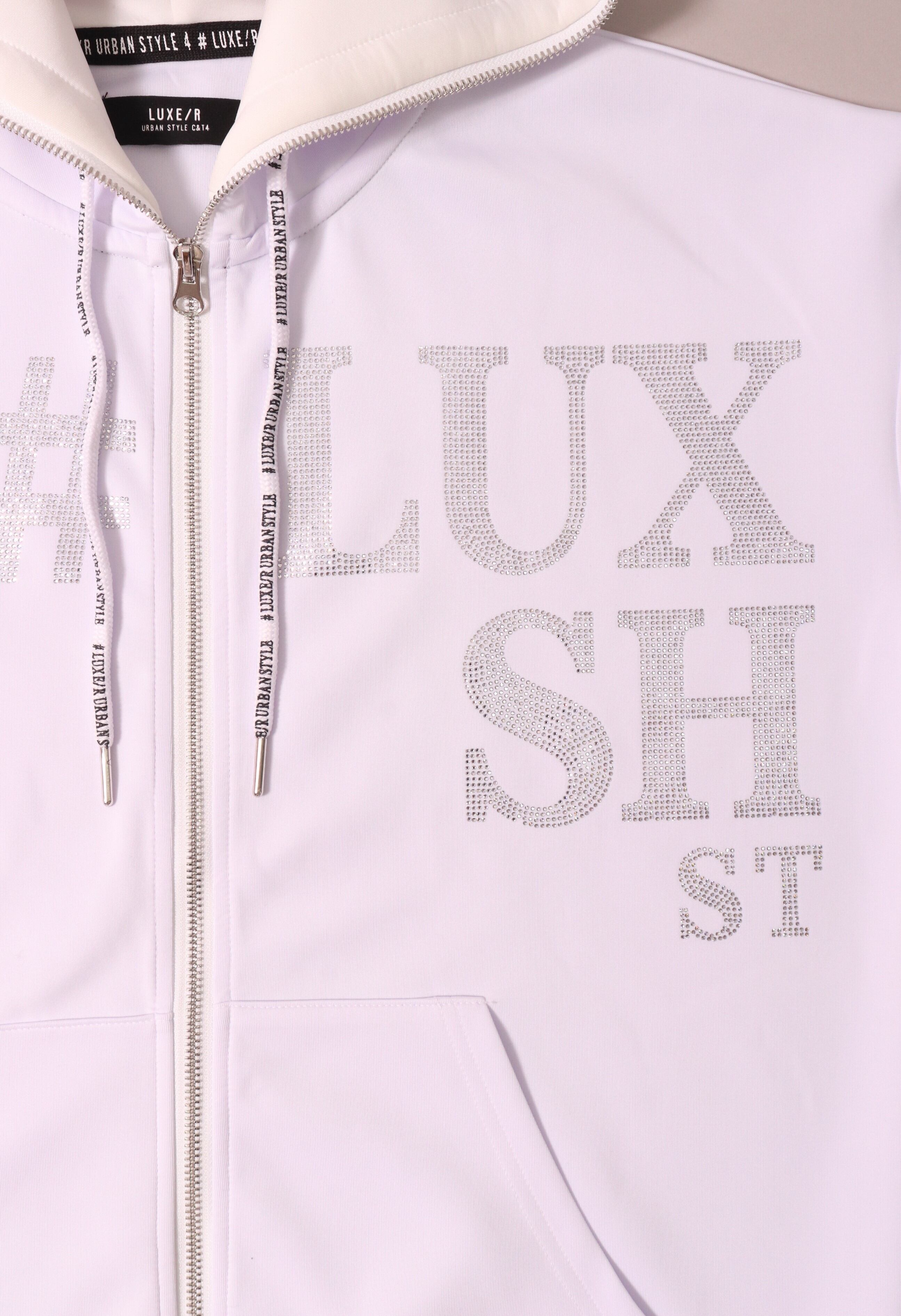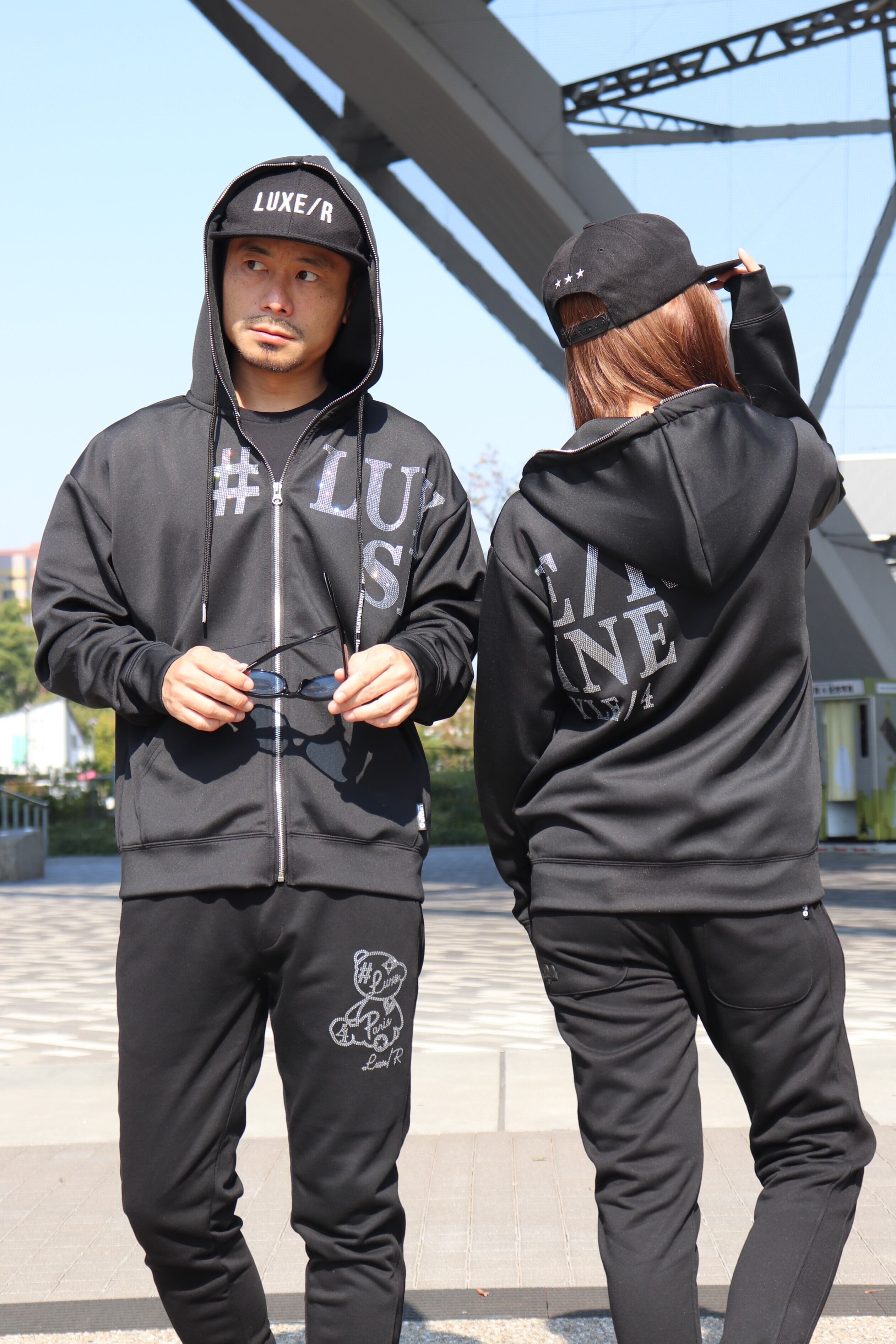 LUXE/R】ラインストーン貼り付けロゴストレッチジャージジップアップ パーカー(45537)