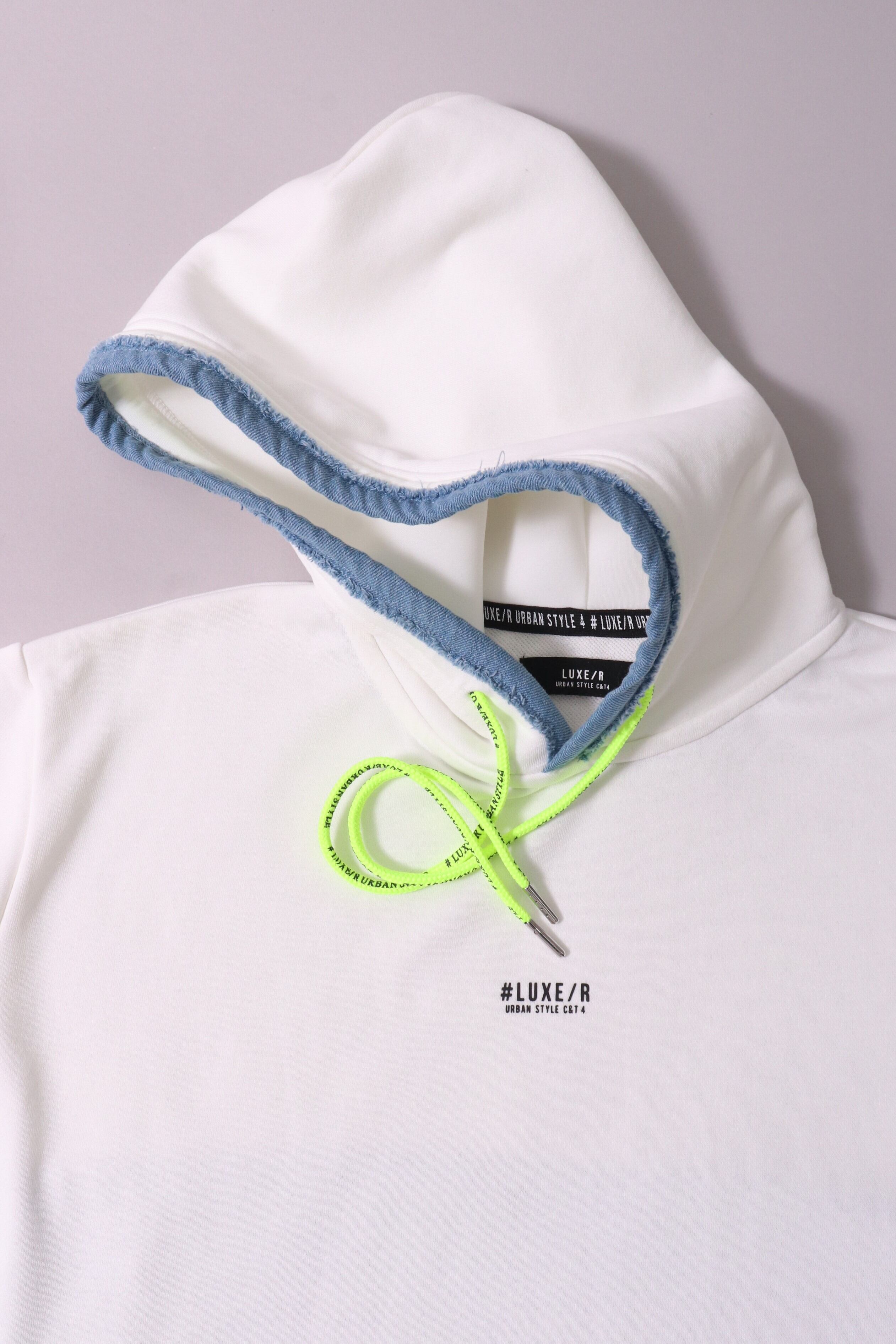 【LUXE/R(45524)デニム切り替え貼り付け裏毛スウェトプルパーカー